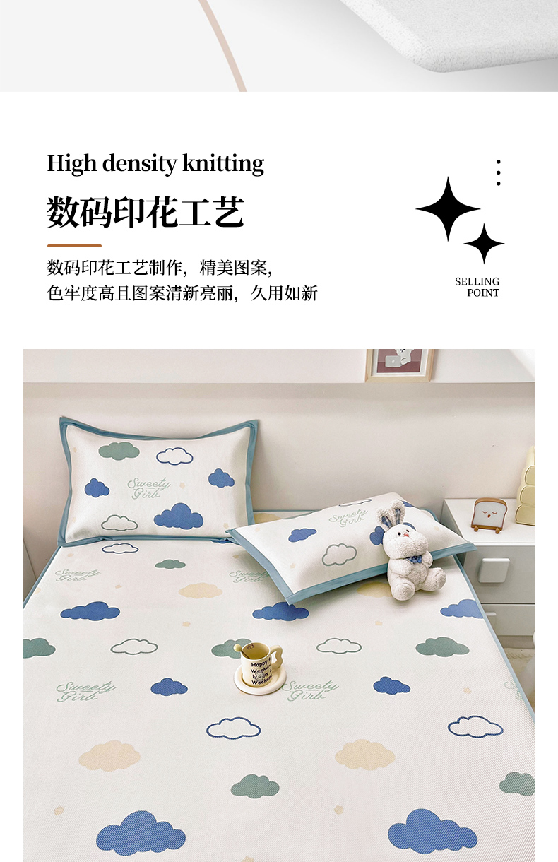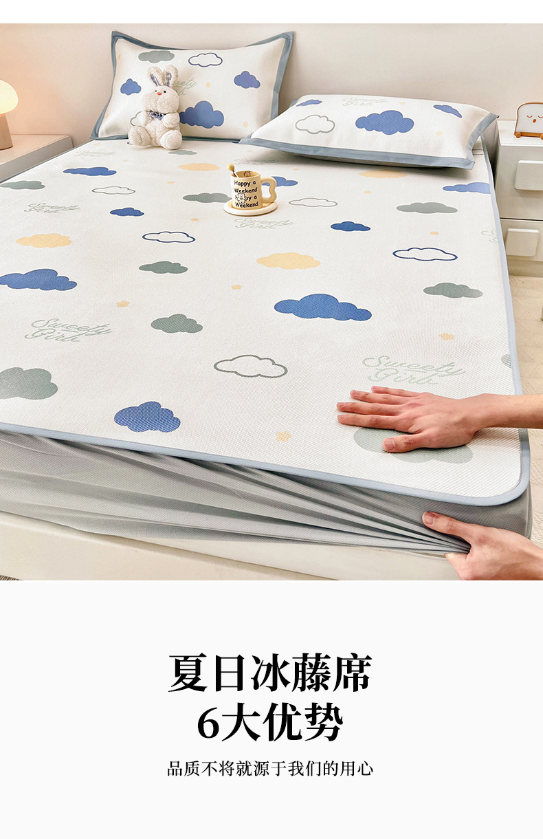 当前位置: 91家纺网 > 商品网购 > 床上用品 > 凉席 > 其他凉席 > 全季家居 2024新款5A抗菌小清新数码印花冰藤席 床笠款-晴天