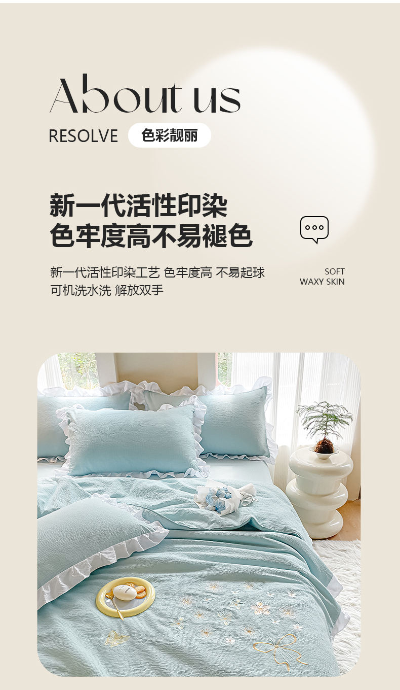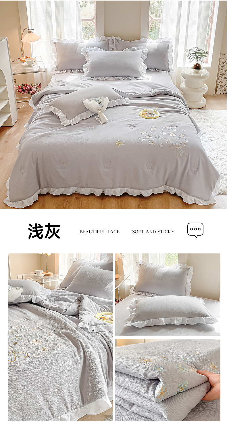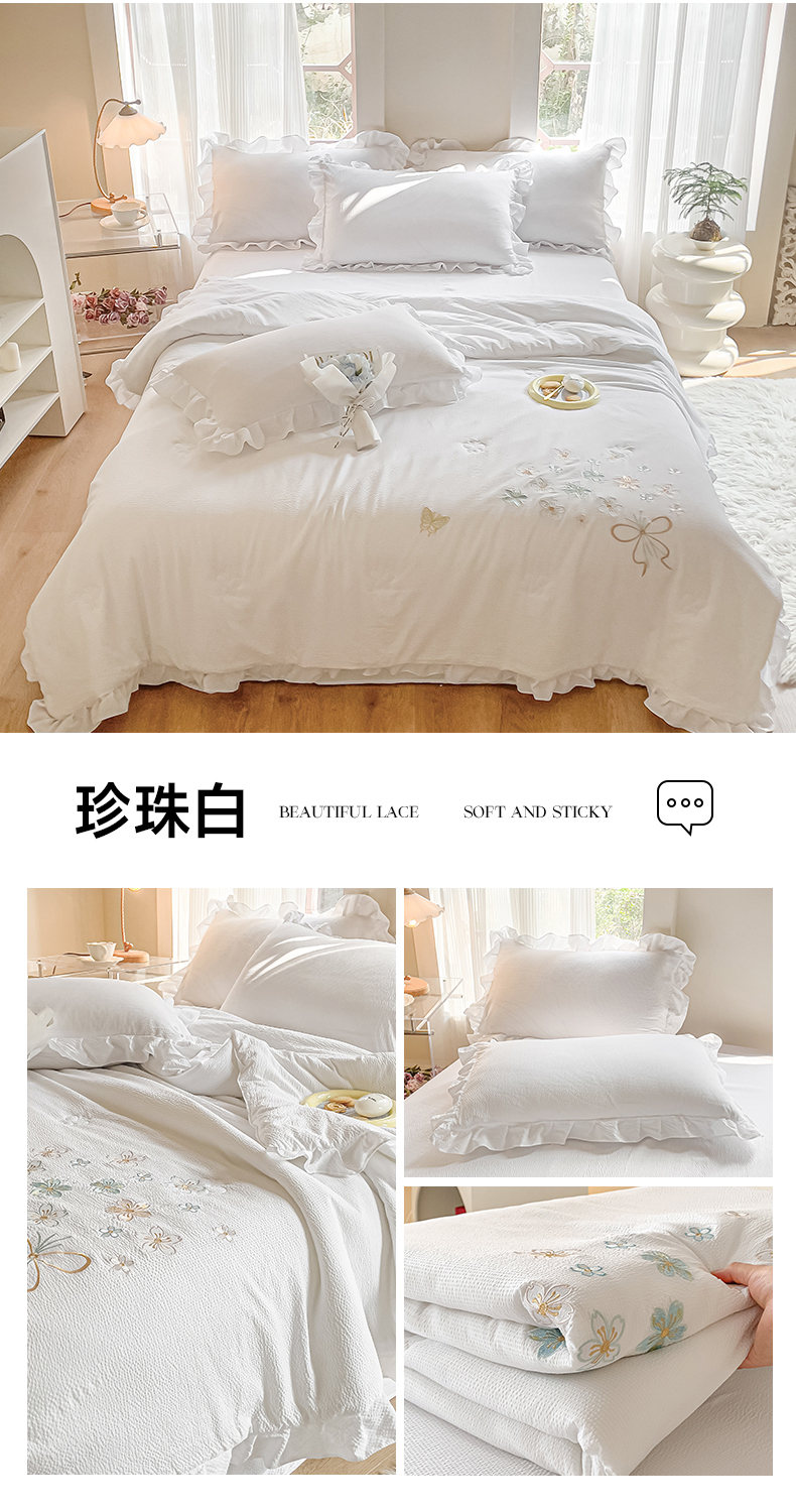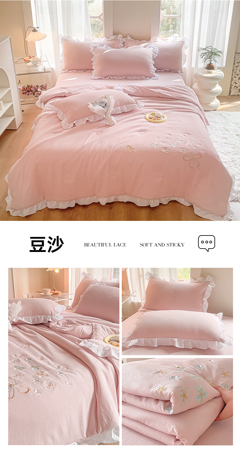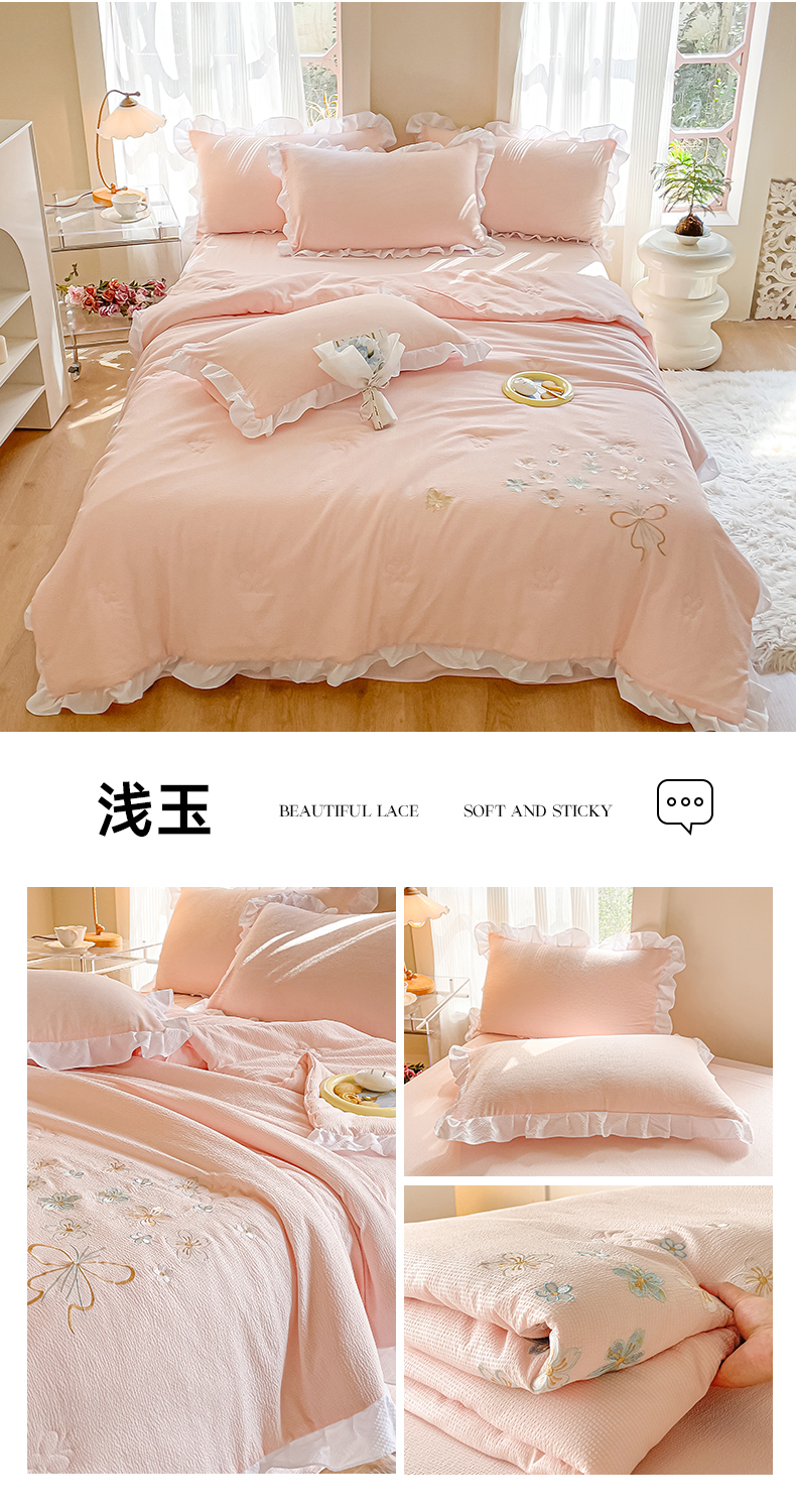 商品名称:(总)金麦家纺 24新款泡泡纱花边夏被四件套