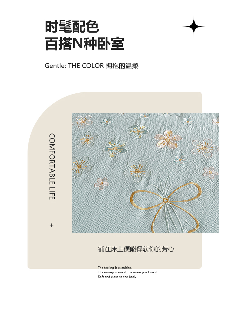 (总)金麦家纺 2025新款冰丝绣花四件套-心愿系列,心愿粉色,心愿燕麦奶,心愿天空蓝,心愿淡雅绿,心愿浅灰