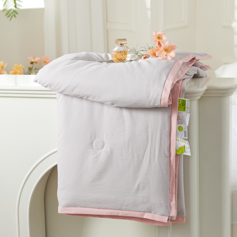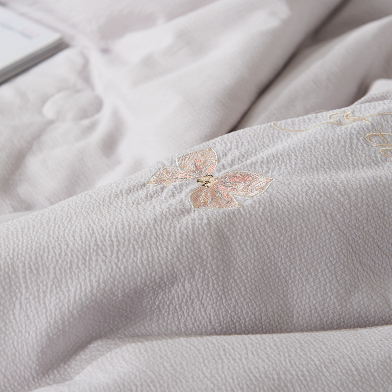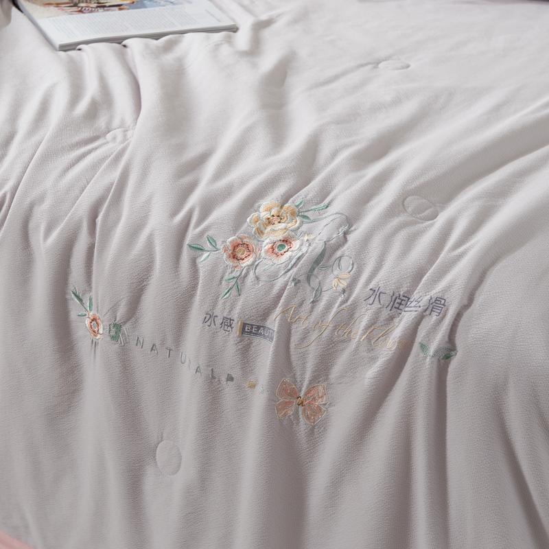 商品名称:太阳羽家纺 2025新款豆豆棉绣花夏凉被空调被润丝滑 灰粉