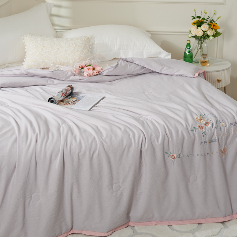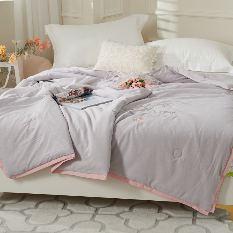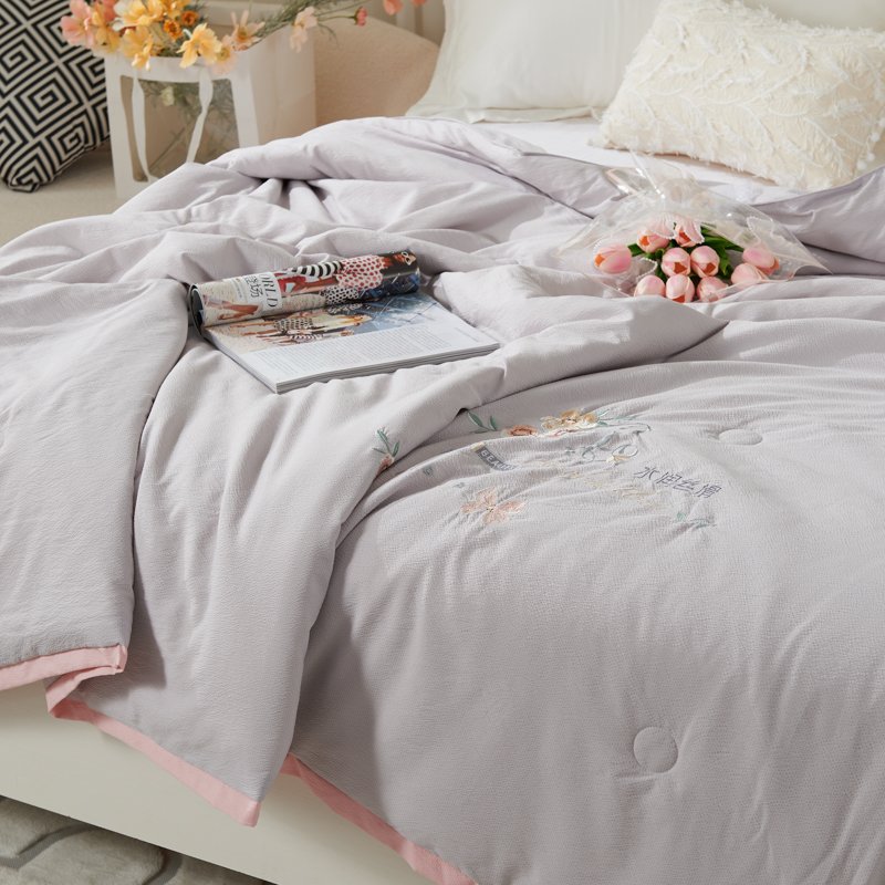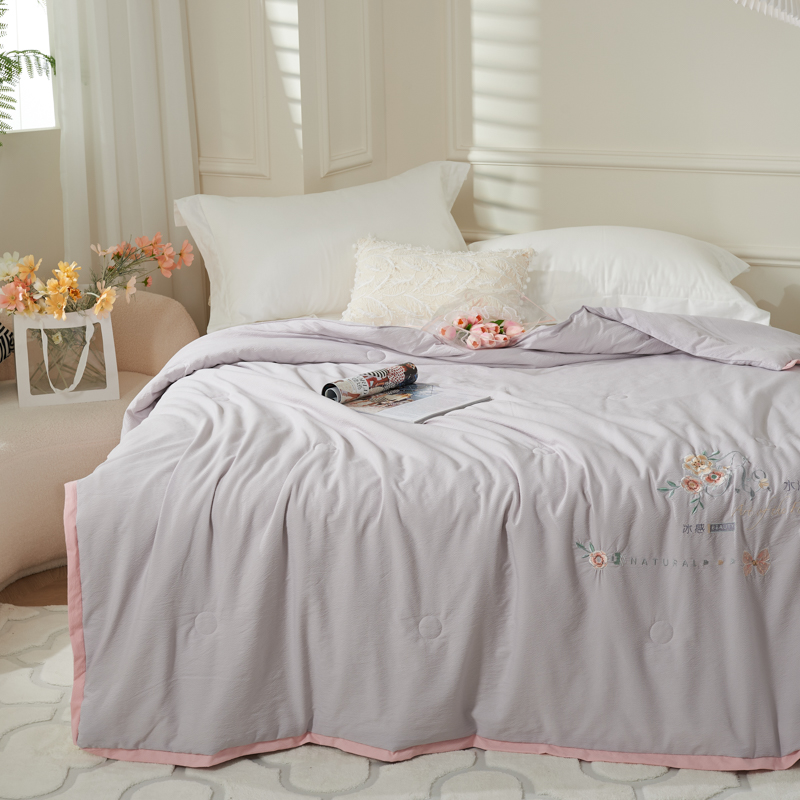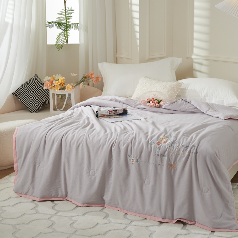 太阳羽家纺 2025新款豆豆棉绣花夏凉被空调被润丝滑 灰粉