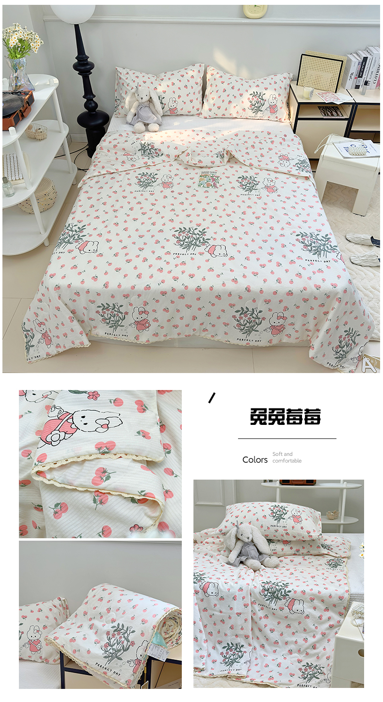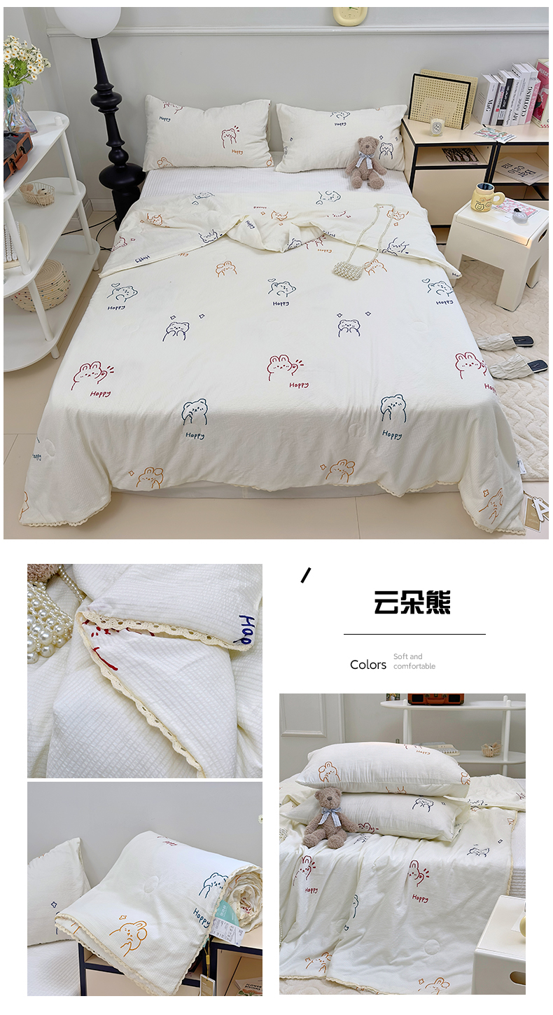 (总)TT.one 塔塔家居 2025新款有氧泡泡棉云朵皱皱棉小花边夏被,洛丽塔熊,可爱熊仔,森林物语,兔兔莓莓,云朵熊,紫色郁金香,曼妙花园,猫咪酱,苹果乐园,山茶花