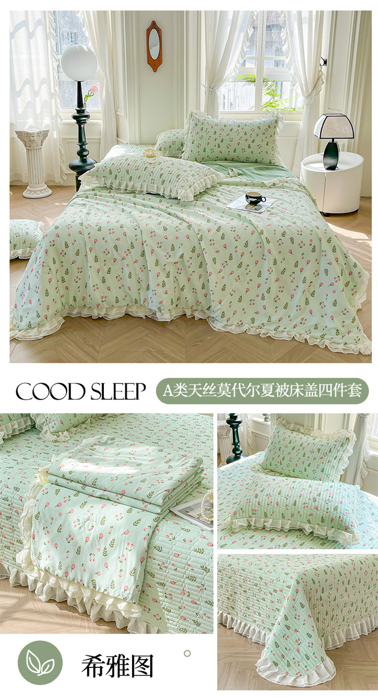 宜凡家纺 2024新款莫代尔印花床盖夏被四件套 希雅图