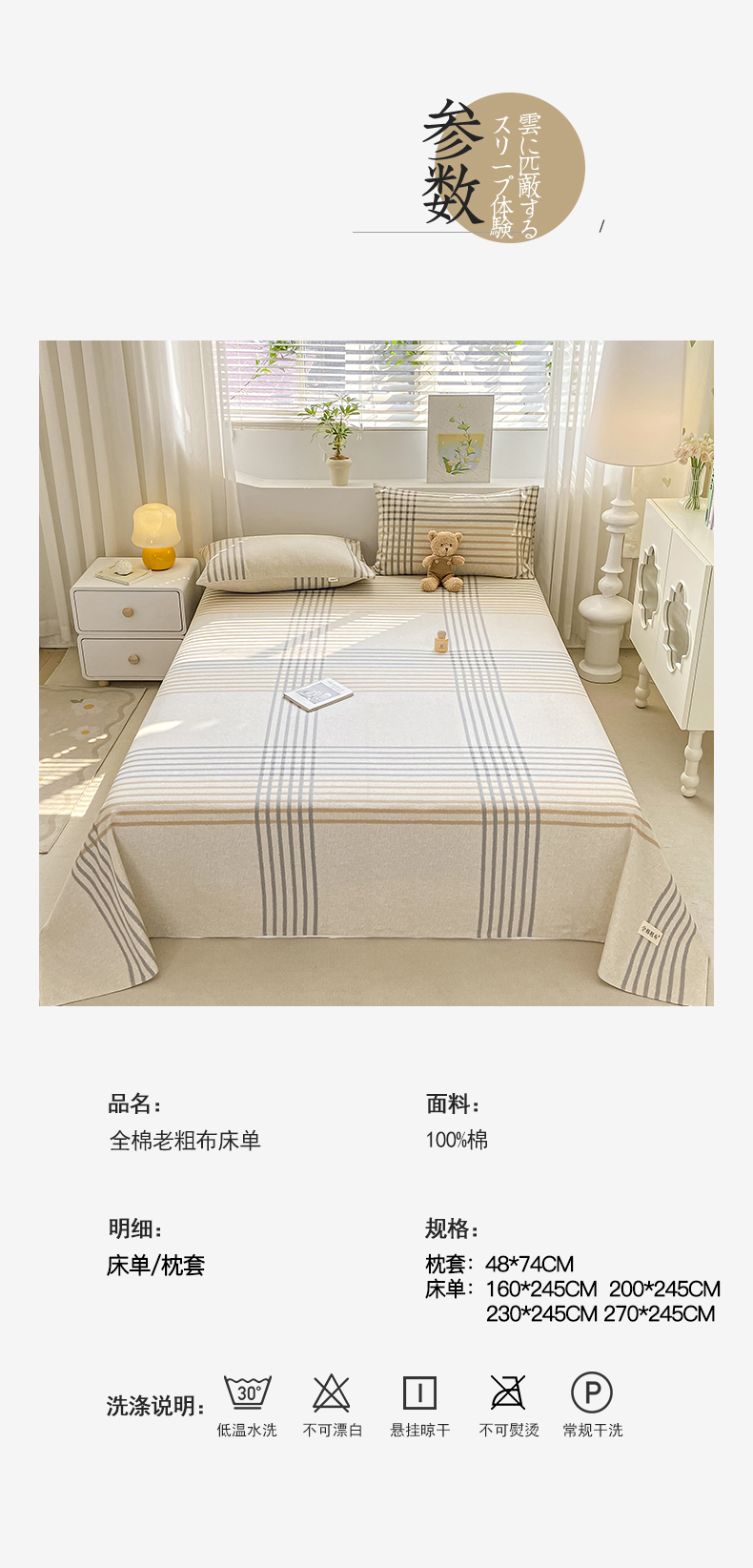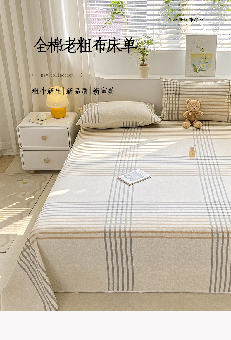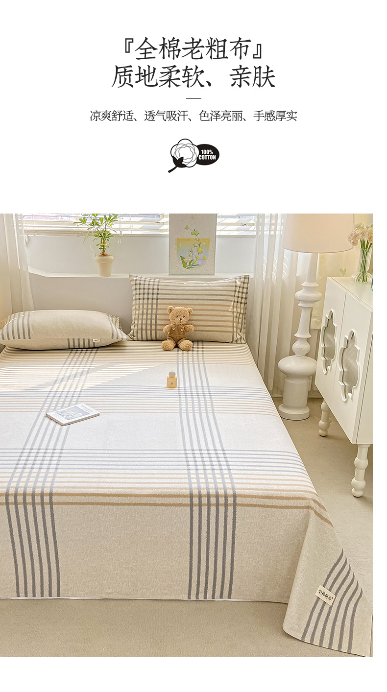 卧趣家纺 2024新品全棉老粗布单品床单床笠系列-单品床单系列 微莫