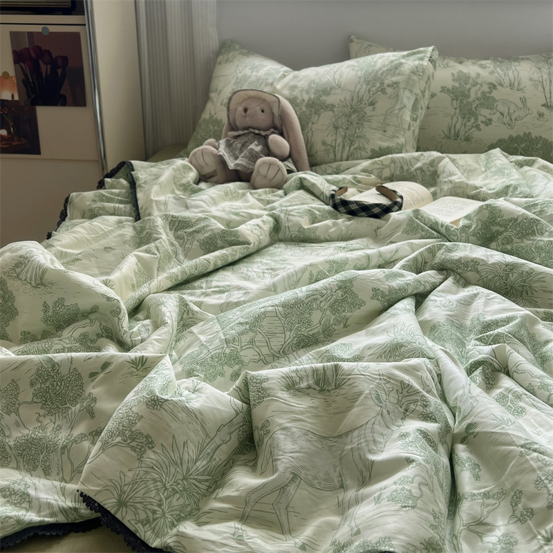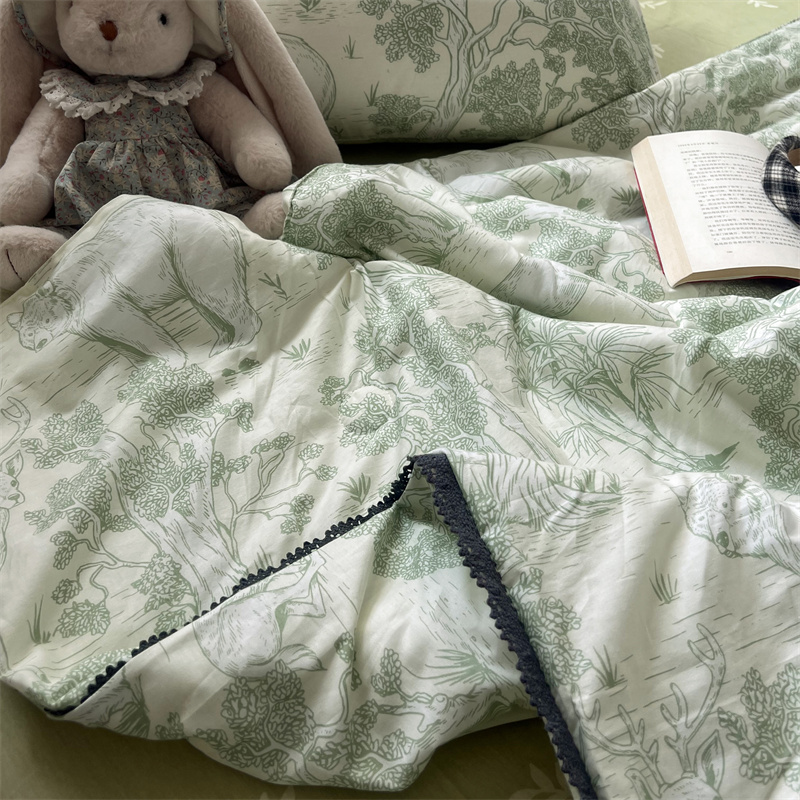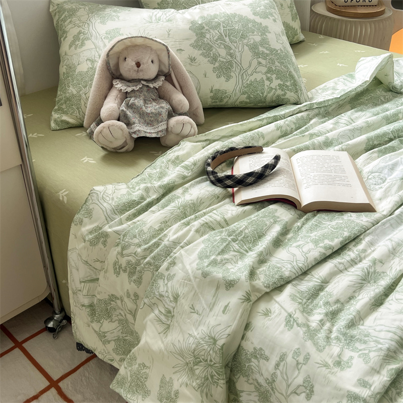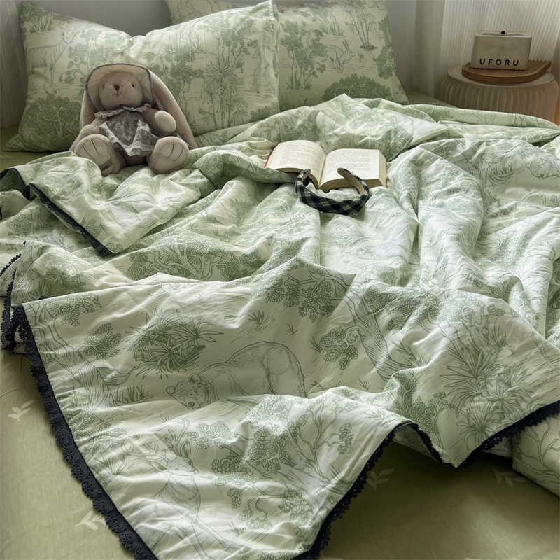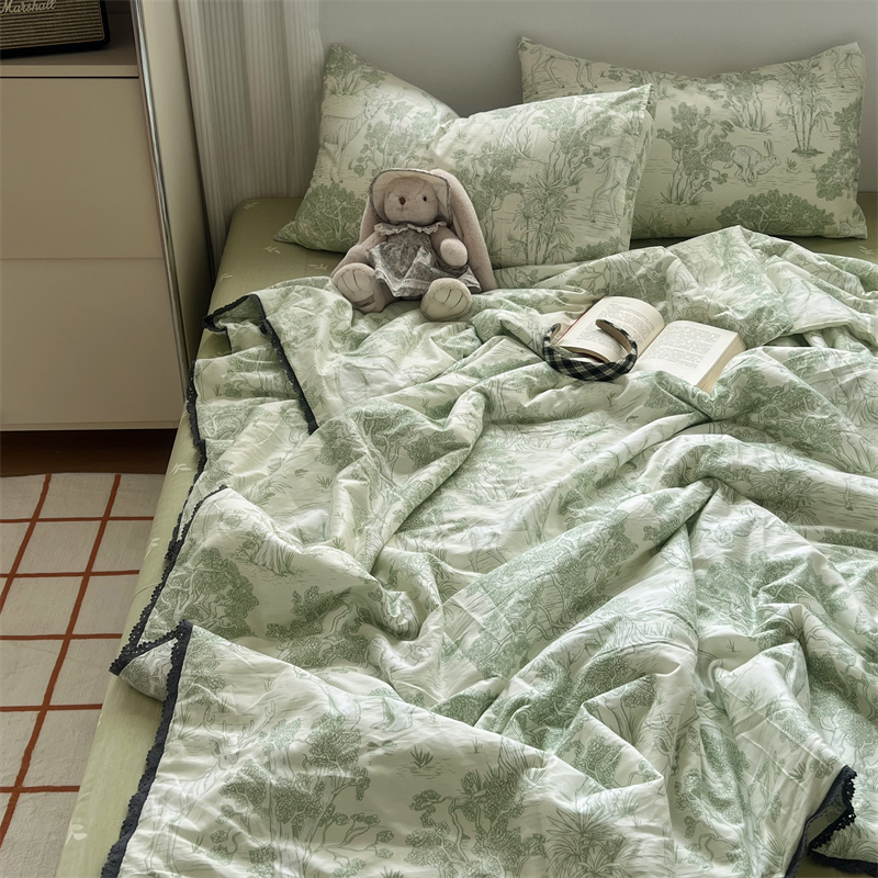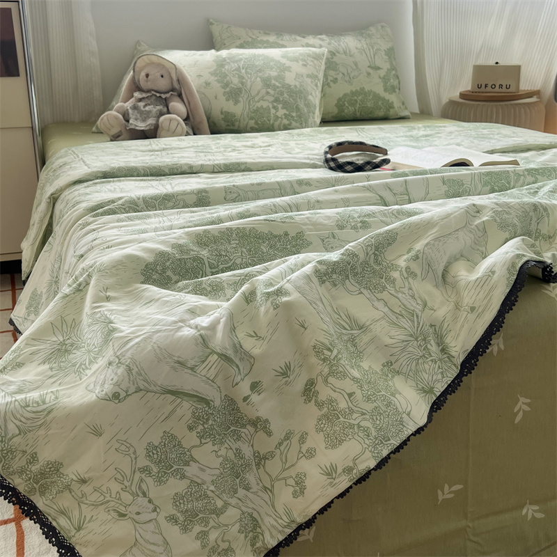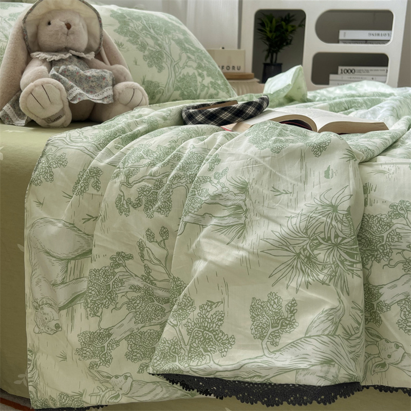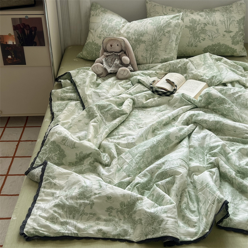 商品名称:HL原创 2024新款全棉法式大豆被夏被 XB-绿色心情