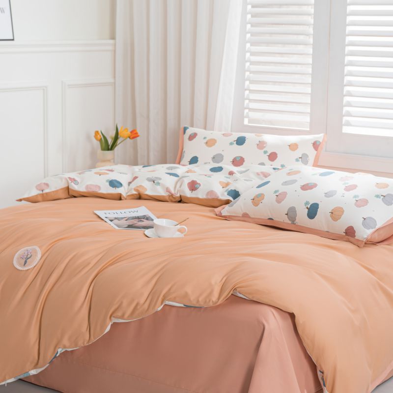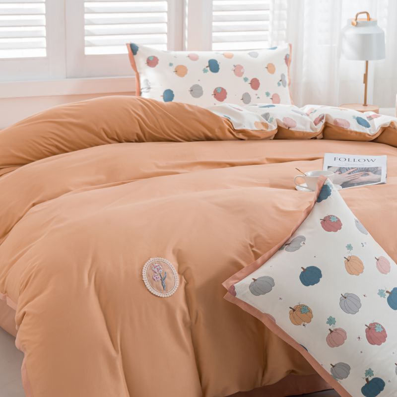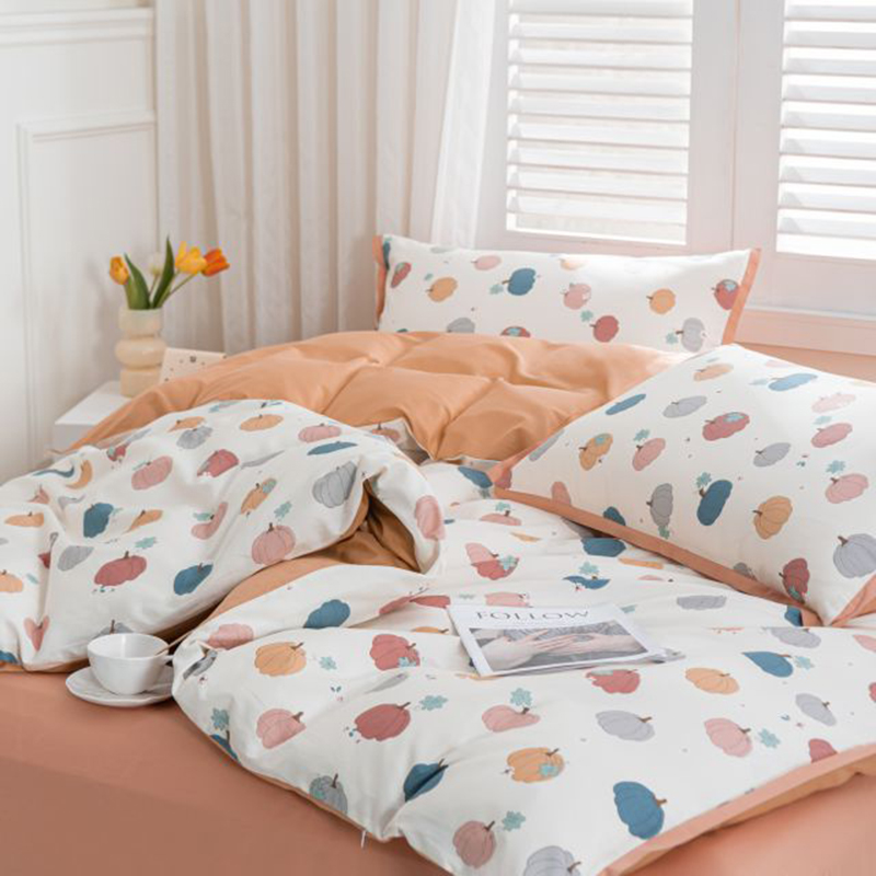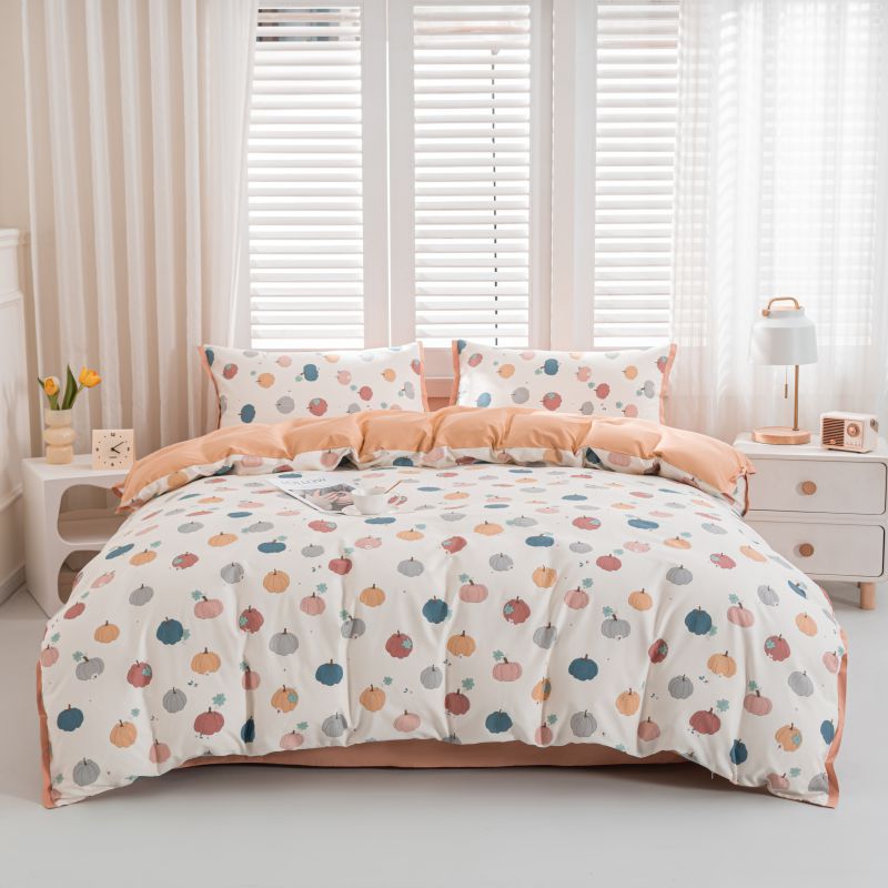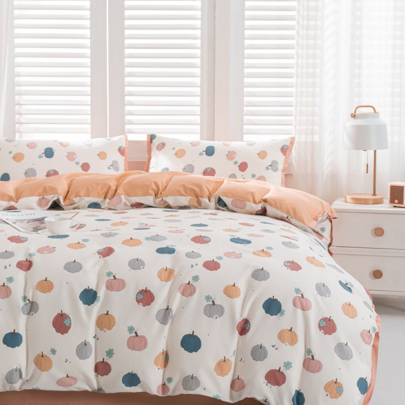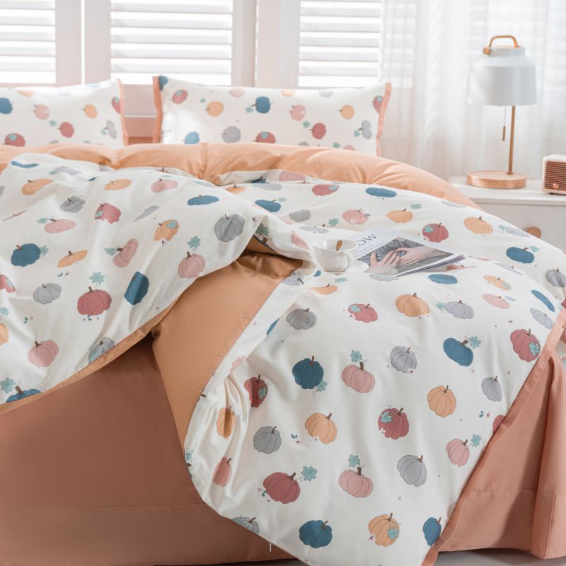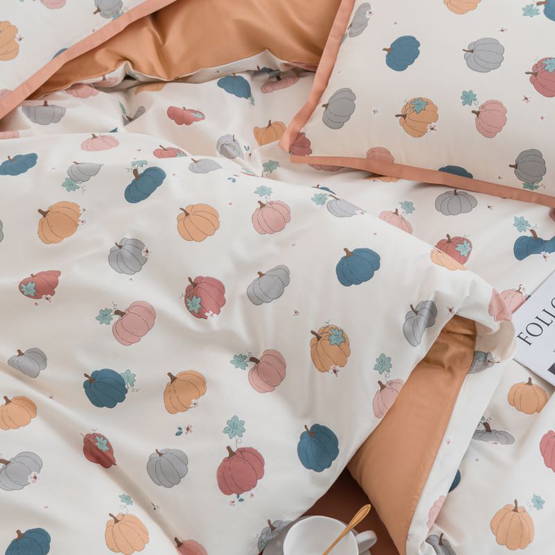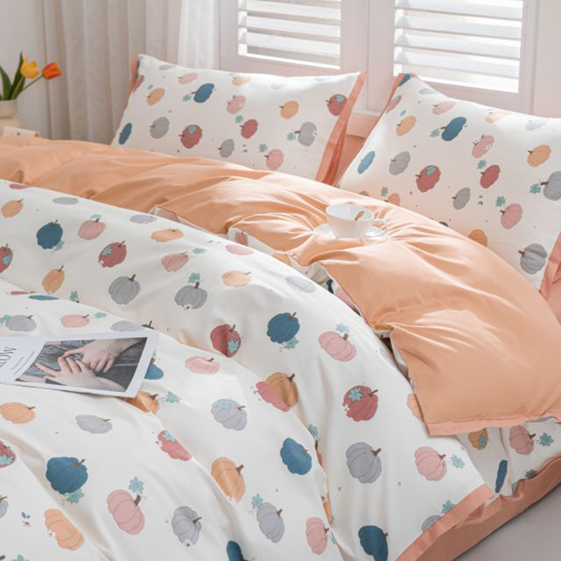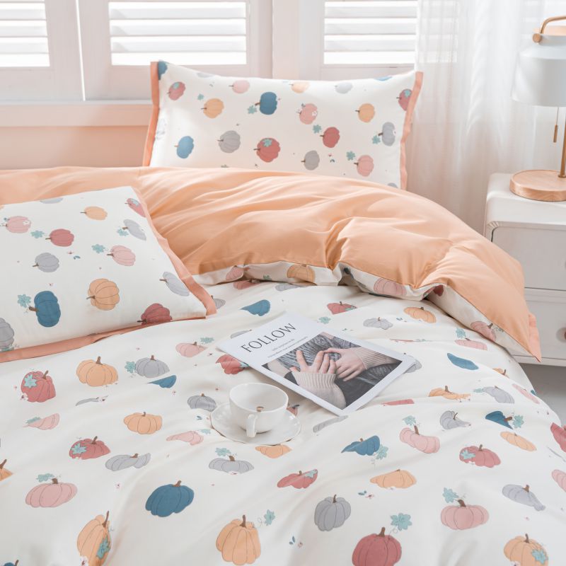 优姿家纺 新款纯棉长绒棉小清新ins风印花四件套-系列一 南瓜酥-米