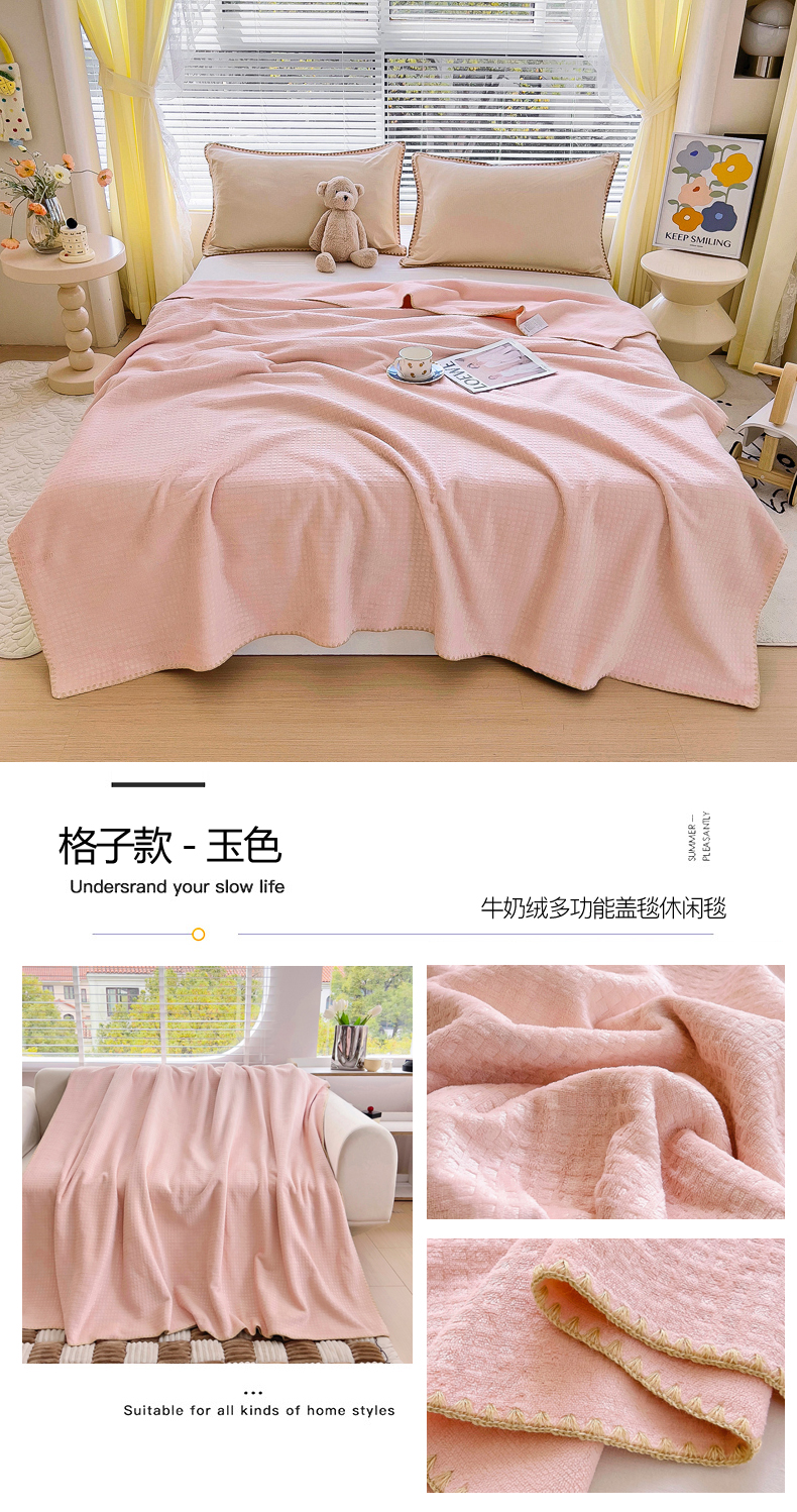 商品名称:恋佳居 2025新款牛奶绒压花复合毛毯-格子款 玉色