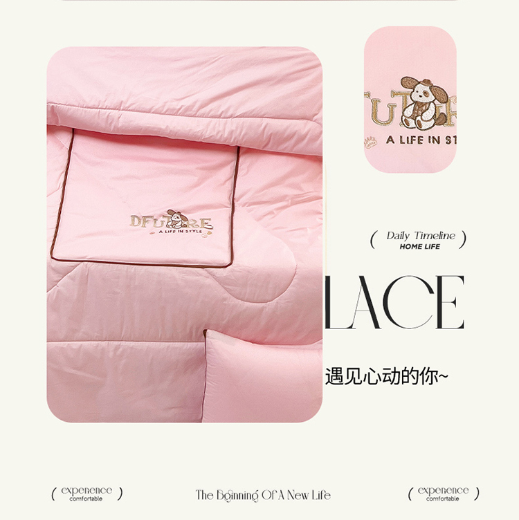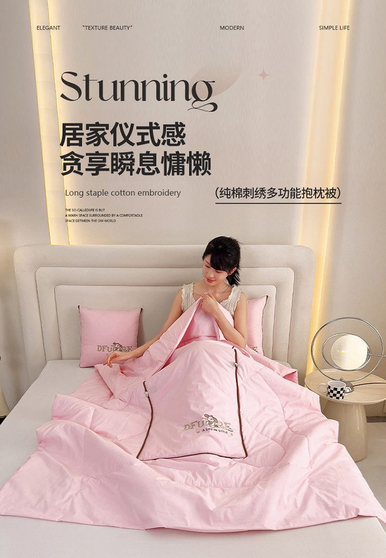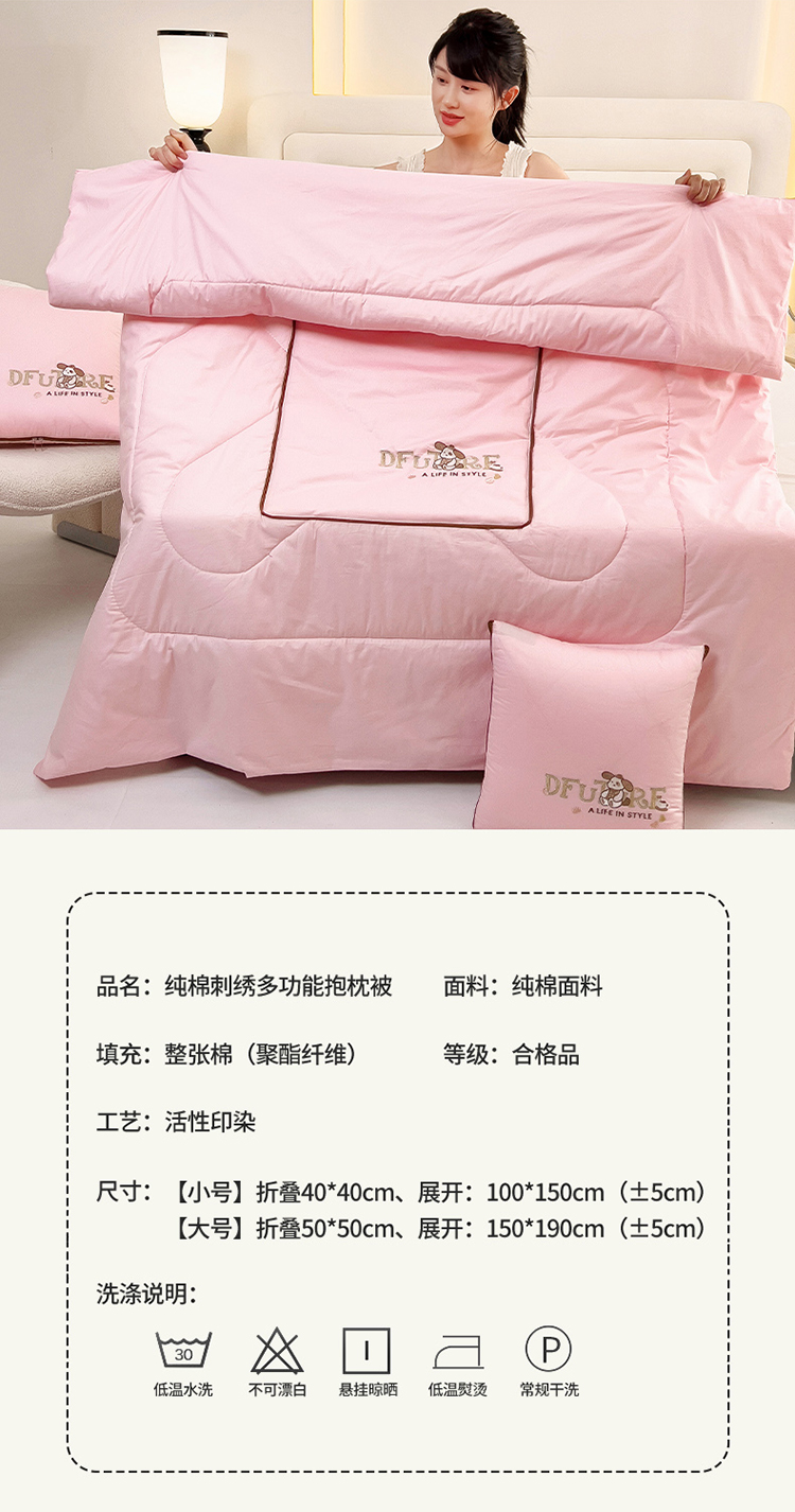 商品名称:阳光依佰抱枕被 2024新款纯棉刺绣多功能抱枕被-哈哈狗 哈哈狗-樱花粉