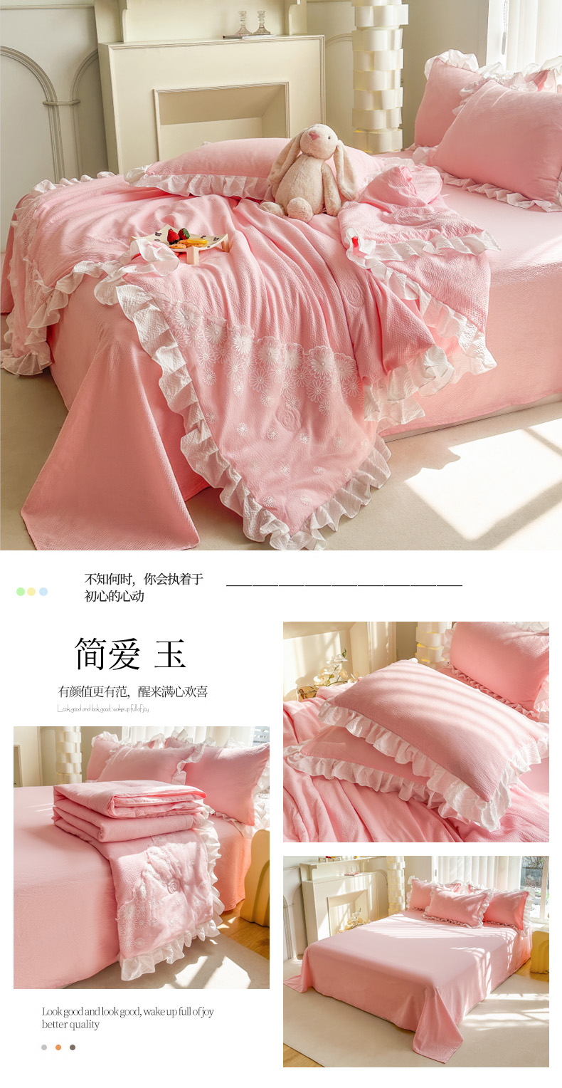 唐人居 2025新款韩版花边泡泡纱夏被四件套--简爱 简爱 玉