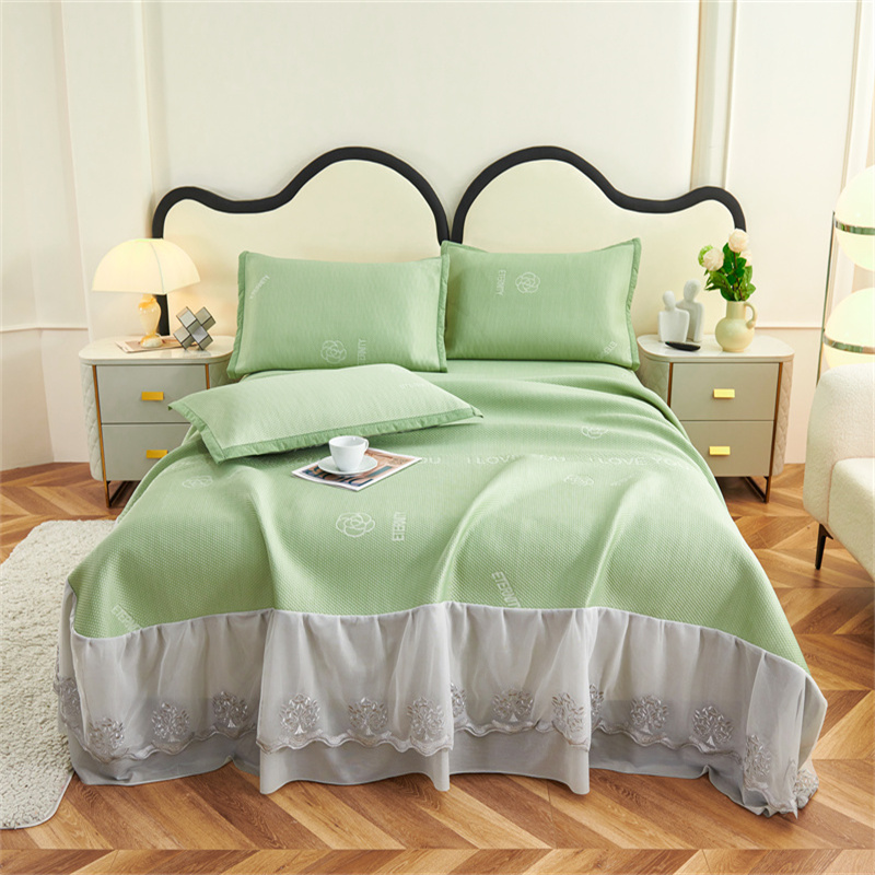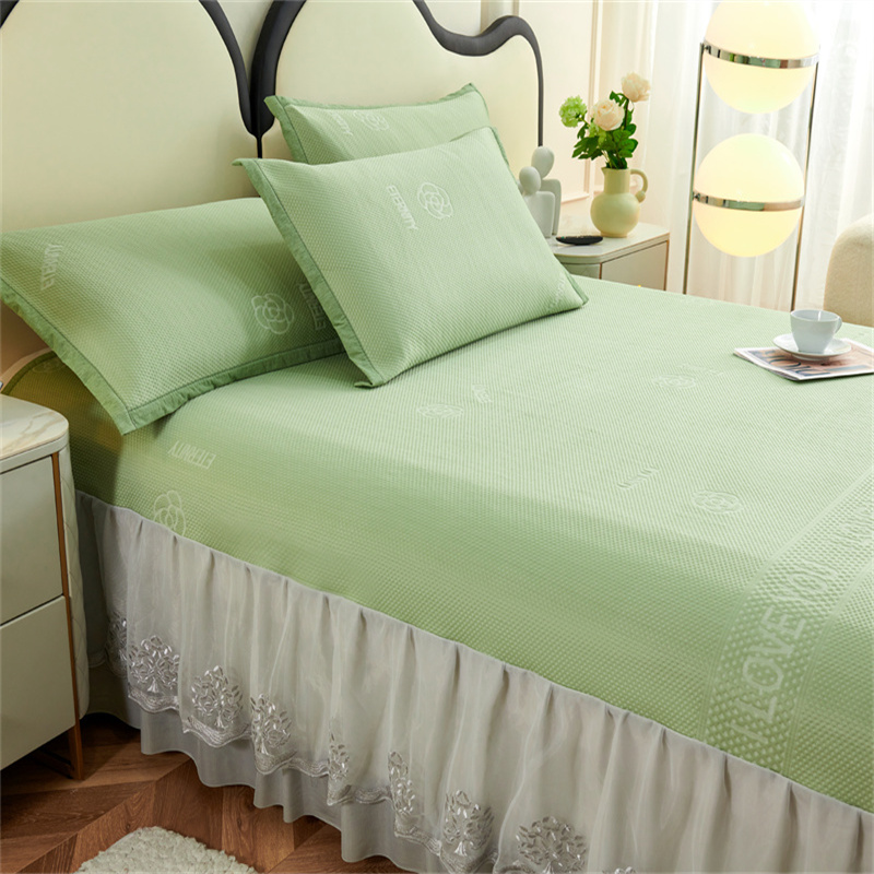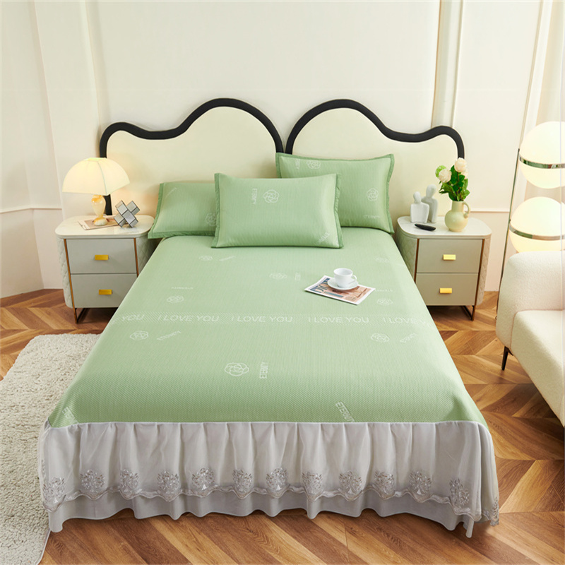 宜派家纺 2024新款雪花冷感席三件套床裙款 爱恋-绿