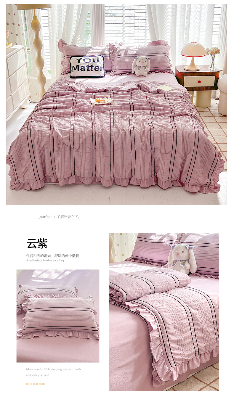 (总)满座家居 2025新款亲肤舒适小清新泡泡棉提花床盖四件套,繁花,漫花语,沐歌,俏佳人,秋水伊人,小美好,小樱桃,心之韵律,紫爱心