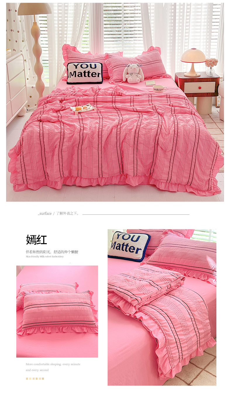 (总)满座家居 2025新款清新唯美木耳边加厚牛奶绒四件套雕花绒四件套,艾莎 粉,雏菊晨露 粉,田园风景 绿,蝶恋花 粉,邂逅,安妮 粉