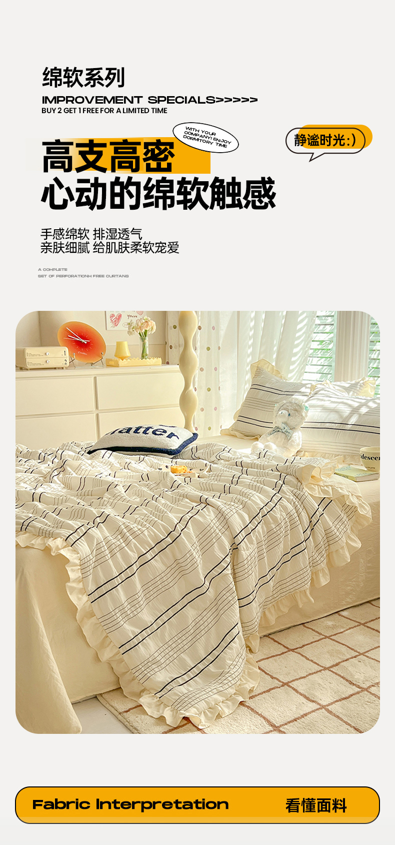 (总)满座家居 2025新款直播热款赫本风花边软糯水洗棉法式印花床盖床裙三件套四件套,蝴蝶印记,澜音花香,美味樱桃,水墨玫瑰,晨光波点,栗南薇