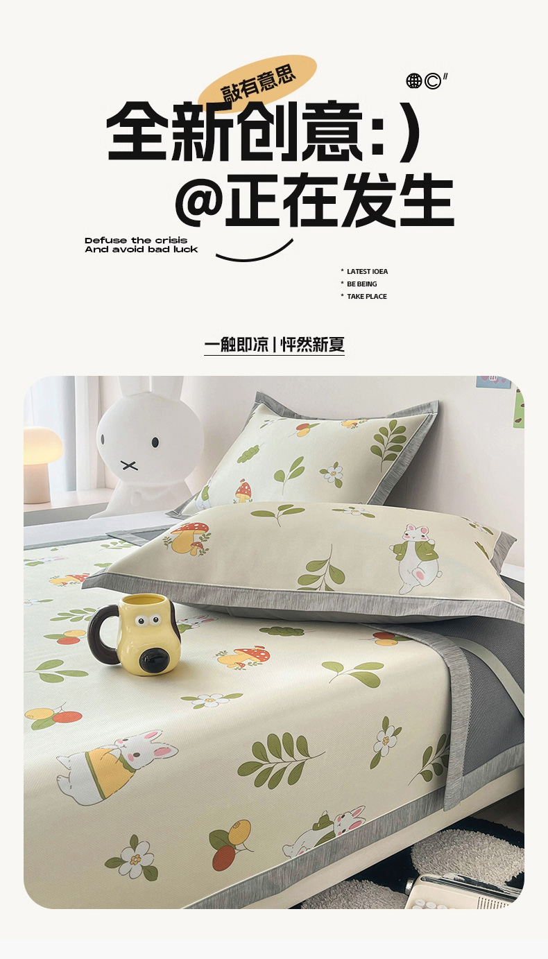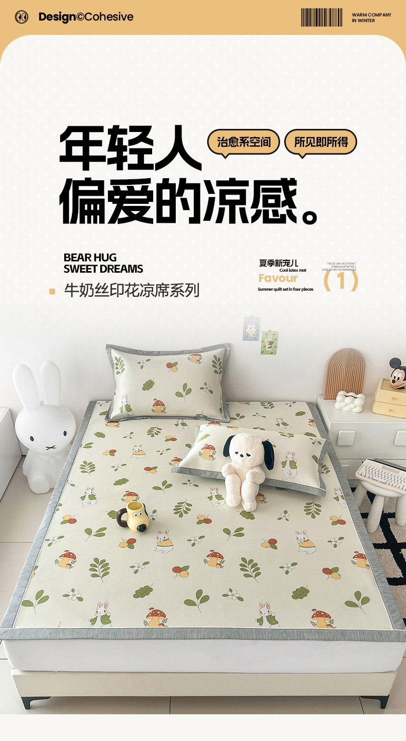 寐居 2024新款时尚印花牛奶丝凉席 花园