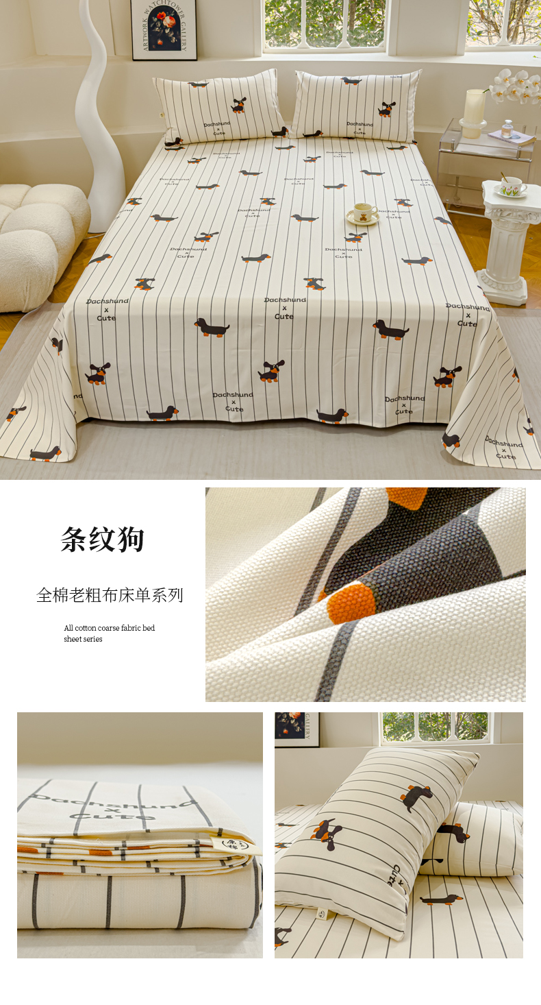 • 91家纺网 家纺一手货源 找家纺 金丝鸟 2024新款成人款A类全棉老粗布床单 条纹狗