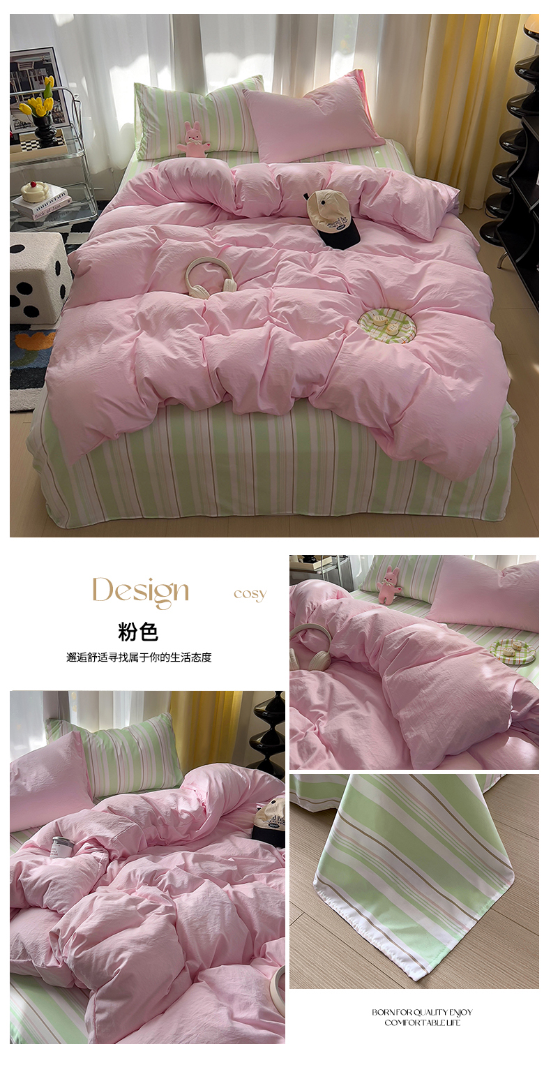 当前位置: 91家纺网 > 商品网购 > 床品套件 > 四件套 > 水洗棉四件套 > 易辰美 2024新款水洗棉混搭条纹四件套 粉色+绿条纹