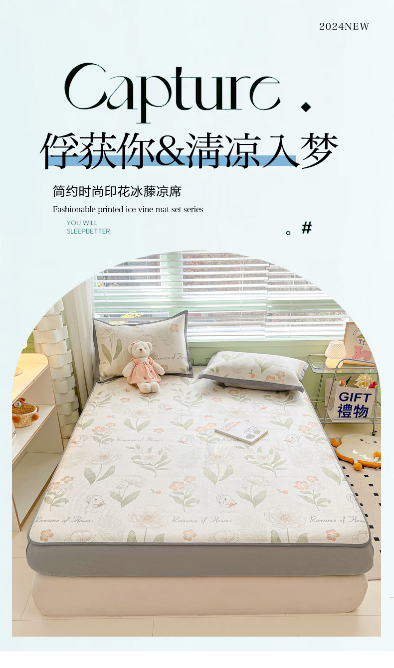 商品名称:沐慕 2024新款小清新印花冰藤床笠系列 床笠-森系小兔