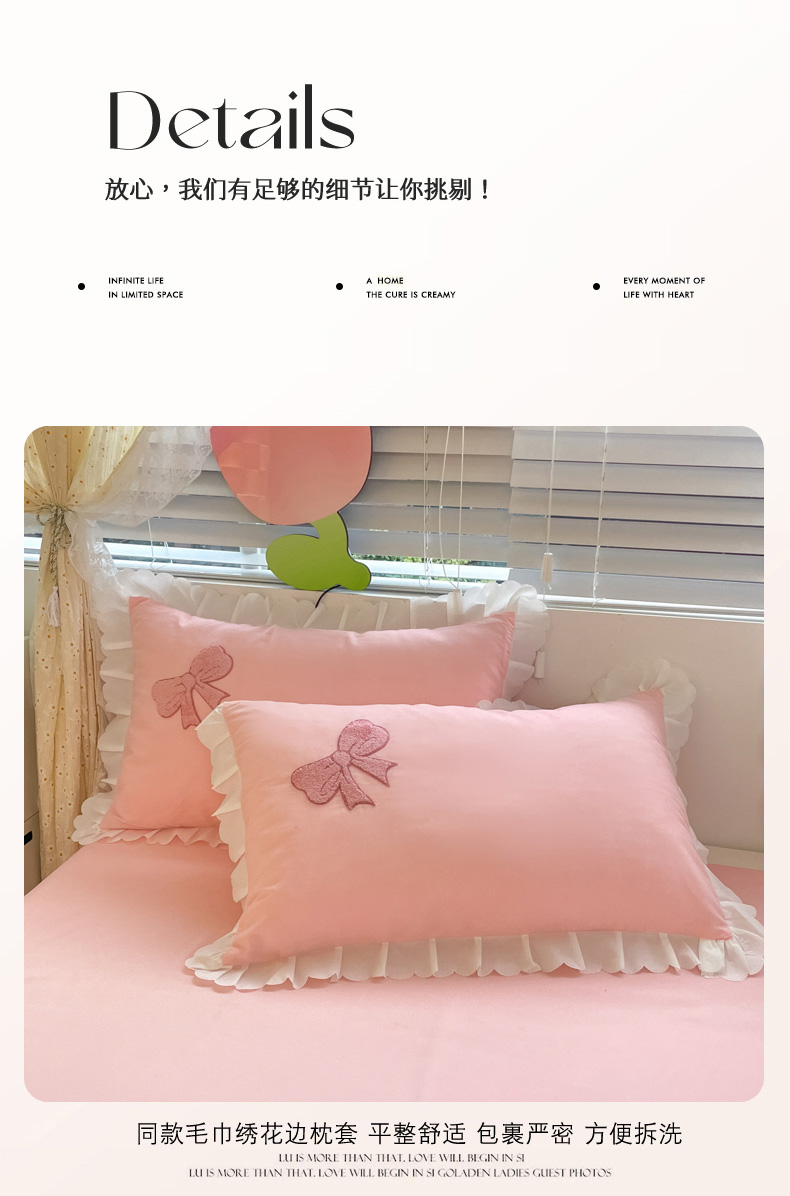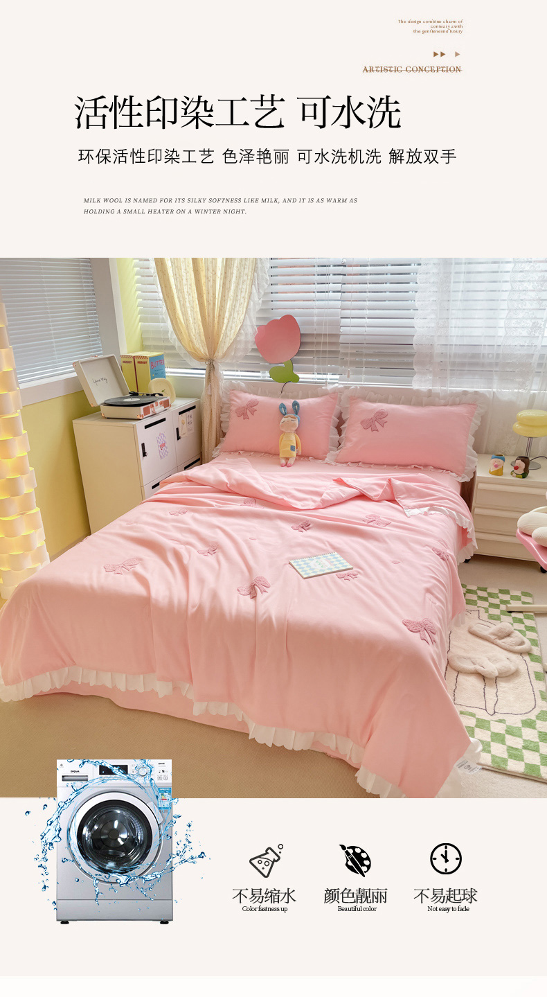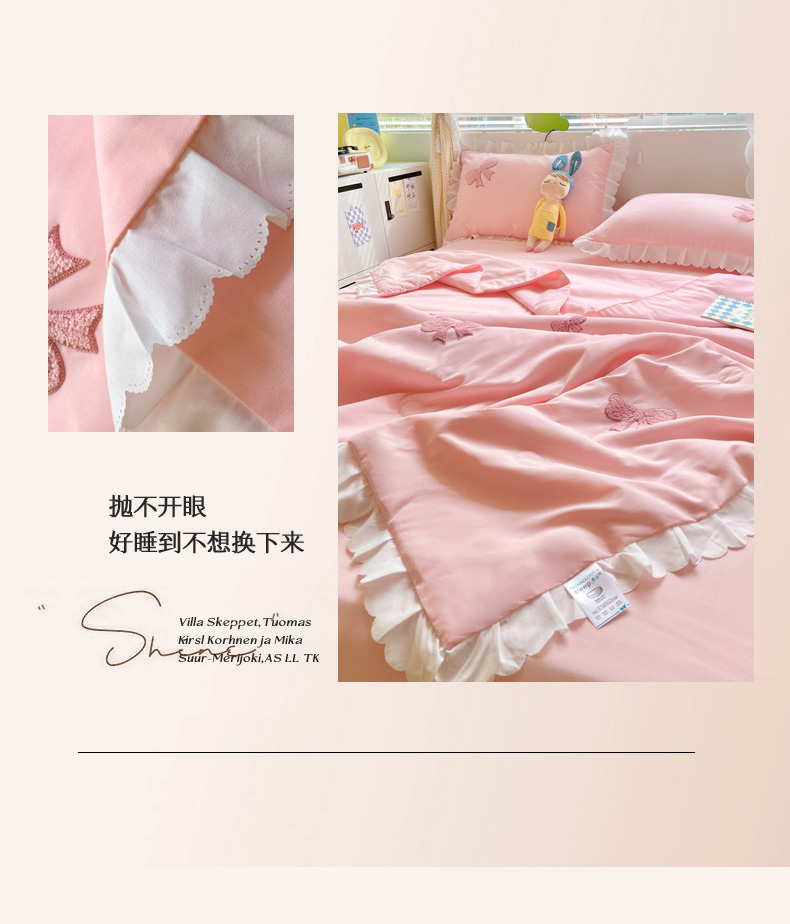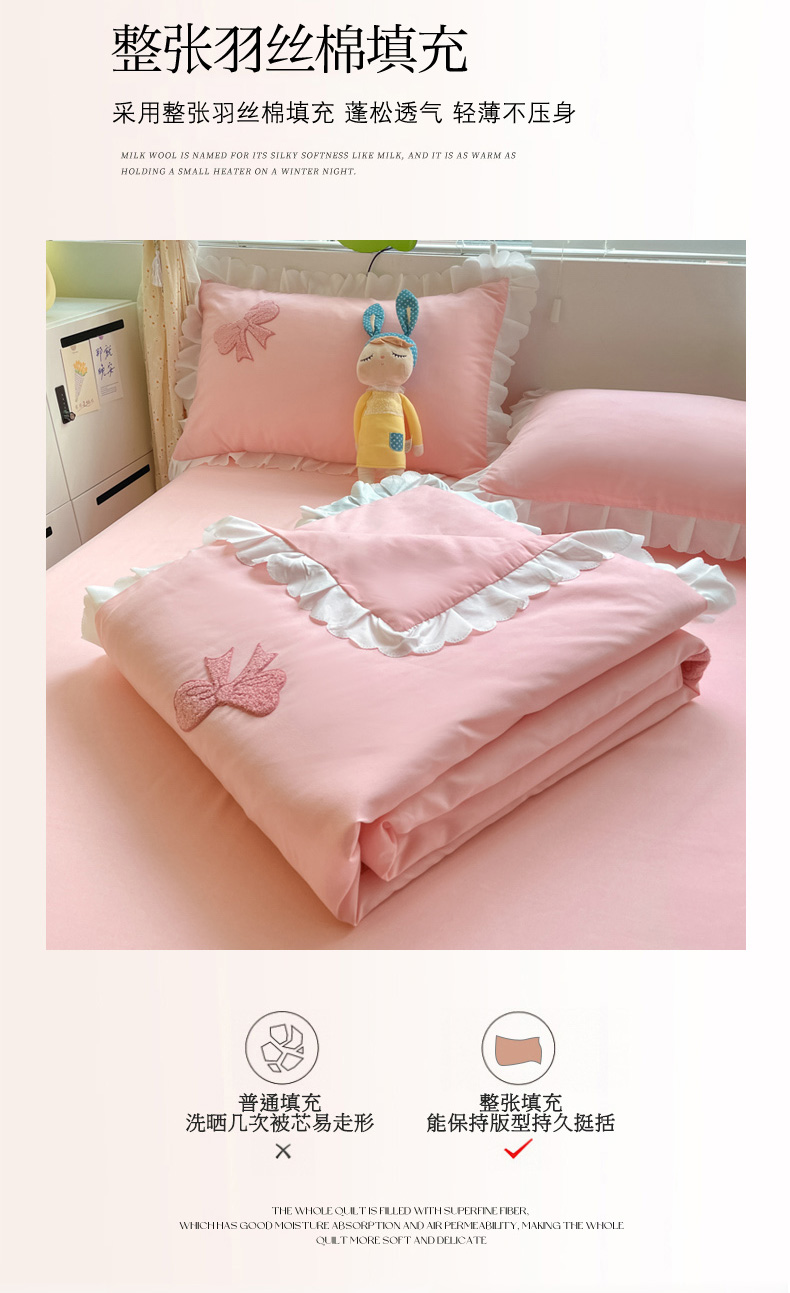 沐慕 2024新款毛巾绣印花夏被四件套 蝴蝶结-粉