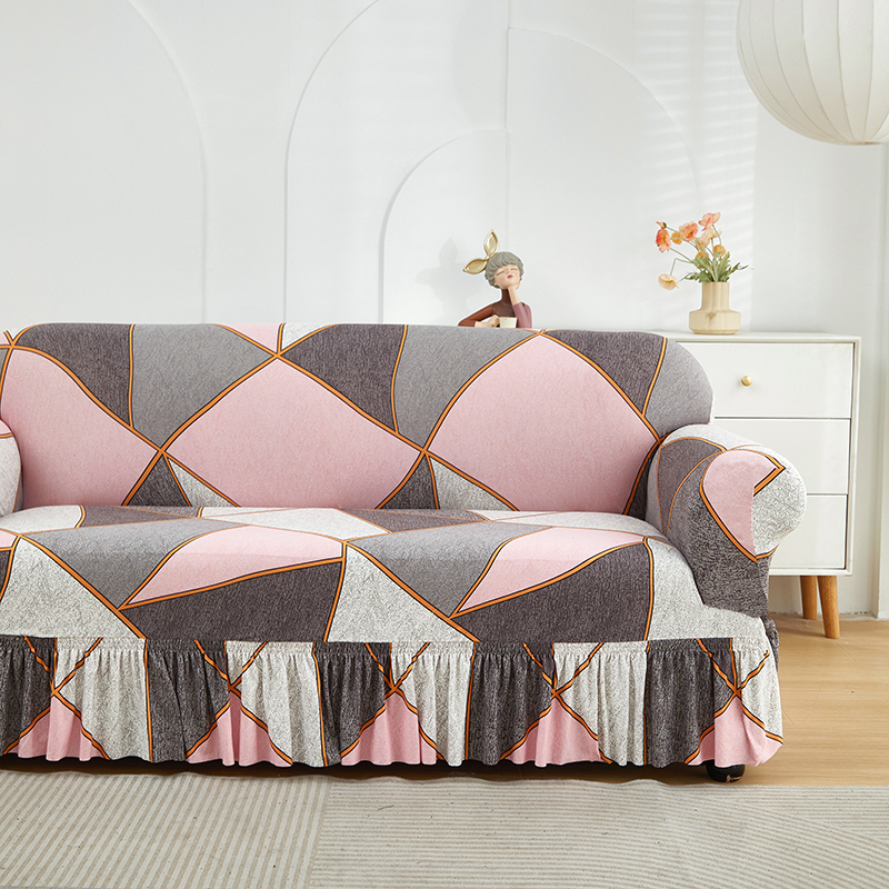 飞翔家纺 2024新款花边裙摆沙发套 裙摆-缤纷几何