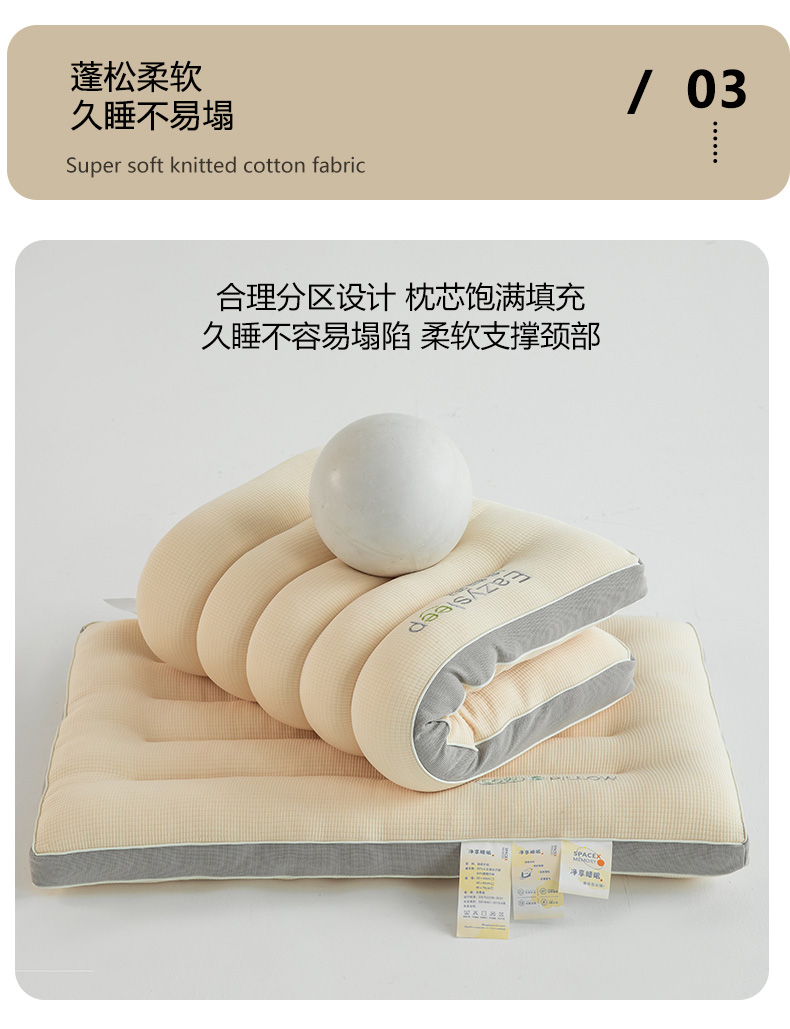 当前位置: 91家纺网 > 商品网购 > 枕头/枕芯/保健枕/颈椎枕 > (总)仁宇枕业 2024新款枕芯 针织棉枕芯逸睡眠枕头