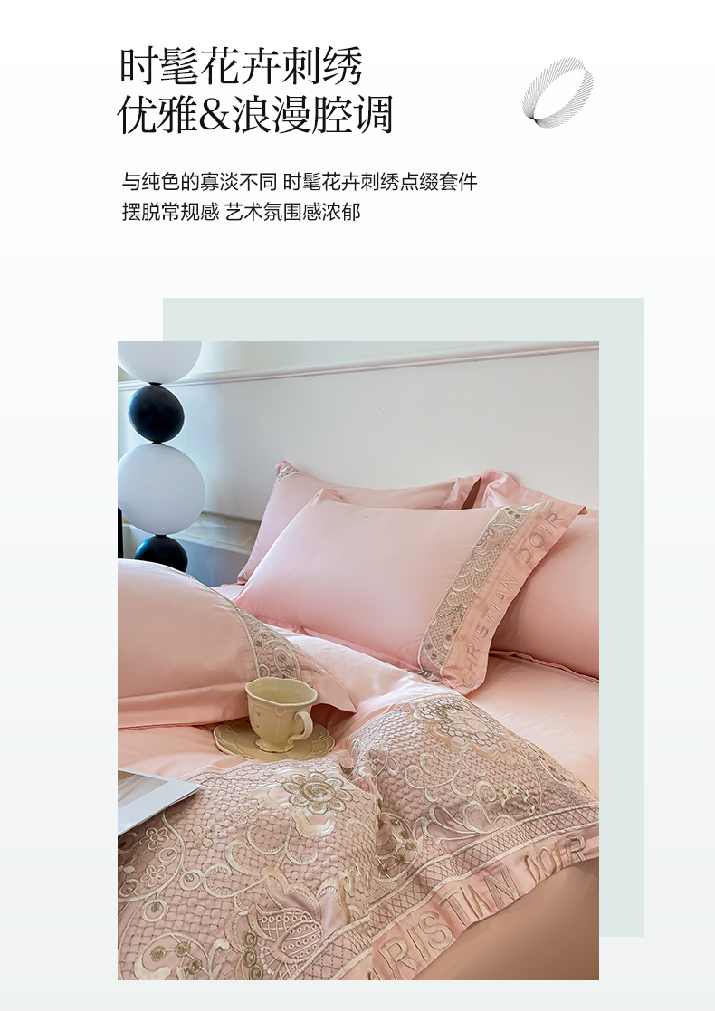 (总)欧乐蒂 2025新款欧式水洗贡缎全棉刺绣四件套-欧雅终版,宾利蓝,玉色,白色,粉色,豆沙,酒红,香槟,高级灰