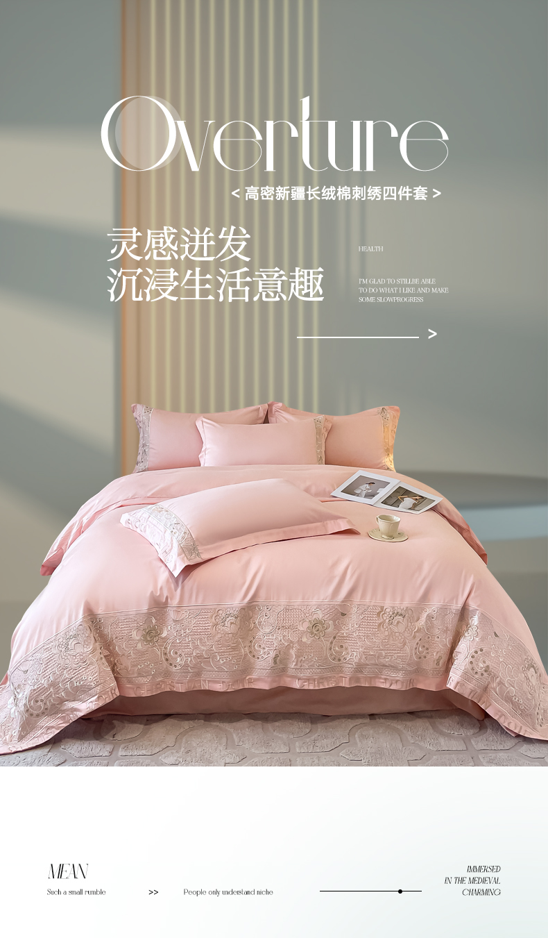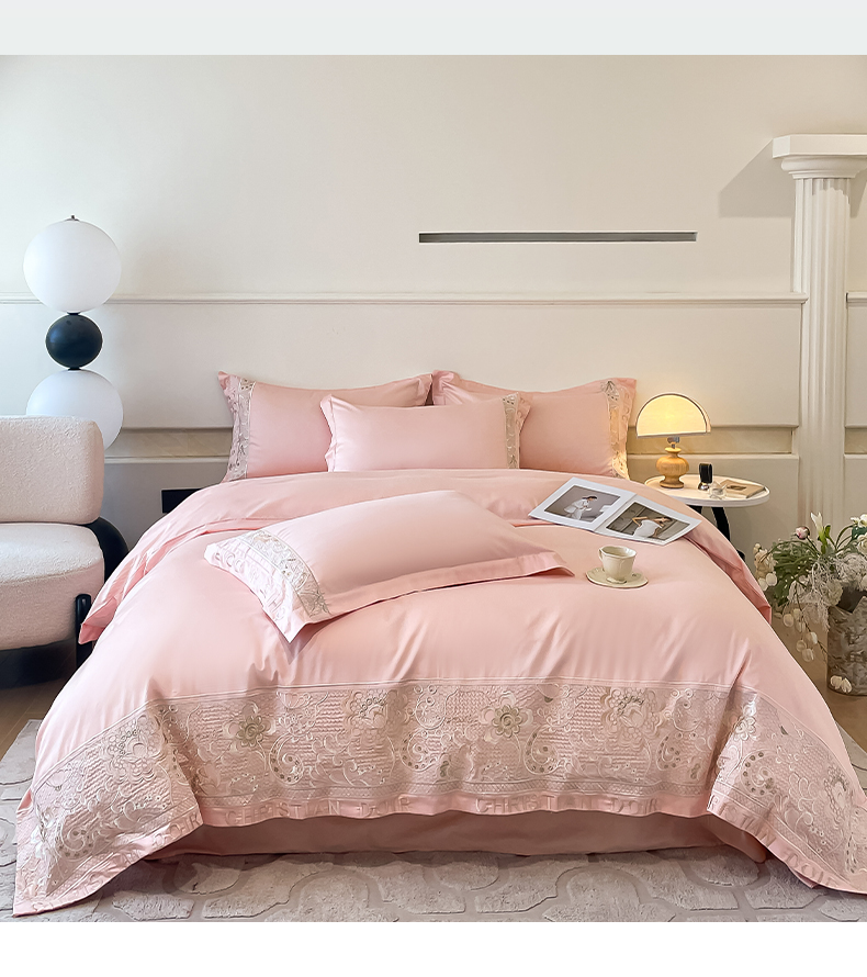 欧乐蒂 2025新款高支密长绒棉刺绣四件套-繁花-终版 繁花-温柔粉