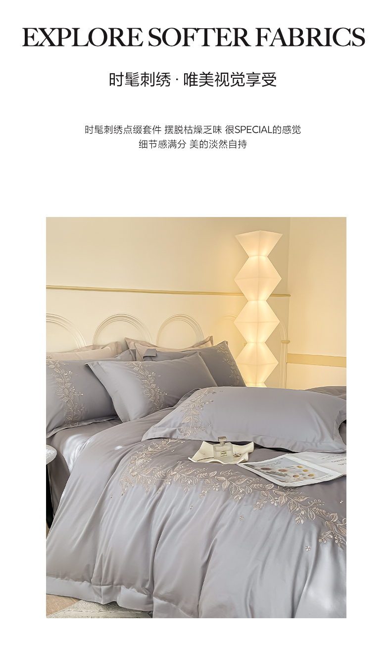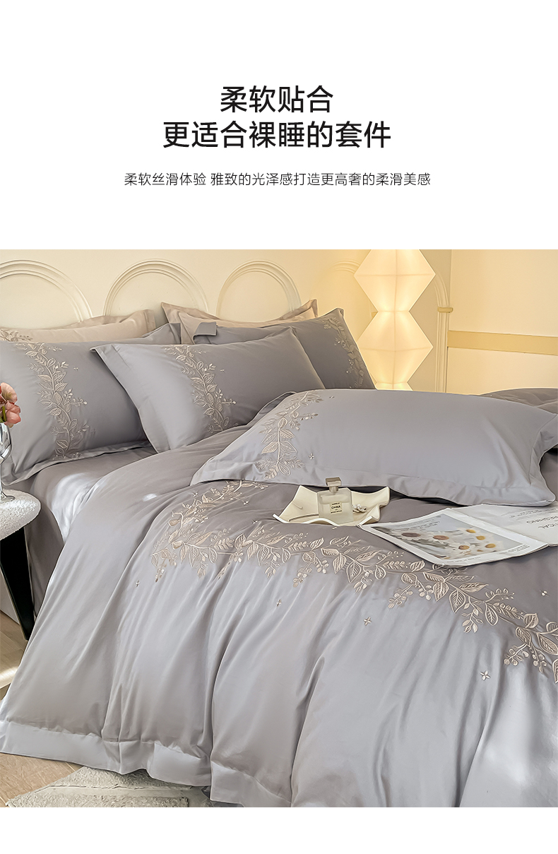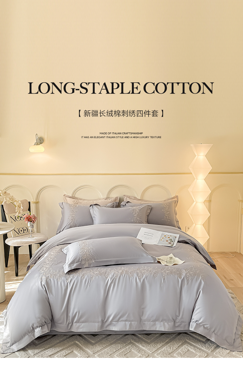 欧乐蒂 2025新款秘密花园-新疆长绒棉刺绣四件套-终版 秘密花园-神秘灰
