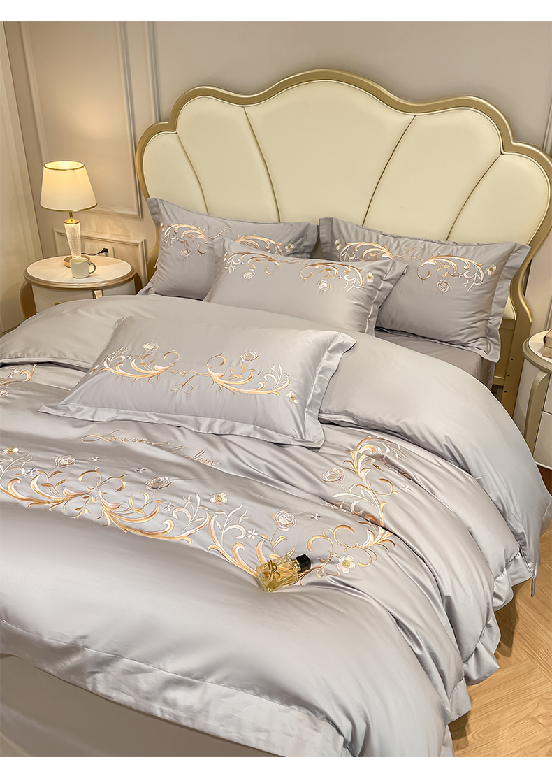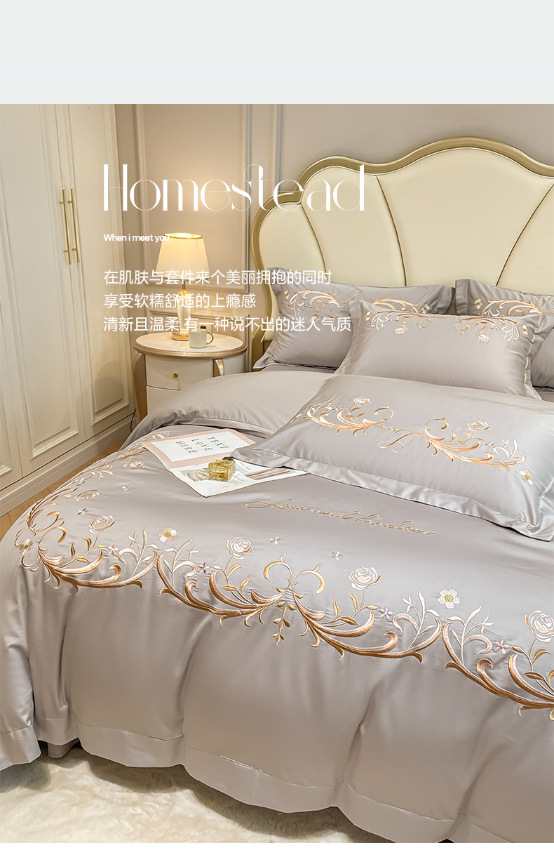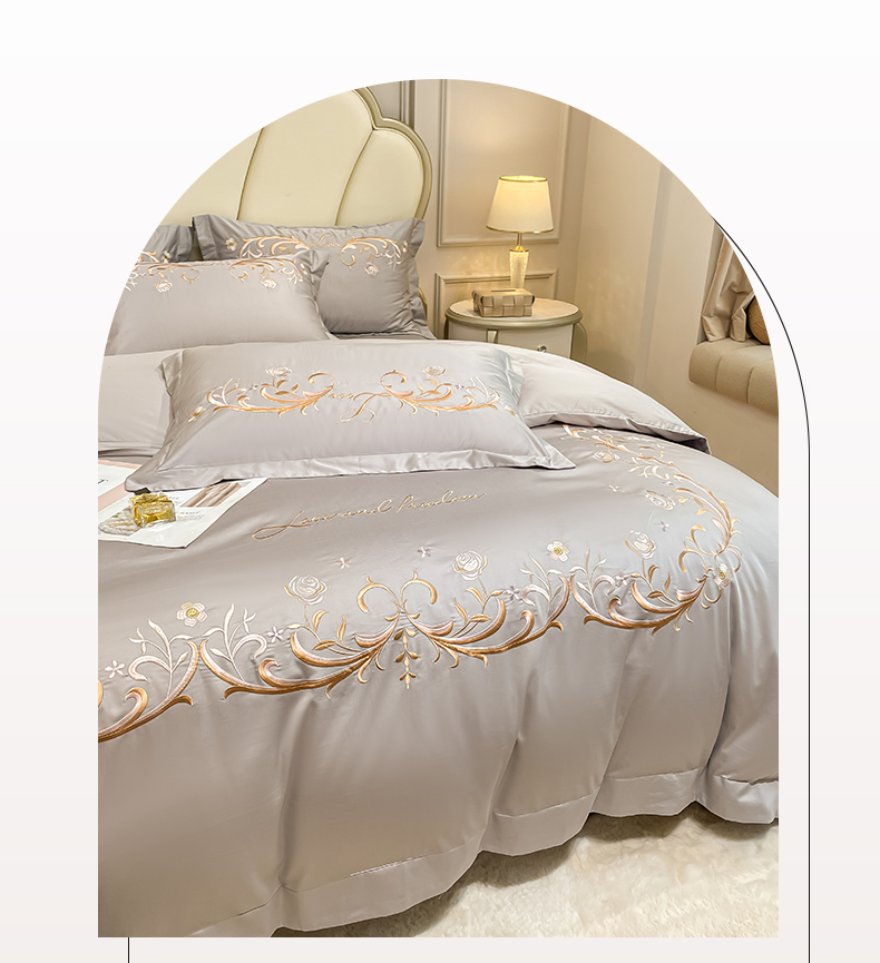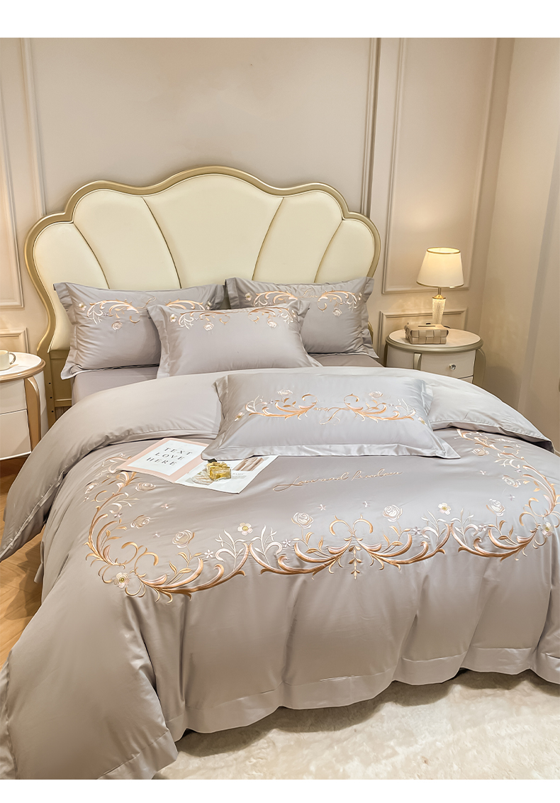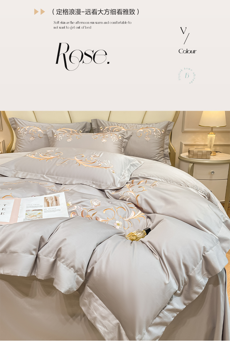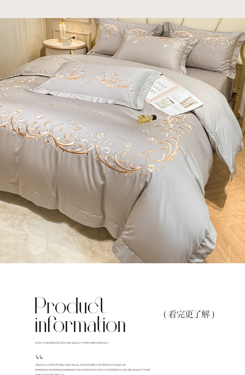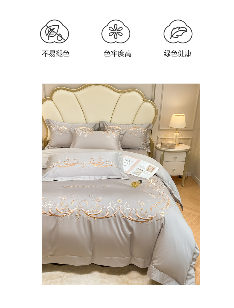 (总)欧乐蒂 2025新款欧式水洗贡缎全棉刺绣四件套-欧雅终版,宾利蓝,玉色,白色,粉色,豆沙,酒红,香槟,高级灰