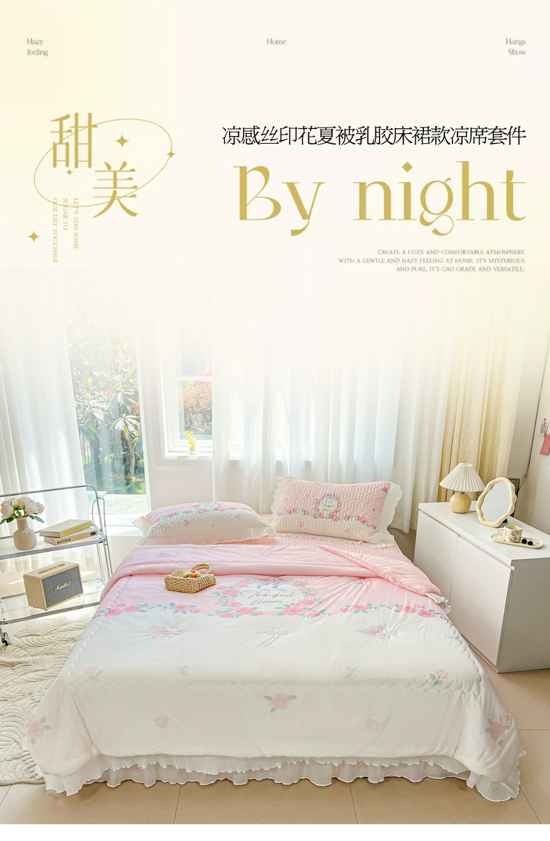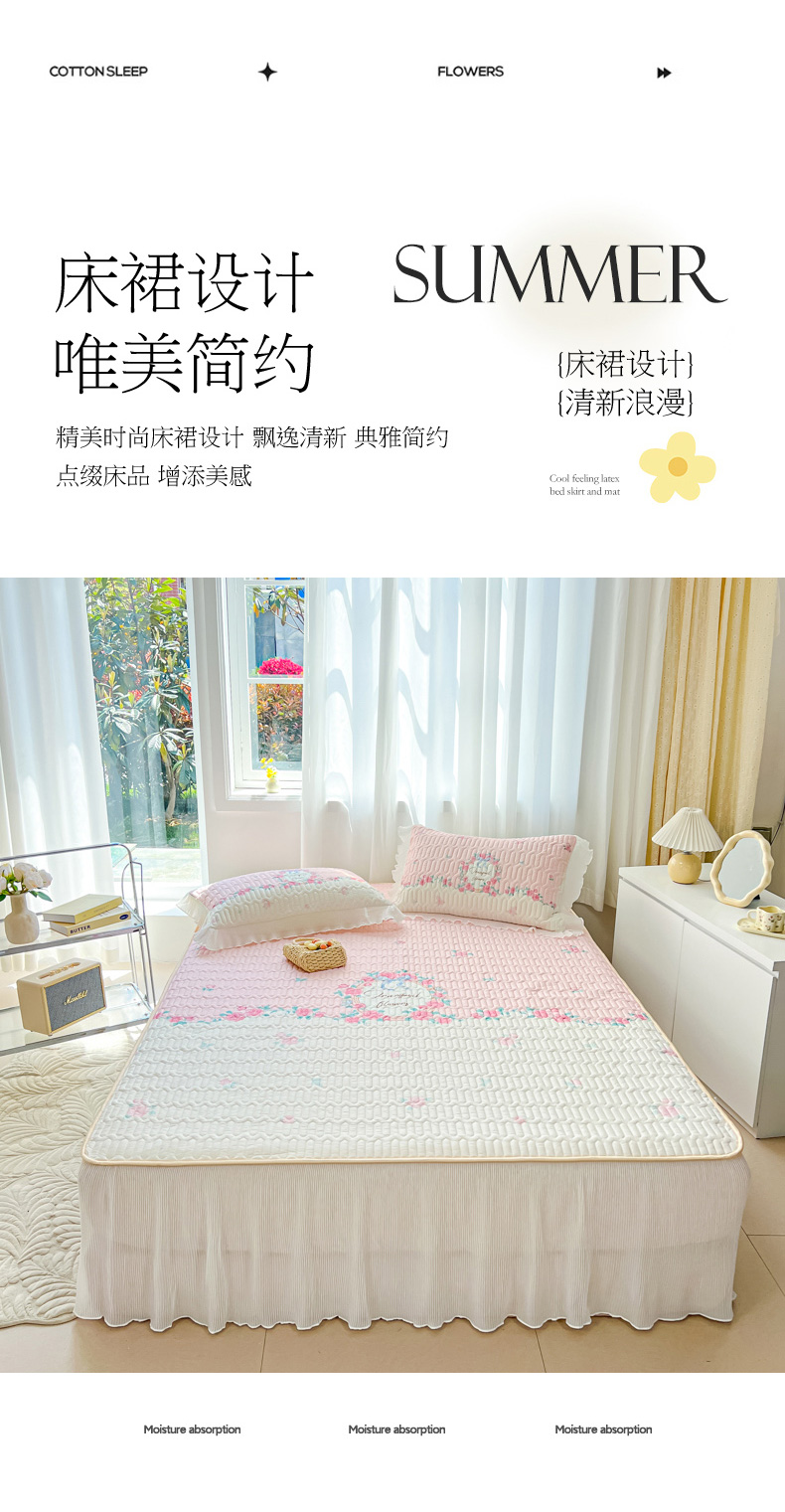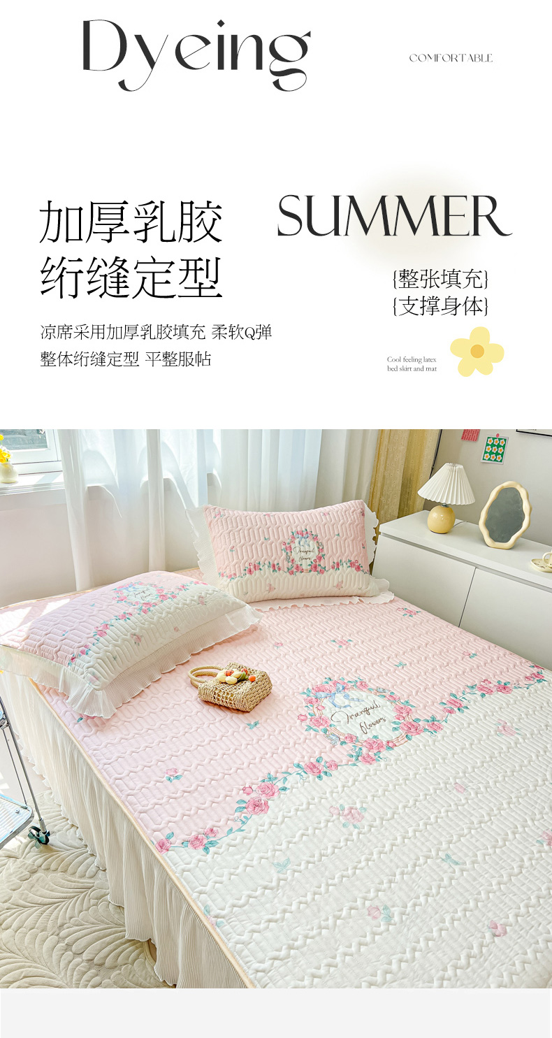 慕澄家纺 2024新款大版印花床裙款乳胶凉席-凉席三件套 温馨
