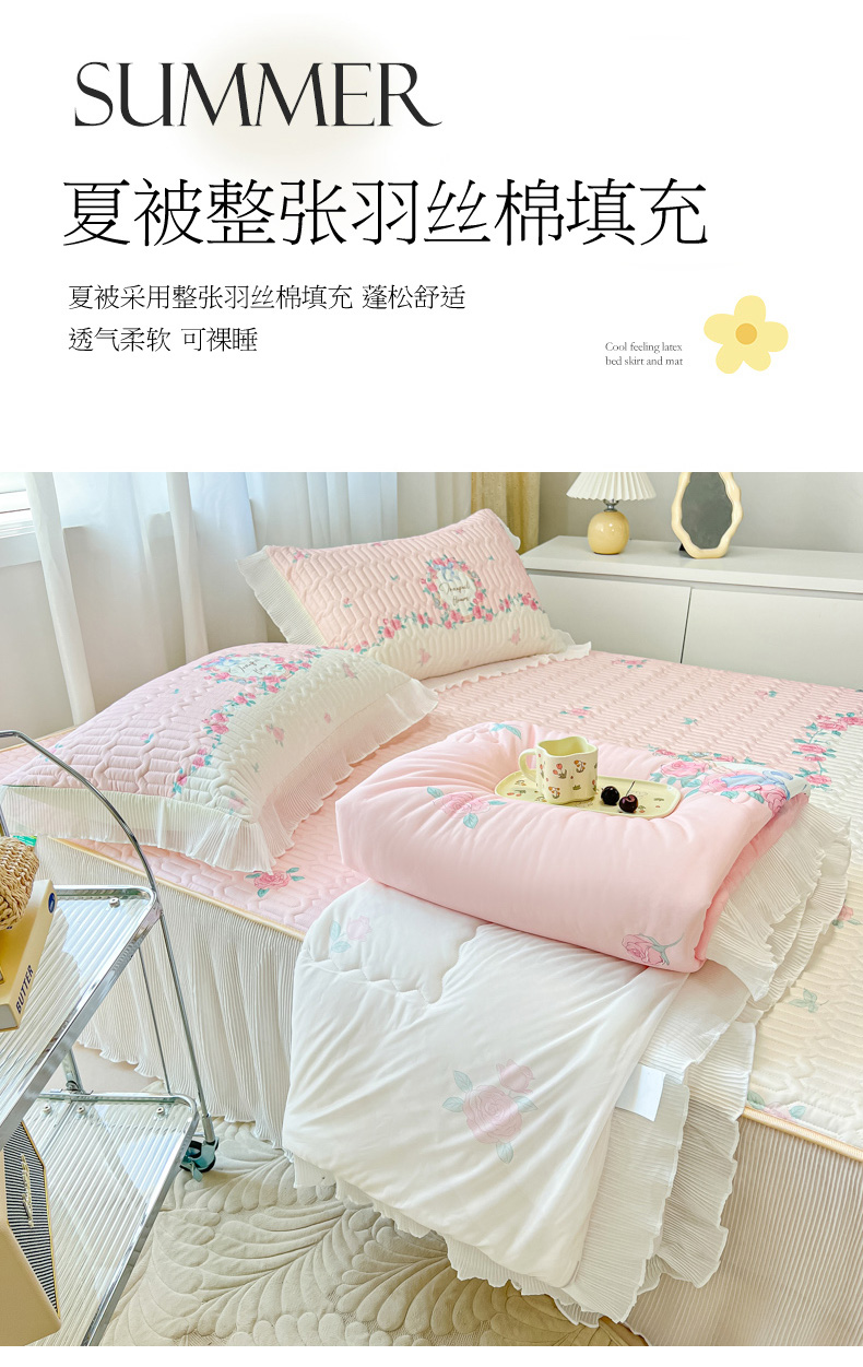慕澄家纺 2024新款时尚印花泡泡棉花边夏被夏凉被空调被 夏被-心语,夏被-心语