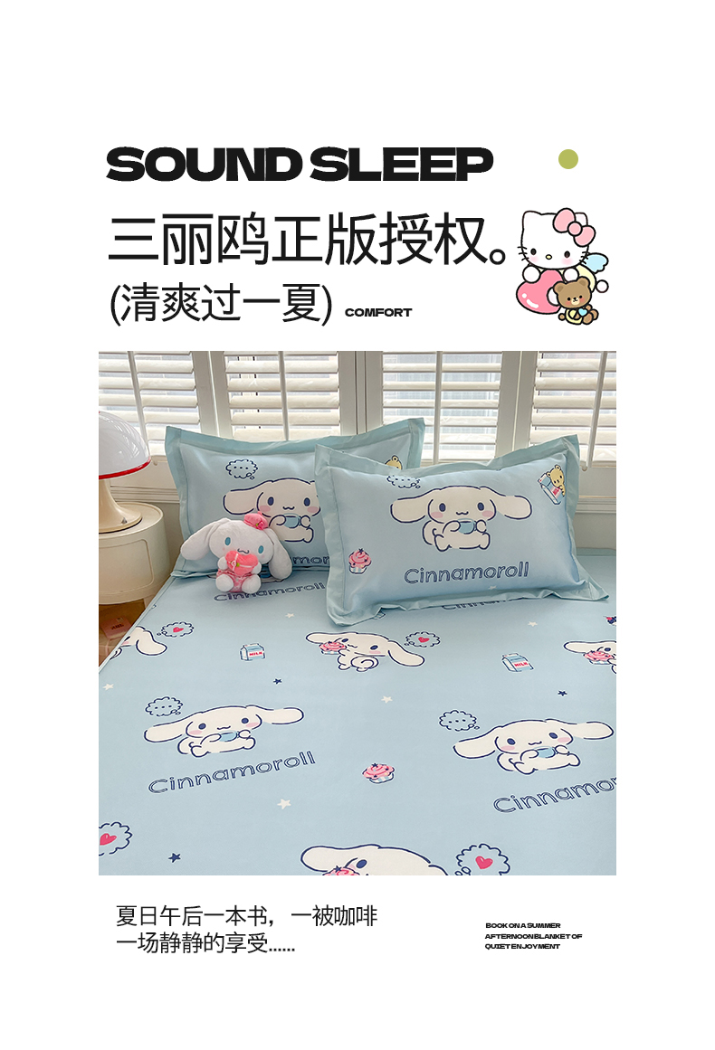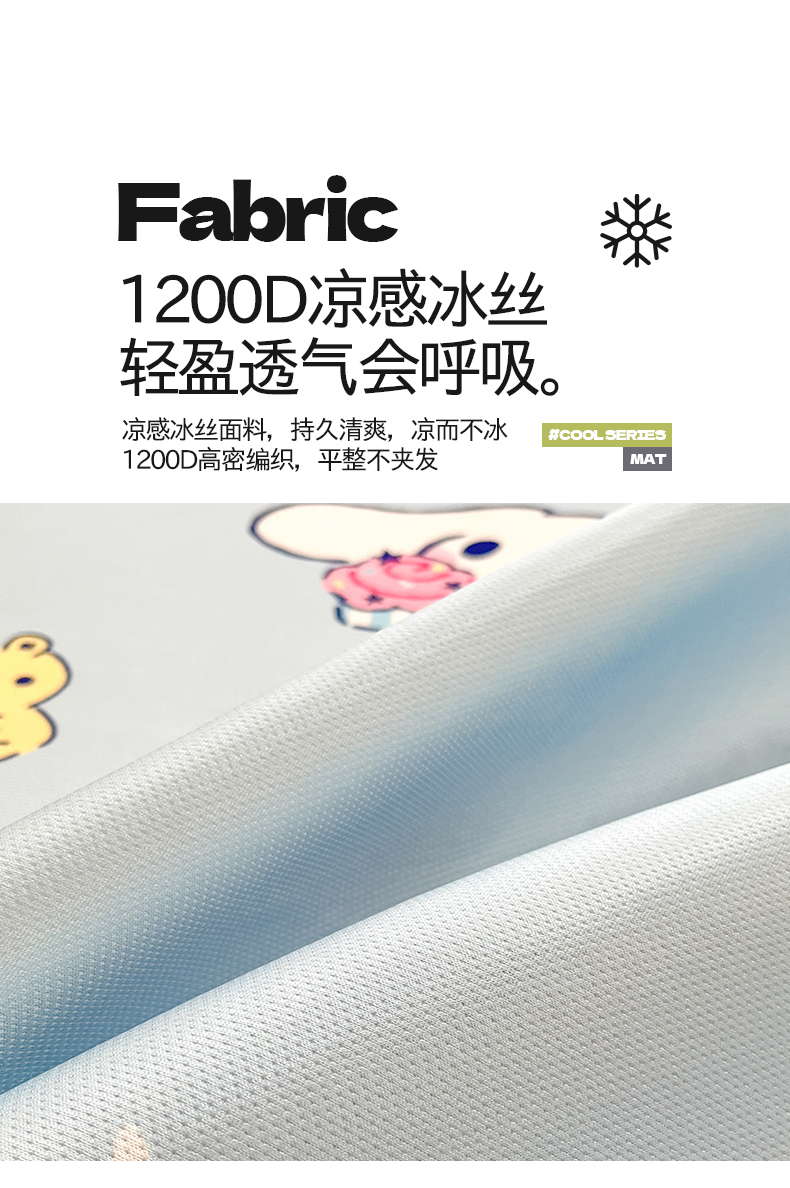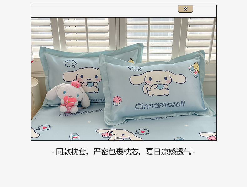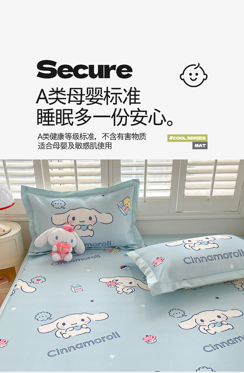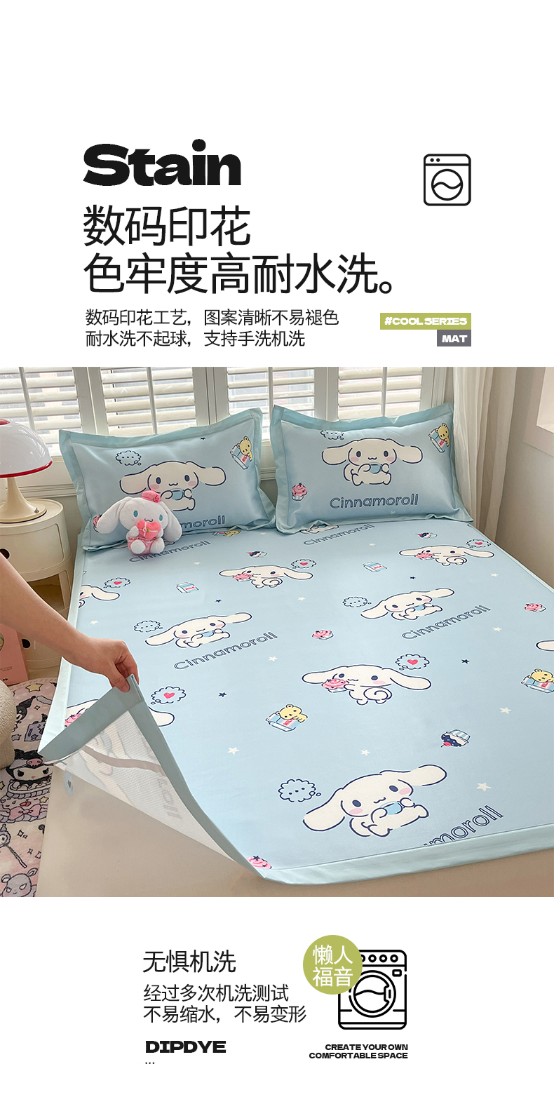 金爱家 2024新款A类三丽鸥授权数码印花中分子1200D凉感冰丝宽边凉感软席 冰丝席-甜心蛋糕玉桂狗