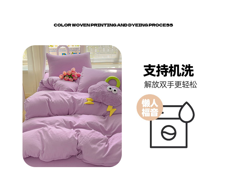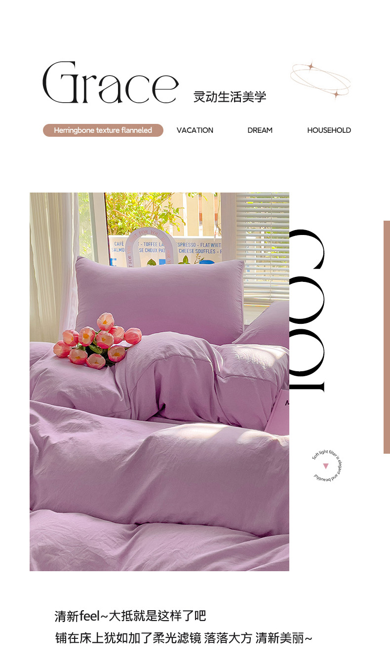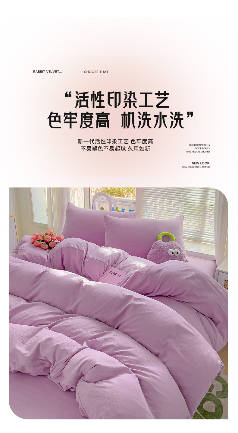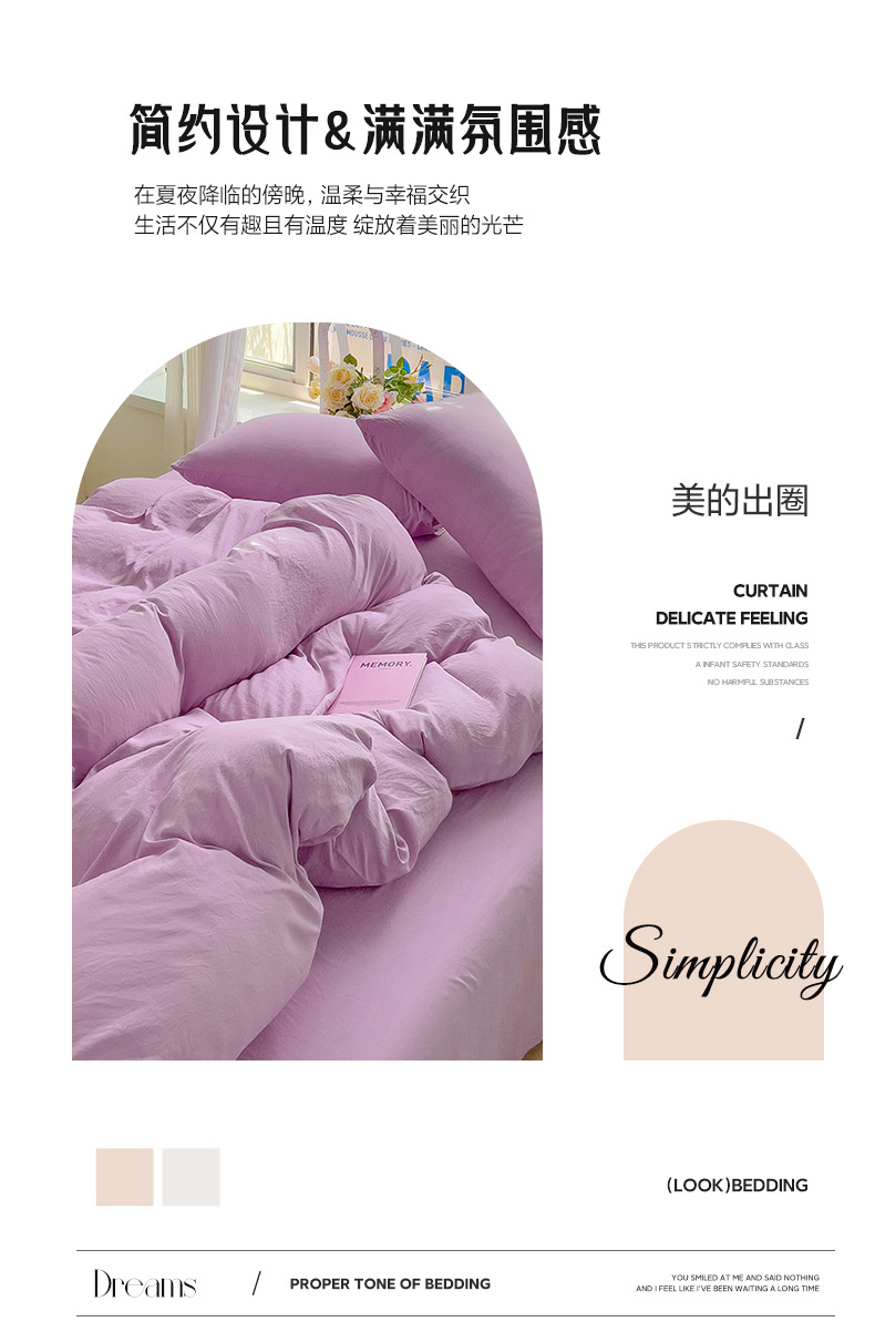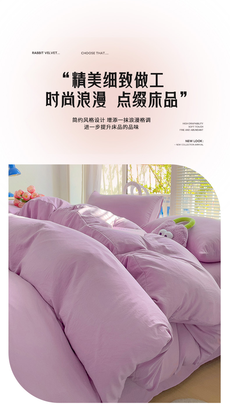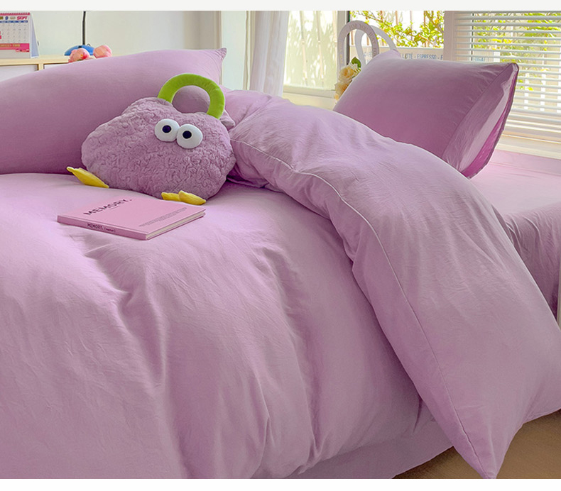 当前位置: 91家纺网 > 商品网购 > 床品套件 > 四件套 > 水洗棉四件套 > 森璐家纺 2024新款1ins风水洗棉四件套纯色四件套混搭素色四件套(二) 紫色