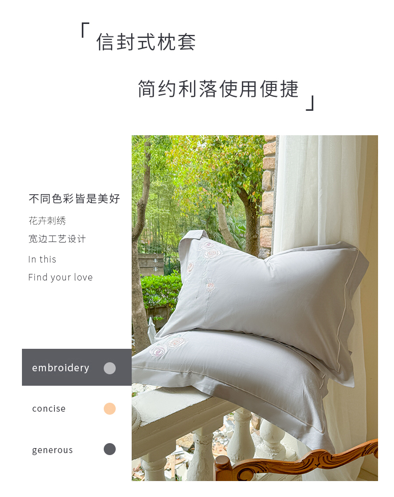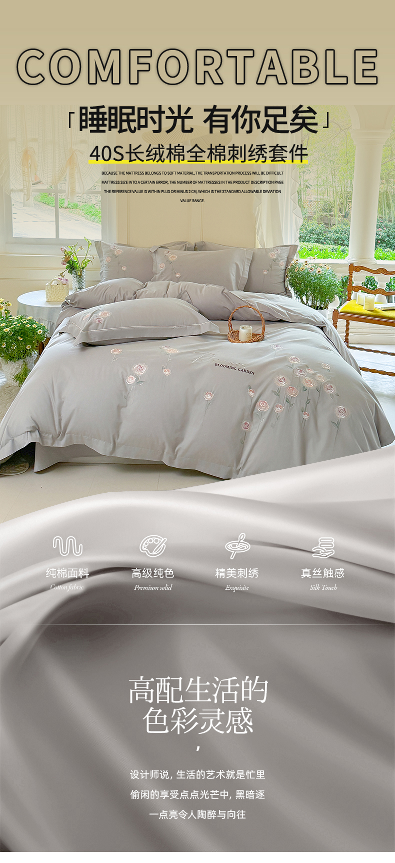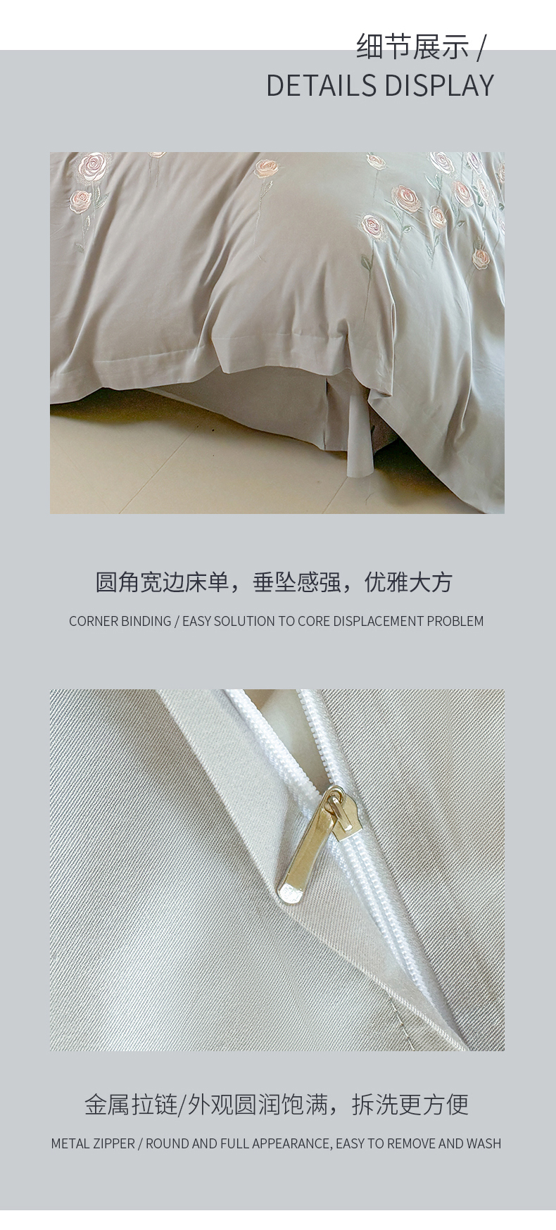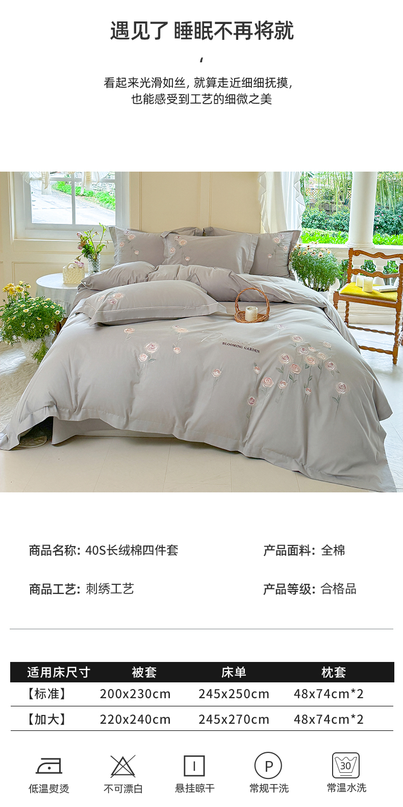 商品名称:红番天家居馆 2025新款长绒棉全棉刺绣四件套-玫瑰之城 玫瑰之城-布拉斯灰
