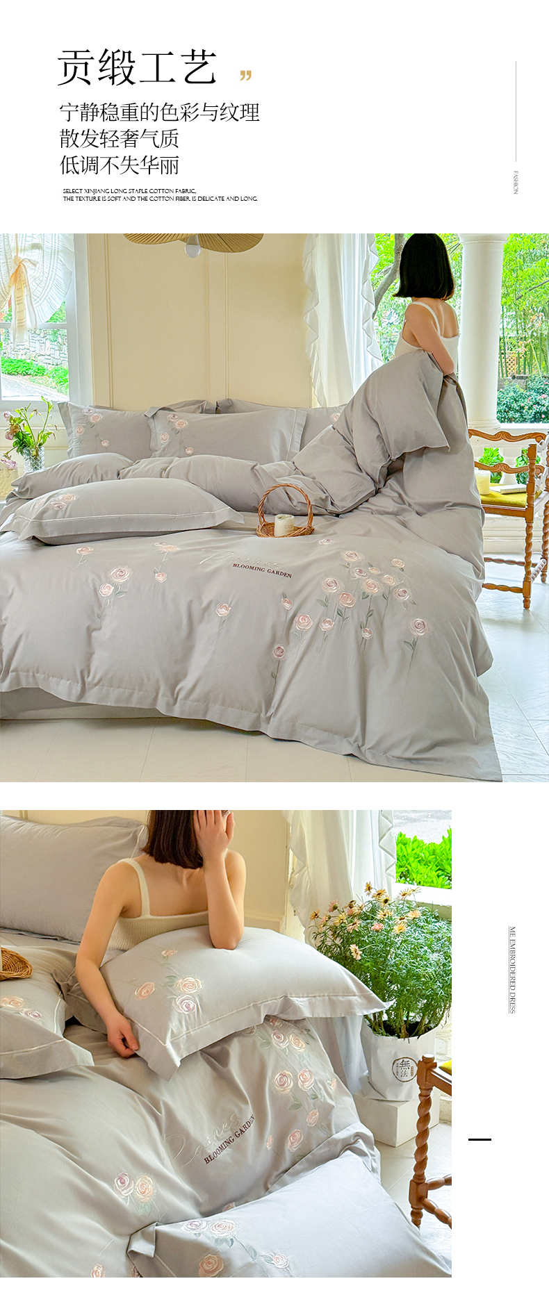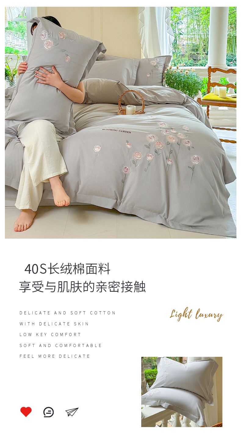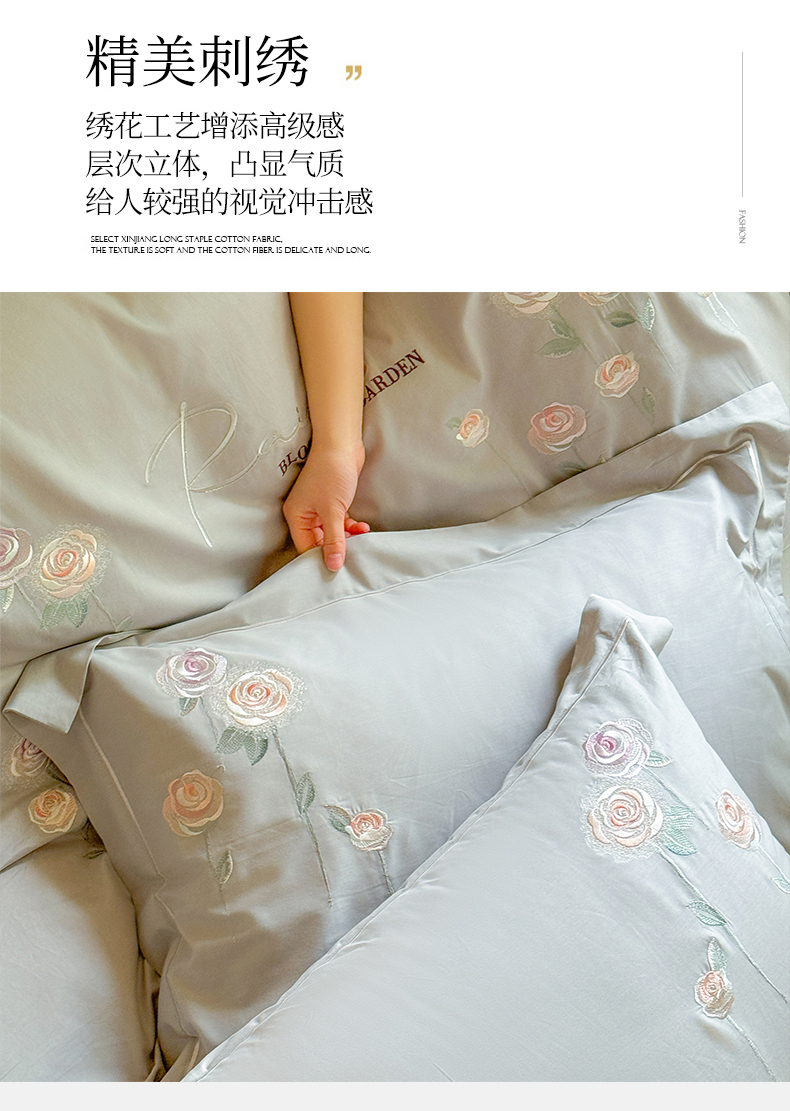 红番天家居馆 2025新款长绒棉全棉刺绣四件套-玫瑰之城 玫瑰之城-布拉斯灰