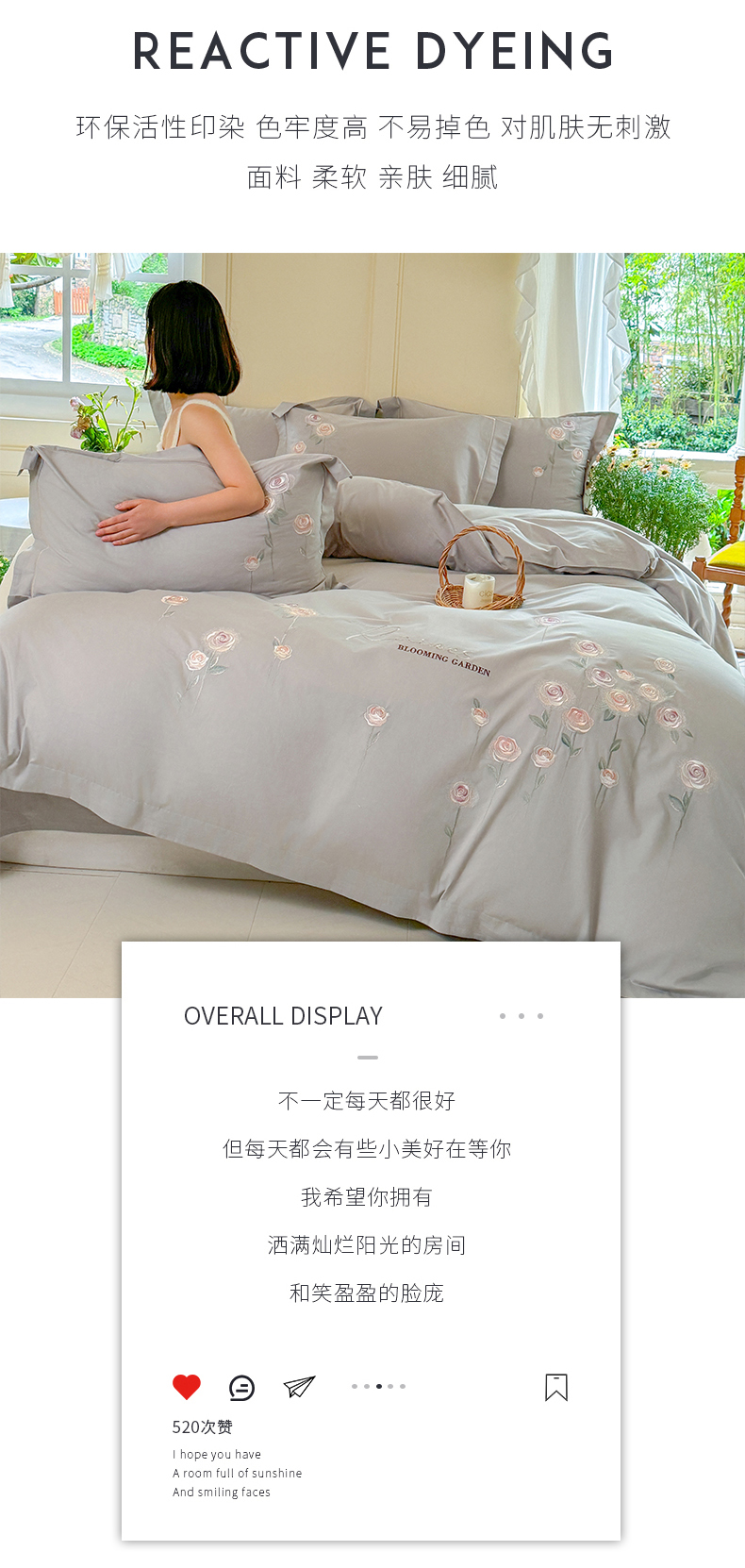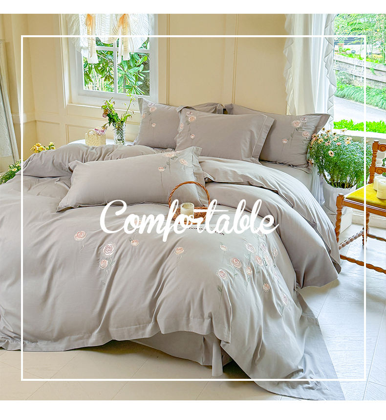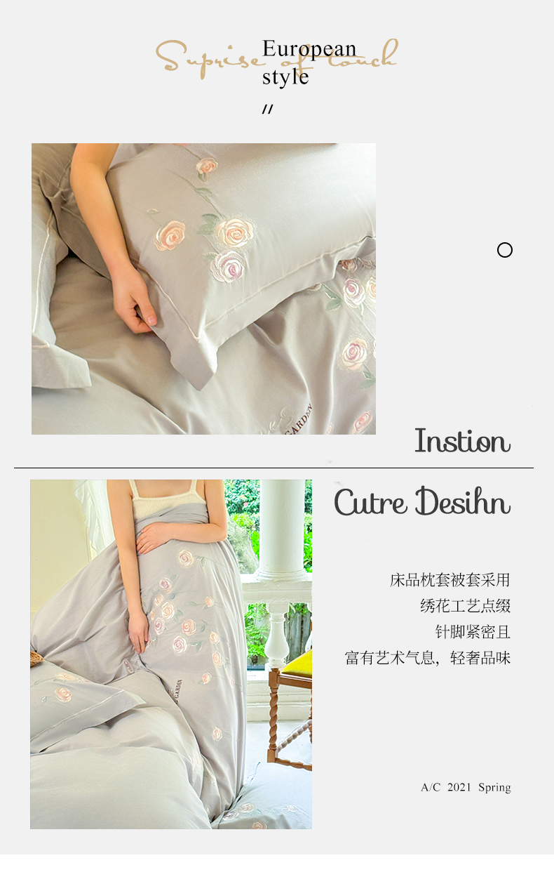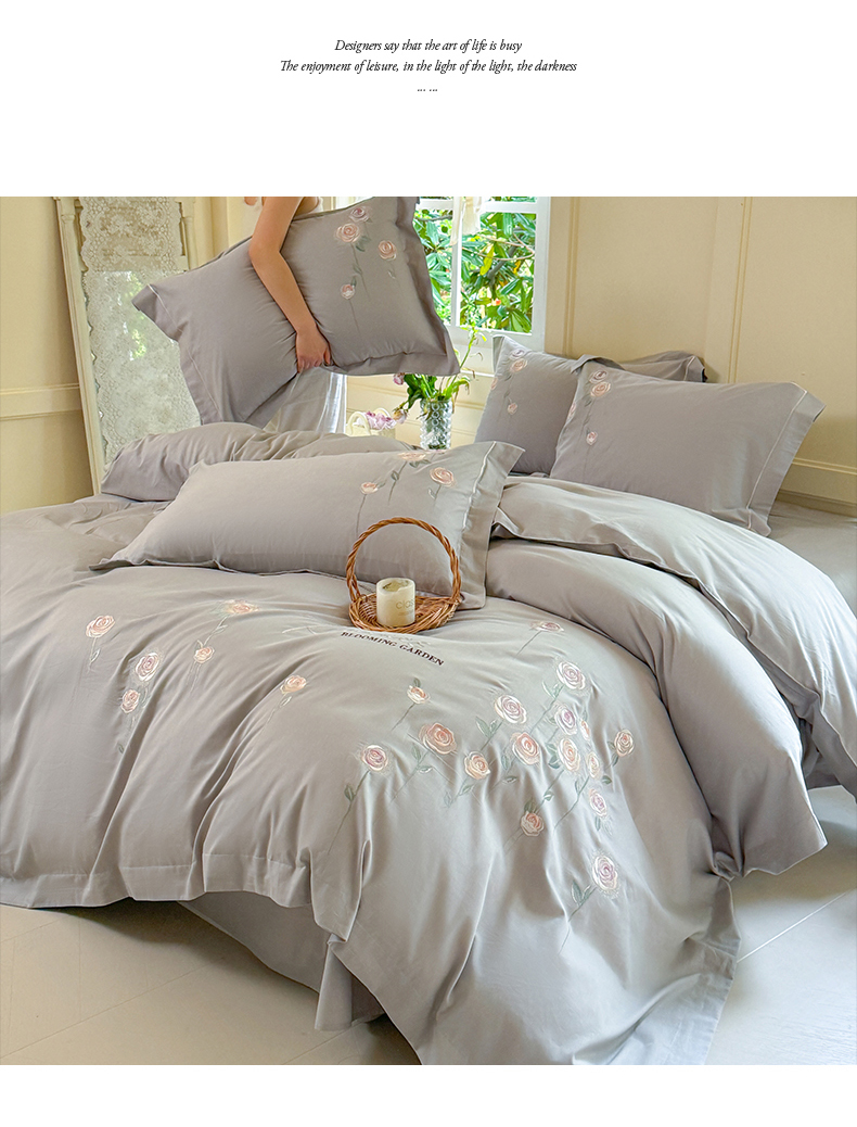 红番天家居馆 2025新款长绒棉全棉刺绣四件套-玫瑰之城 玫瑰之城-布拉斯灰