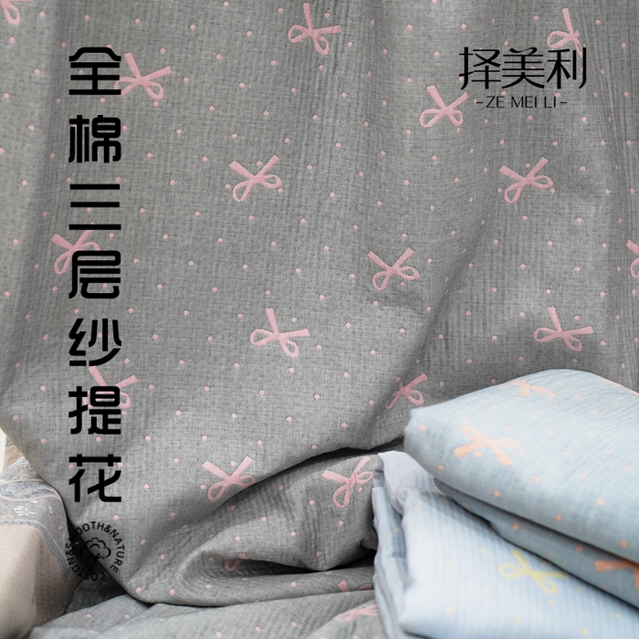 择美利 2024新款套件面料全棉色织三层纱提花系列