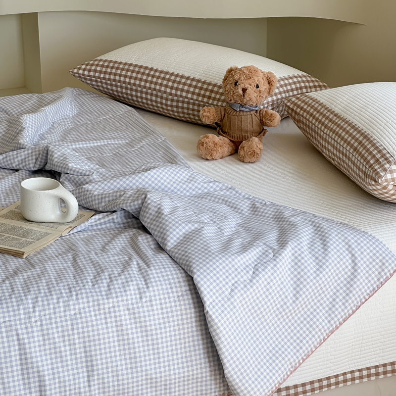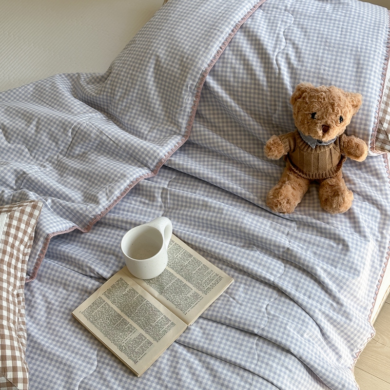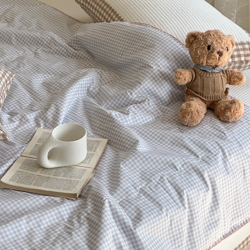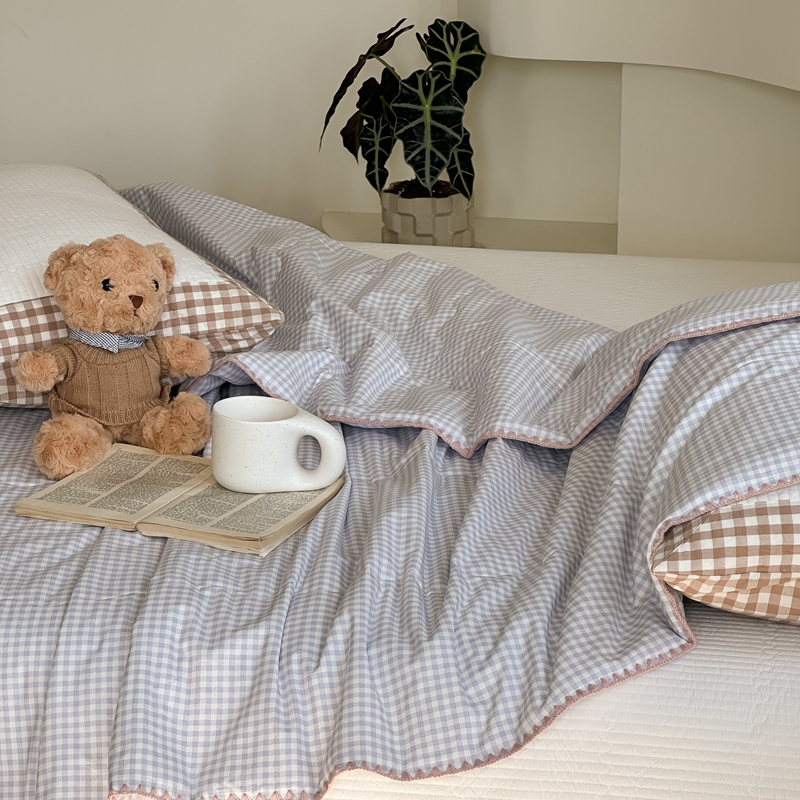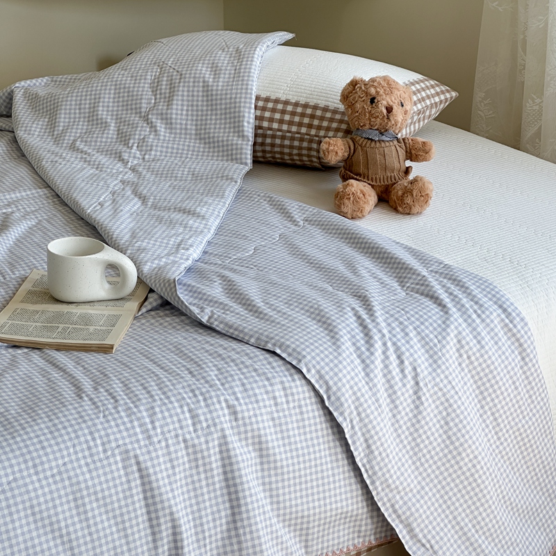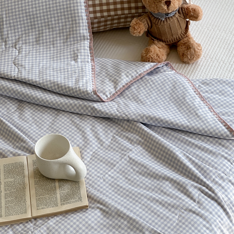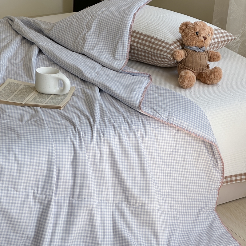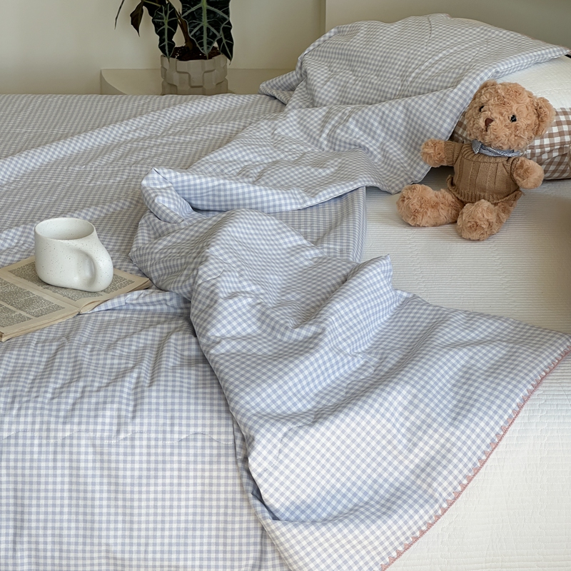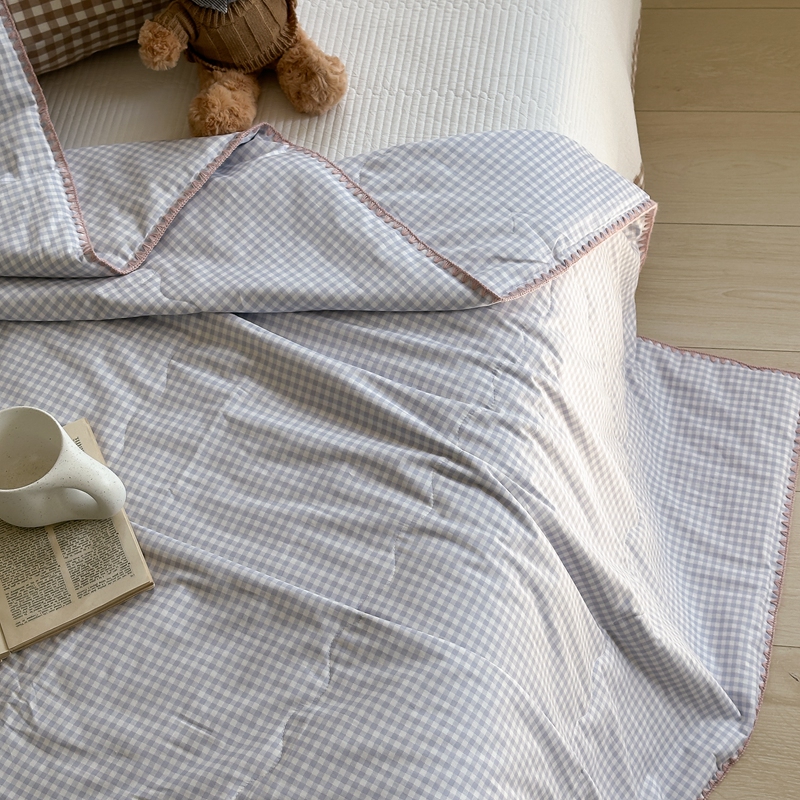 洋铭区(原狠狠爱) 2024新款贝壳边全棉印花夏被 蓝小格
