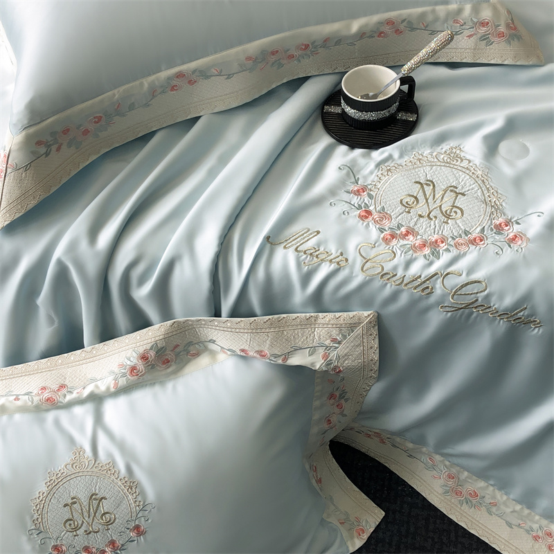 商品名称:馨蕊家居 2024新款奥地利兰精天丝刺绣夏被四件套-梦露 梦露-北卡蓝