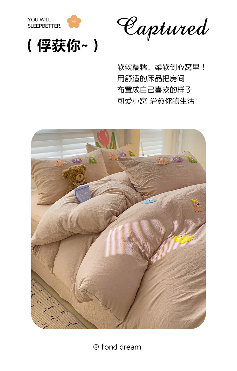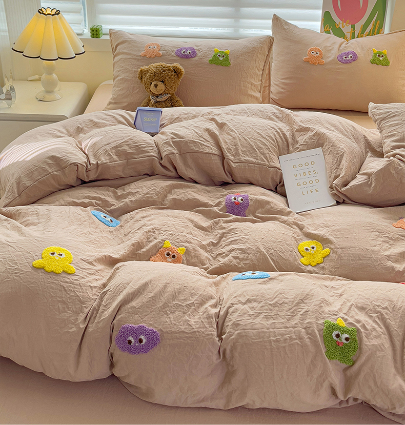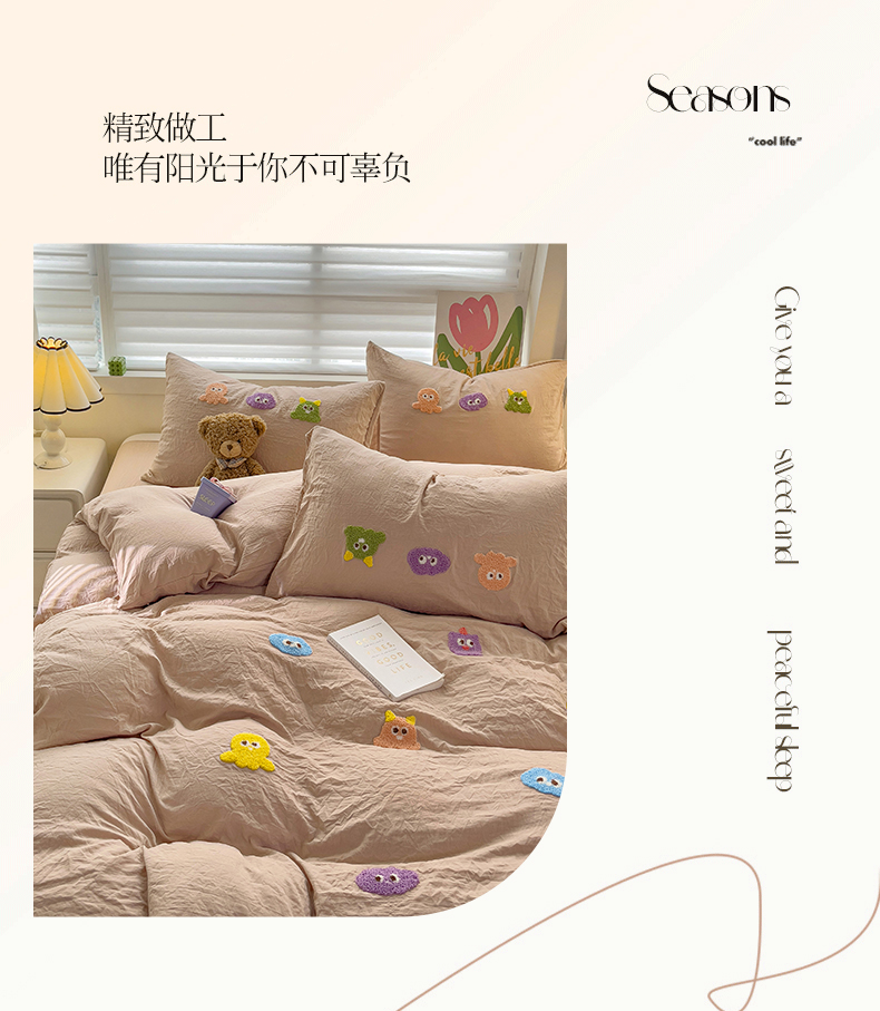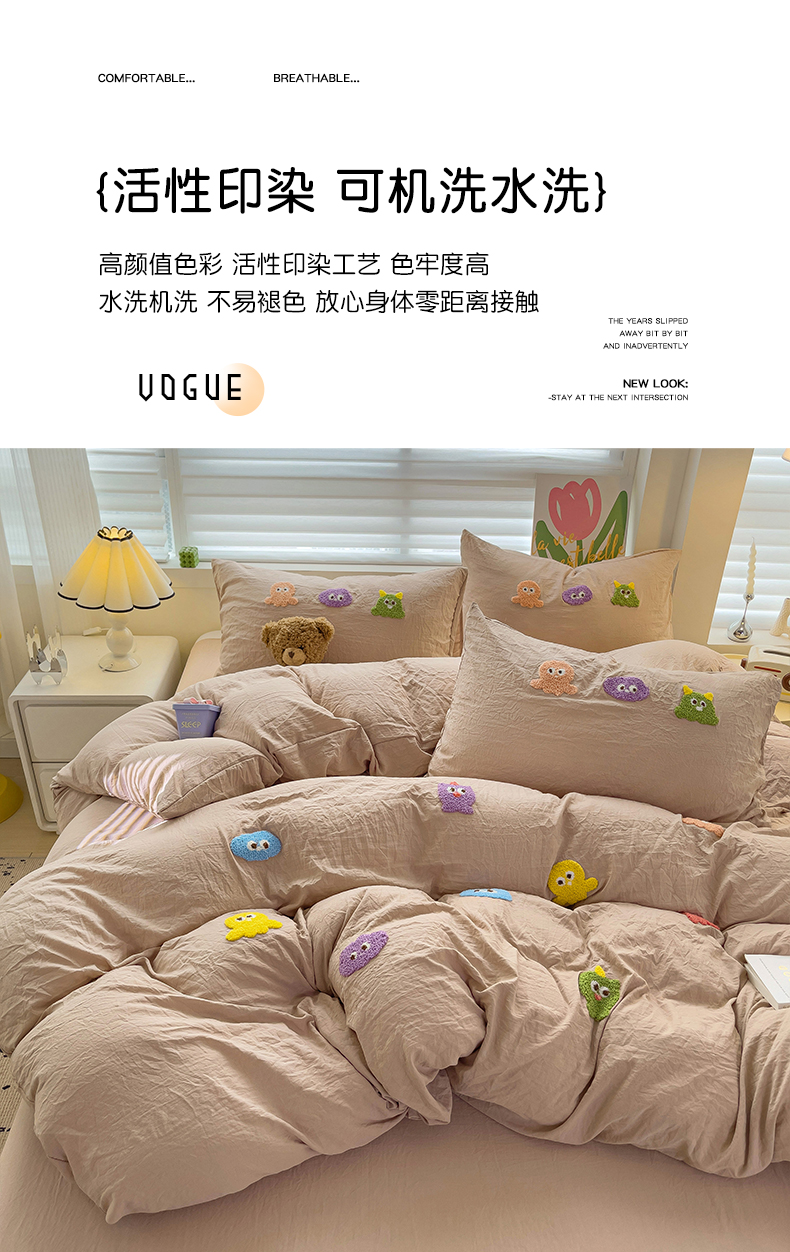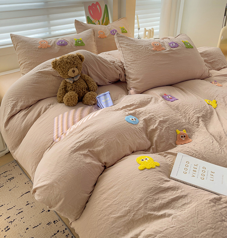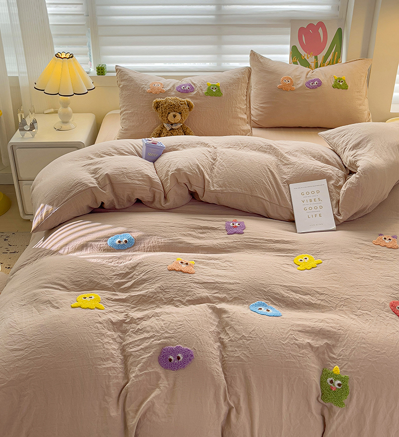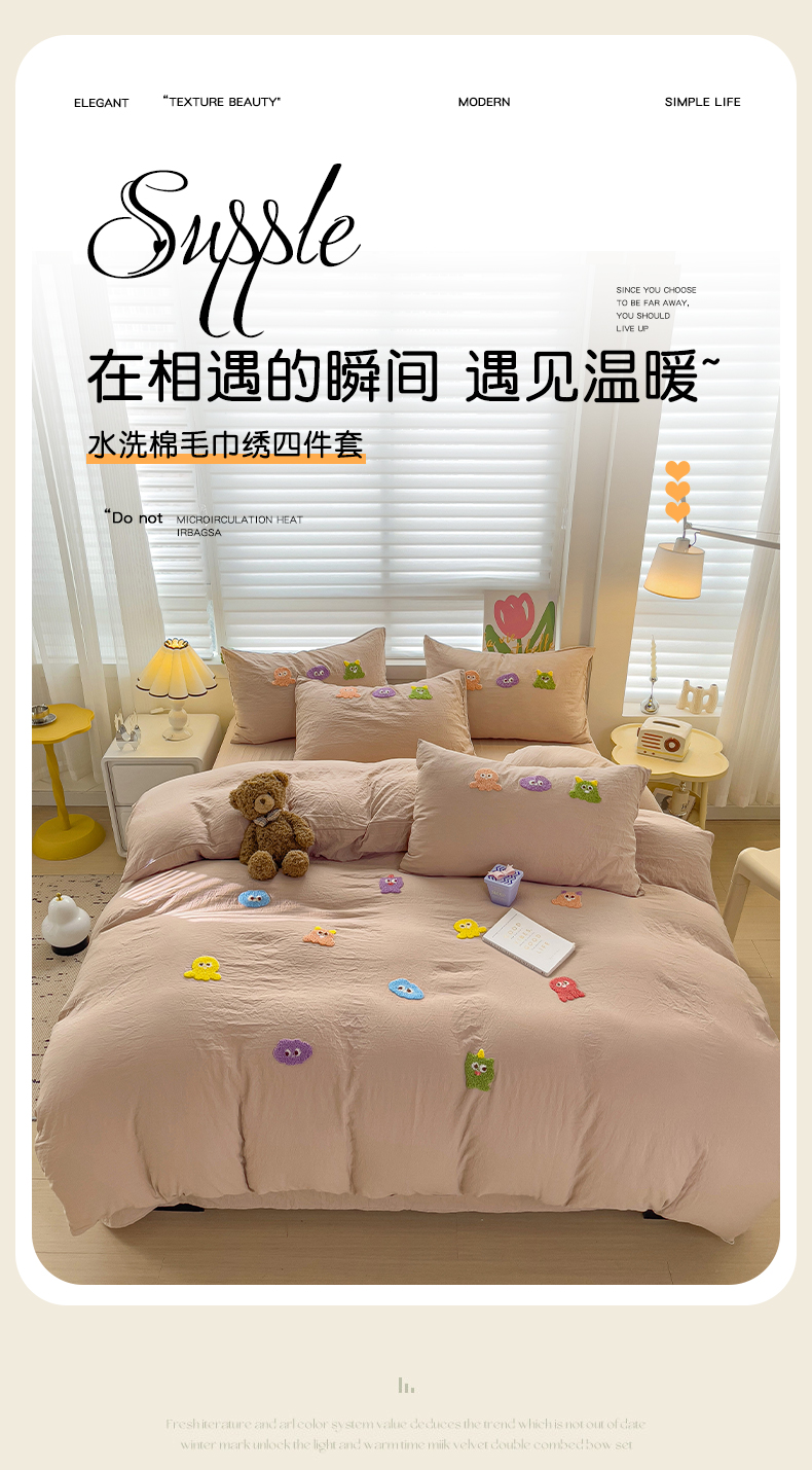当前位置: 91家纺网 > 商品网购 > 床品套件 > 四件套 > 水洗棉四件套 > 韩巢家纺 2024热款超柔水洗棉毛巾绣床上用品四件套学生宿舍三件套-小精灵系列(提供精美卖家秀 ) 小精灵奶咖