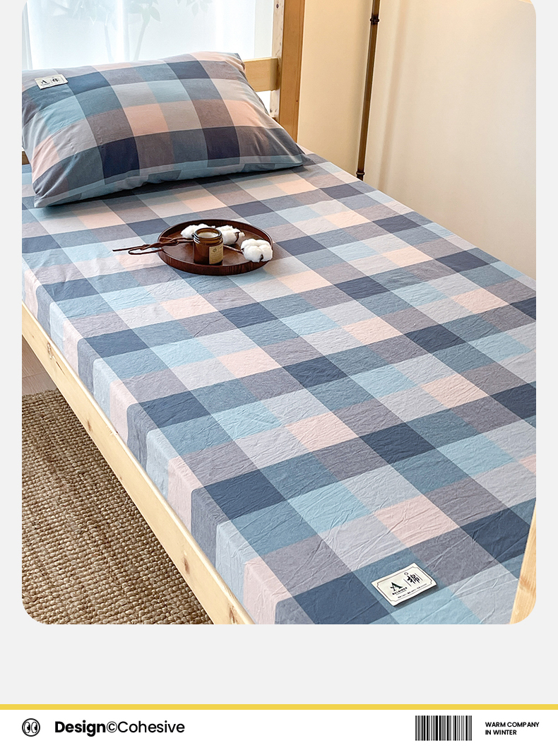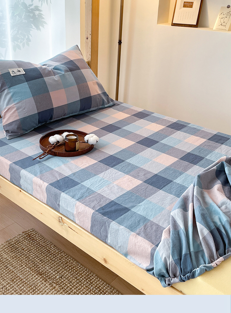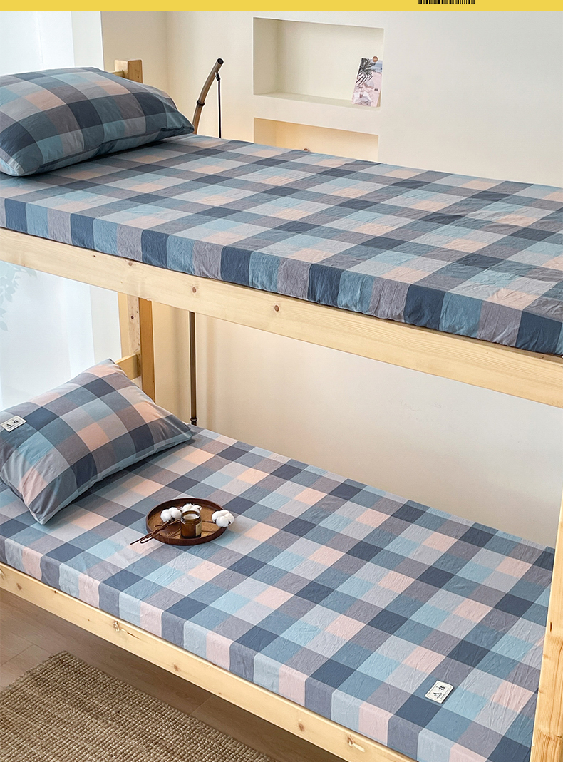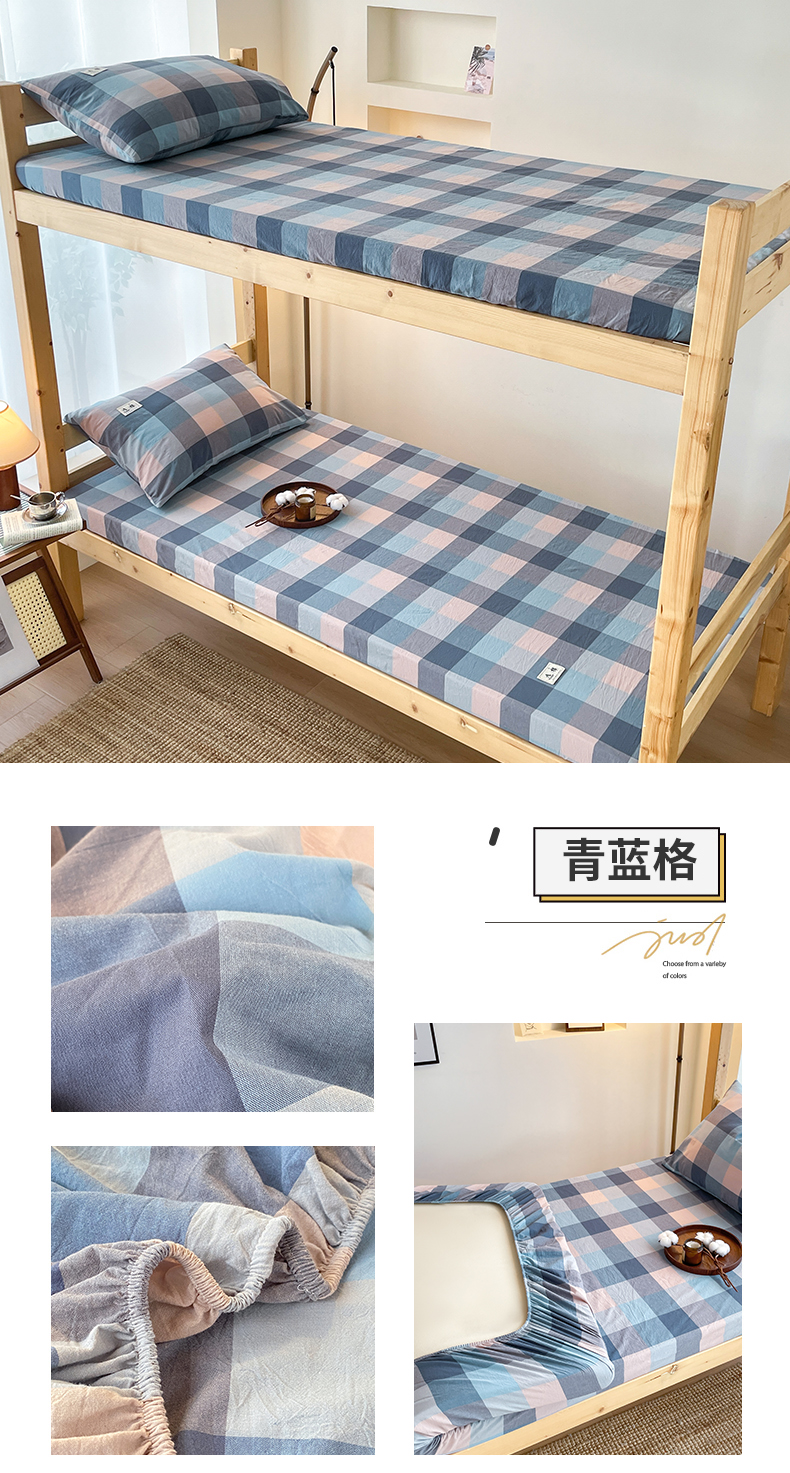 21度C 2024新款色织全棉学生床笠 青蓝格