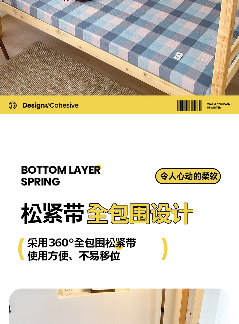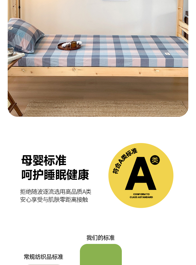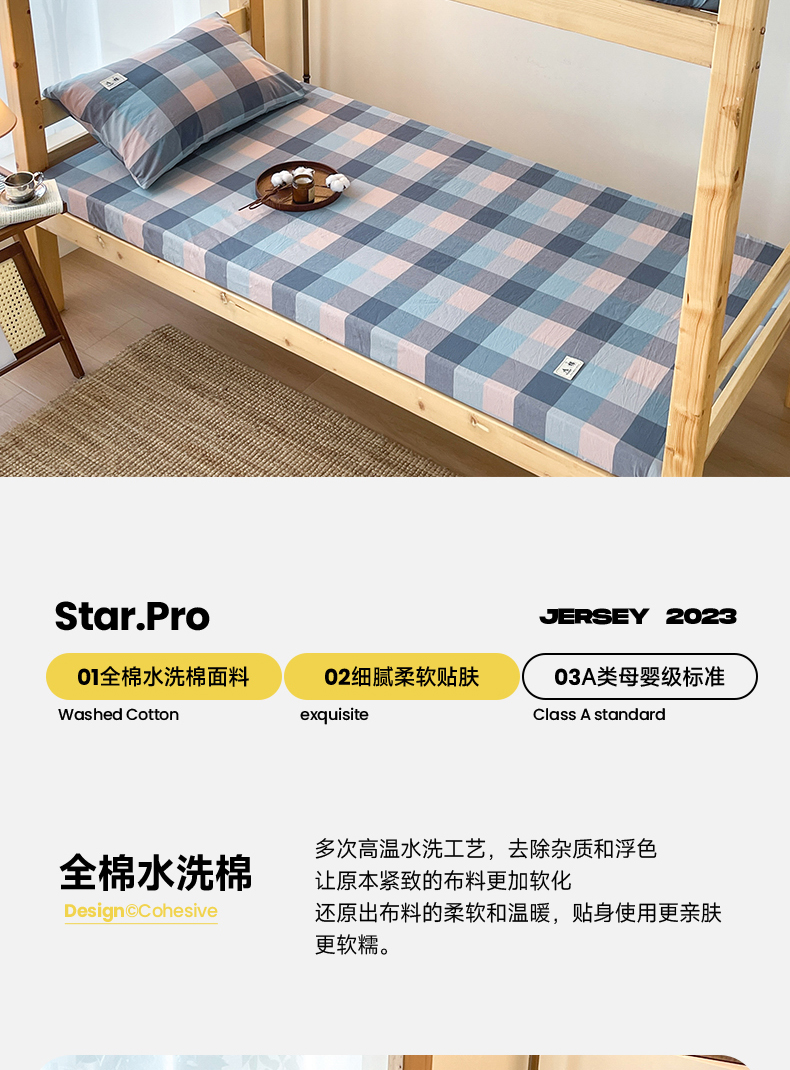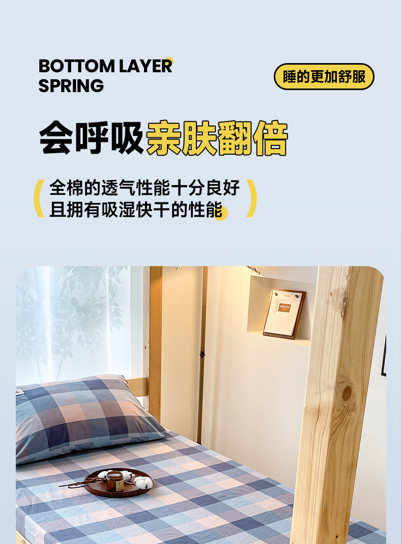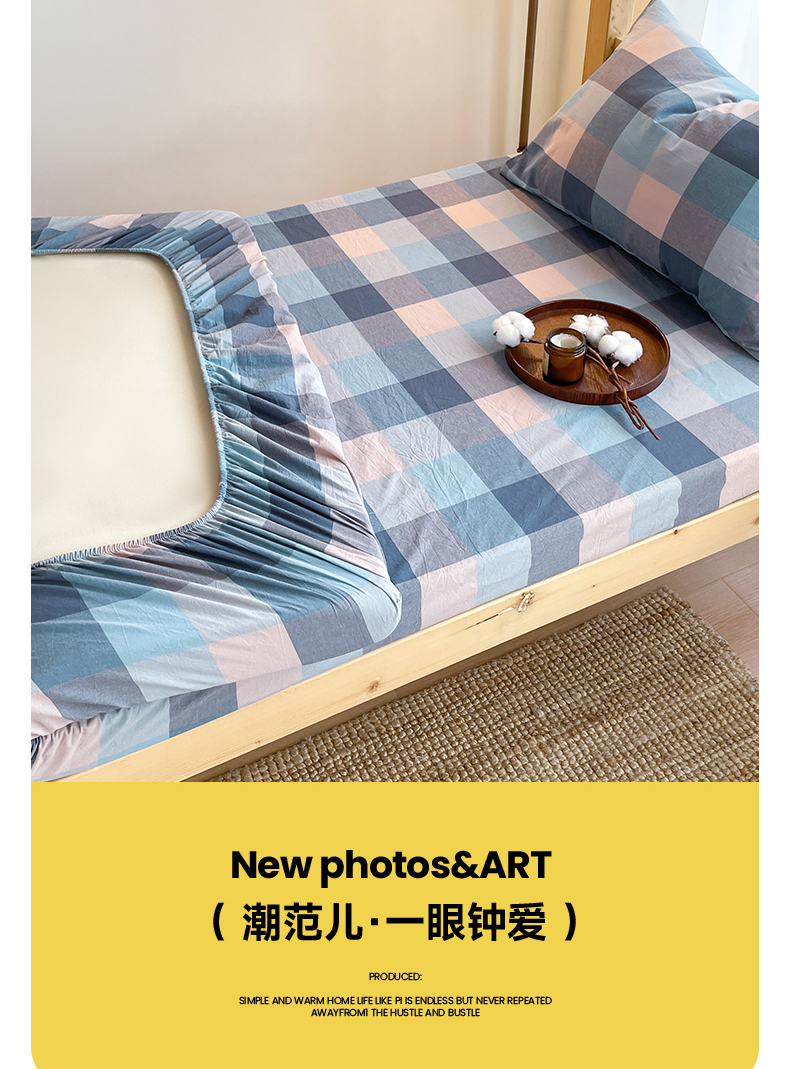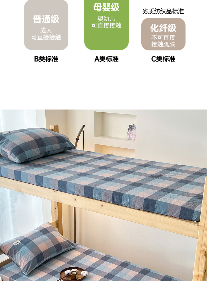 • 91家纺网 家纺一手货源 找家纺 21度C 2024新款色织全棉学生床笠 青蓝格
