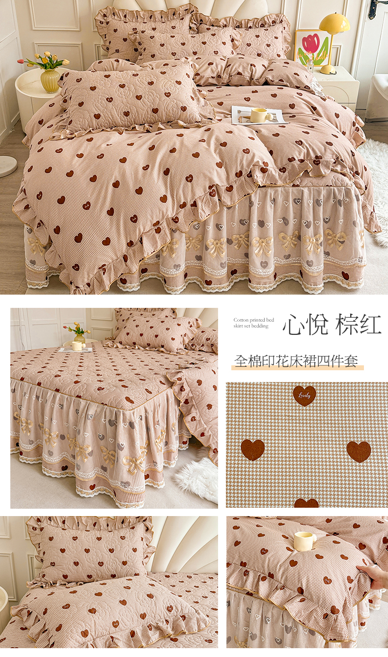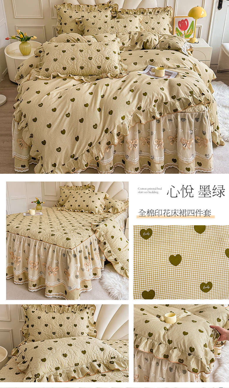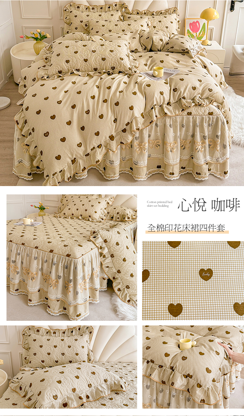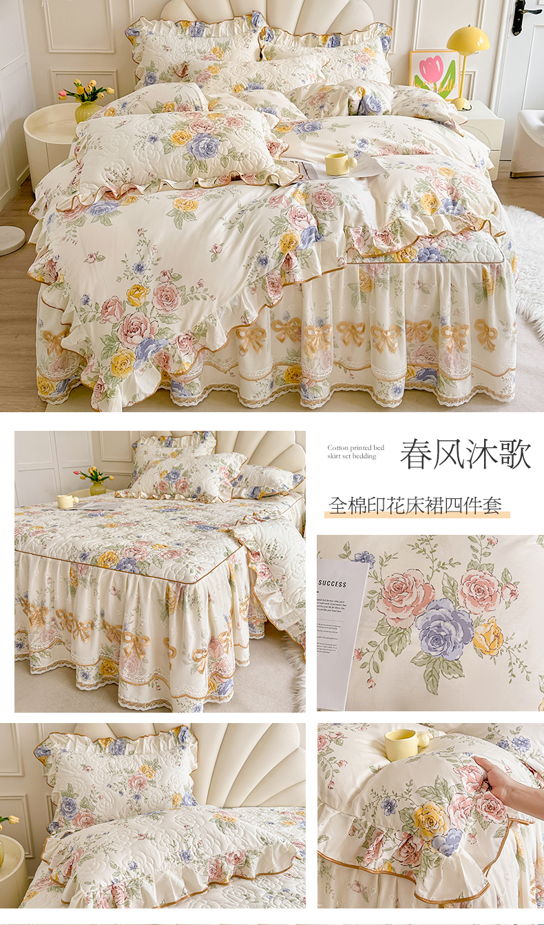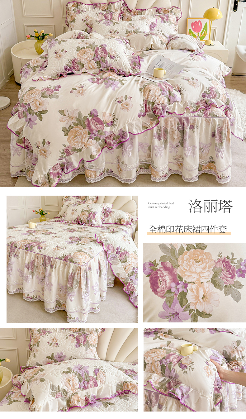 当前位置: 91家纺网 > 商品网购 > 床品套件 > 四件套 > 全棉普通四件套 > 宜凡家纺 2024新款全棉印花公主风夹棉床裙四件套 浅花悠悠