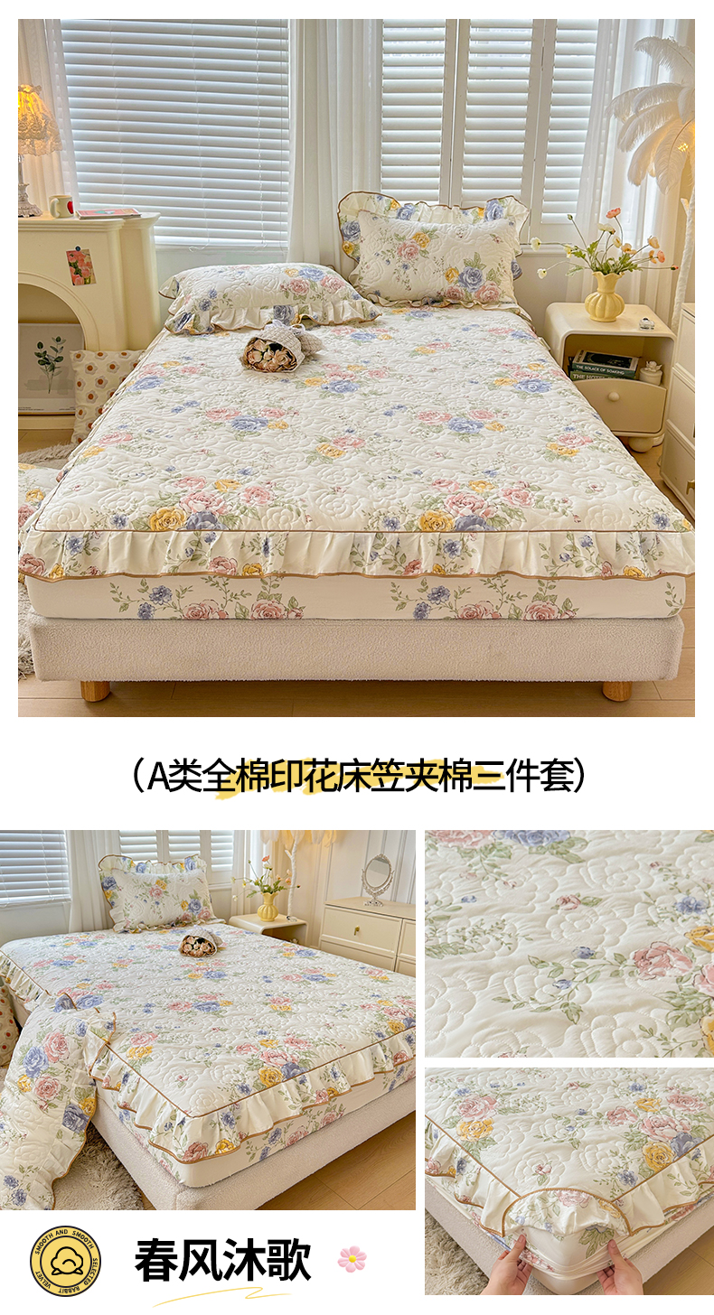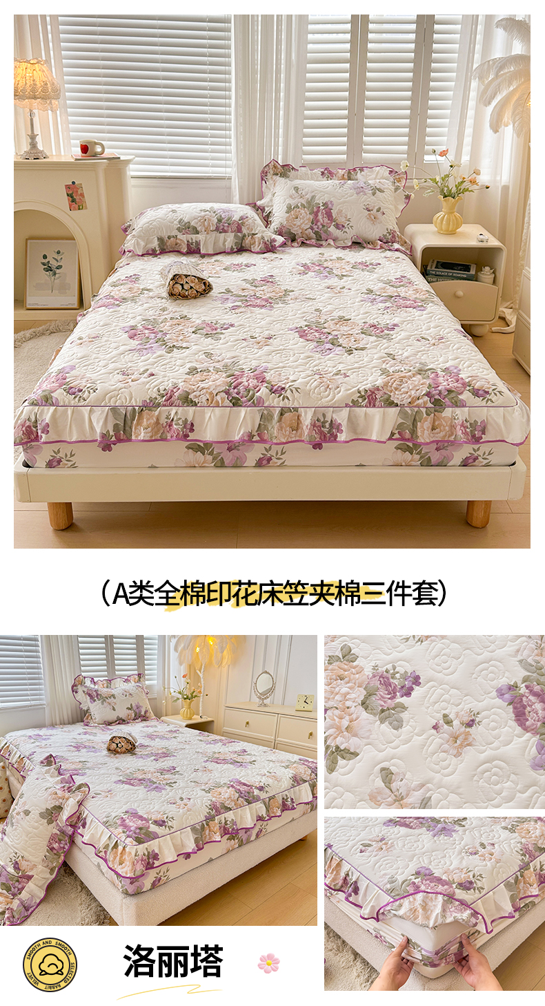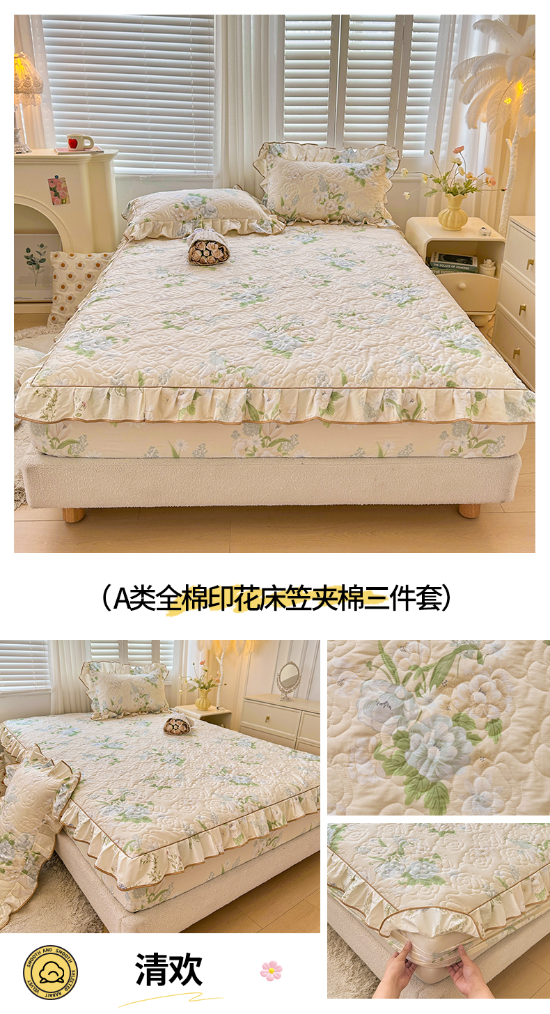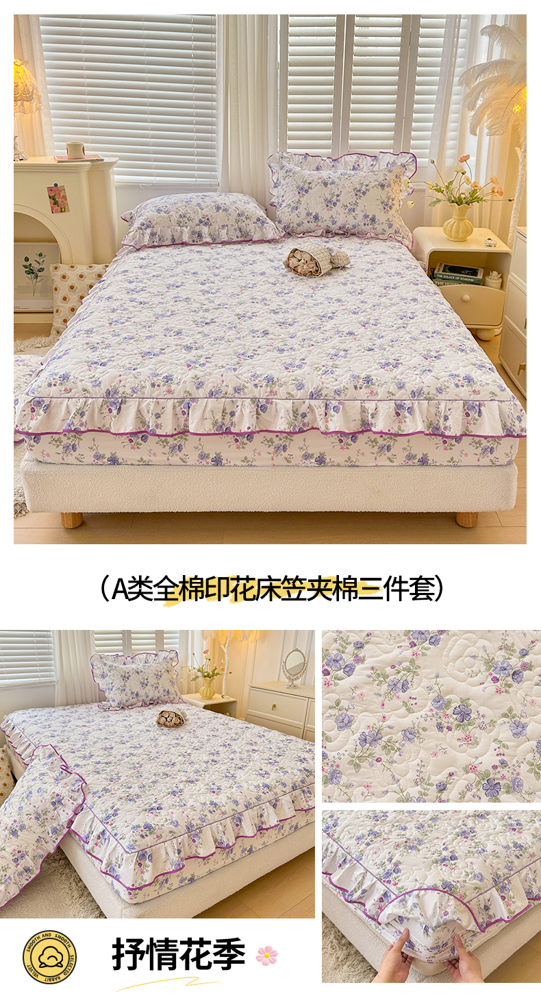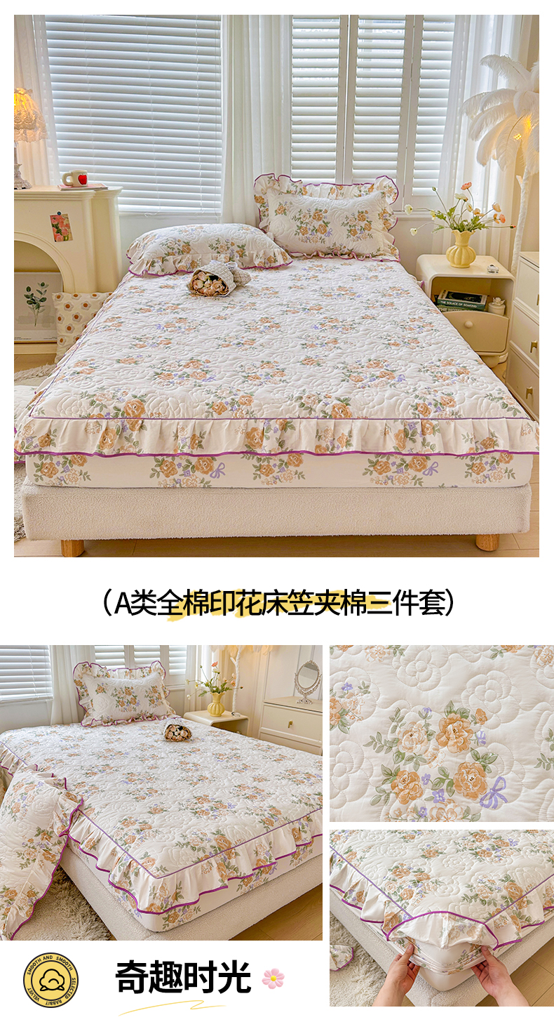 • 91家纺网 家纺一手货源 找家纺 宜凡家纺 2024新款全棉印花公主风夹棉床笠三件套 奇趣时光