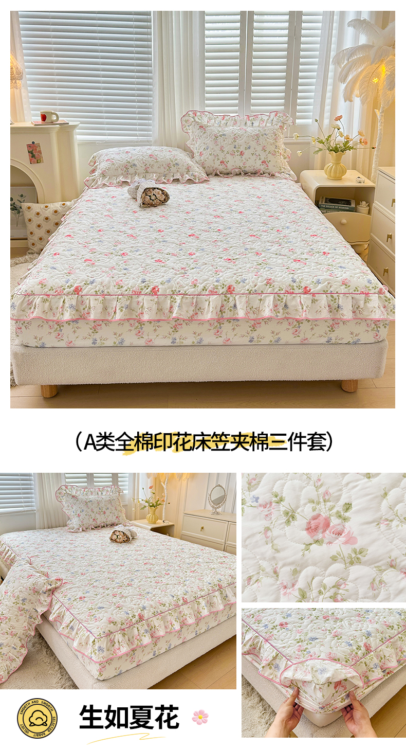 宜凡家纺 2024新款全棉印花公主风夹棉床笠三件套 奇趣时光
