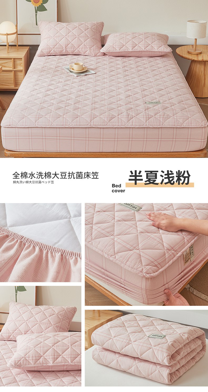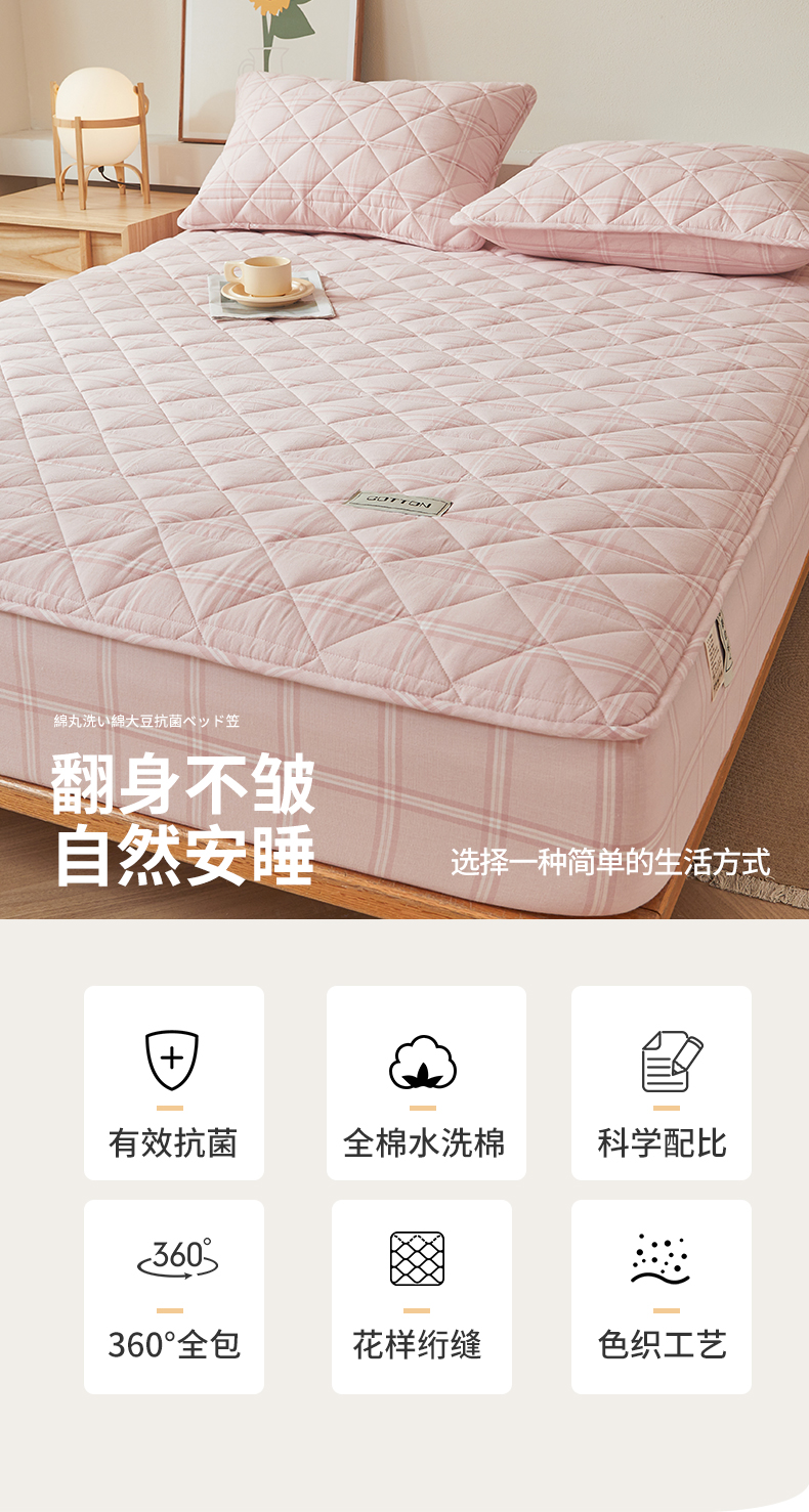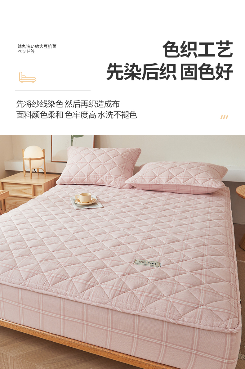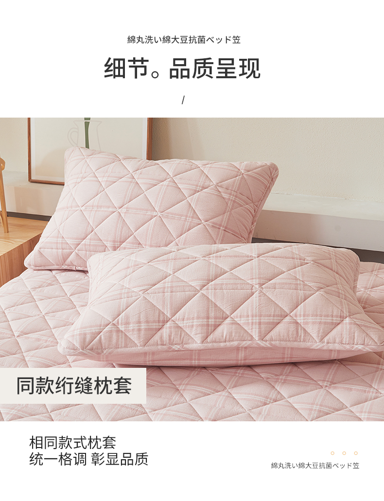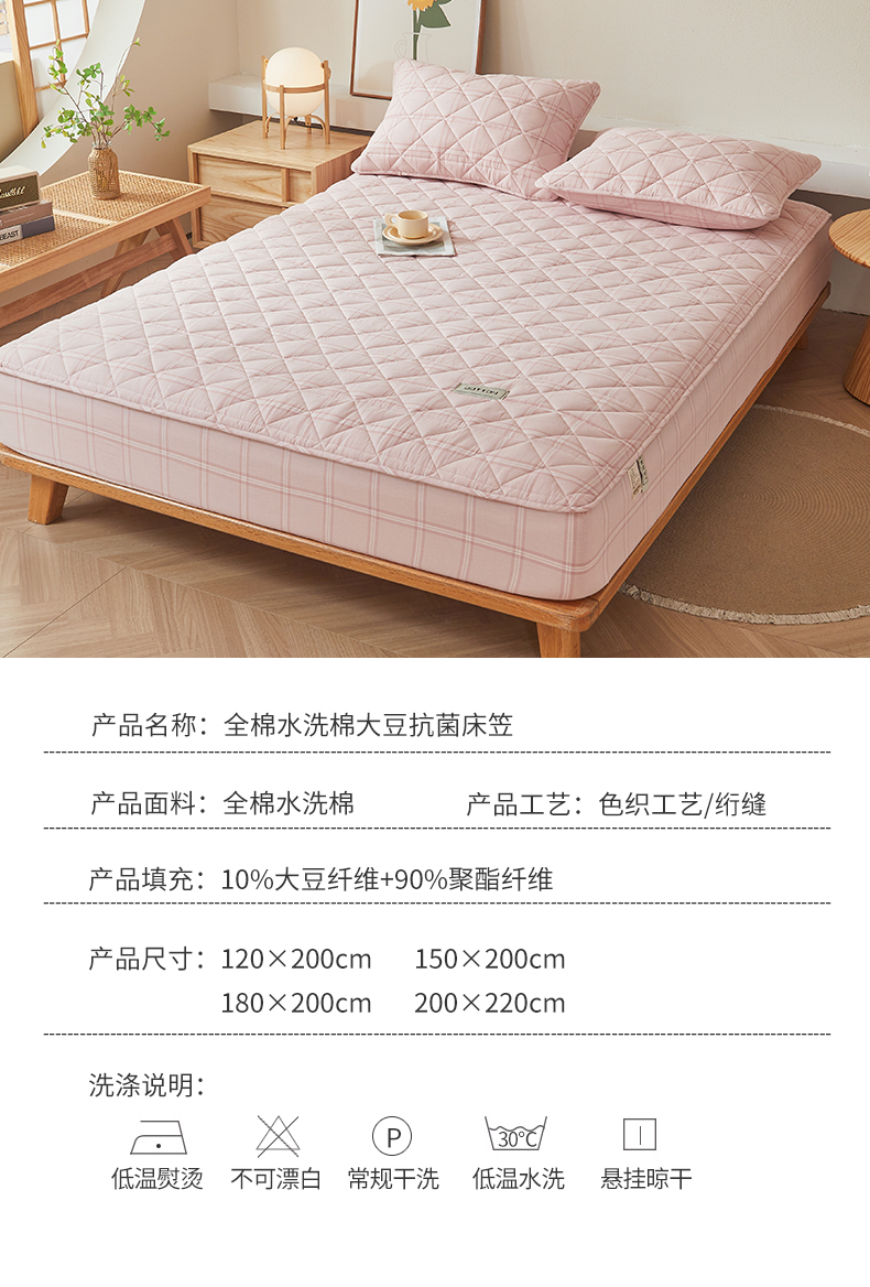 商品名称:3C 2024新款全棉水洗棉色织大豆夹棉抗菌床笠 半夏浅粉