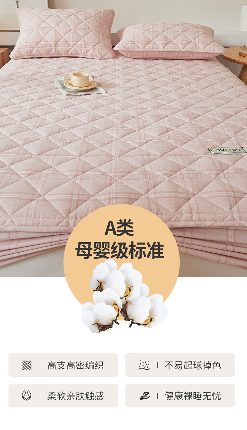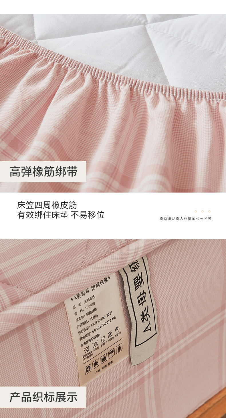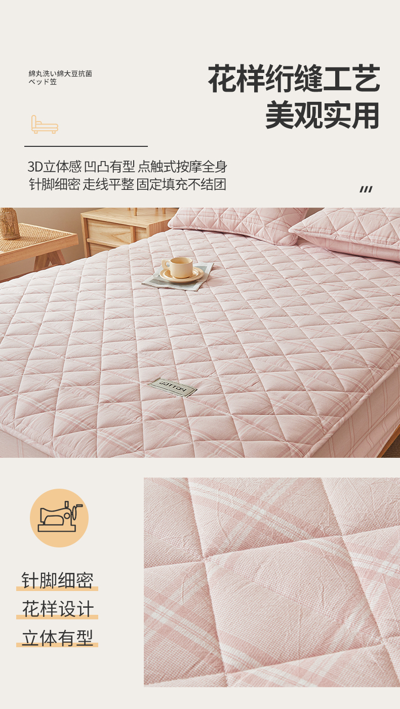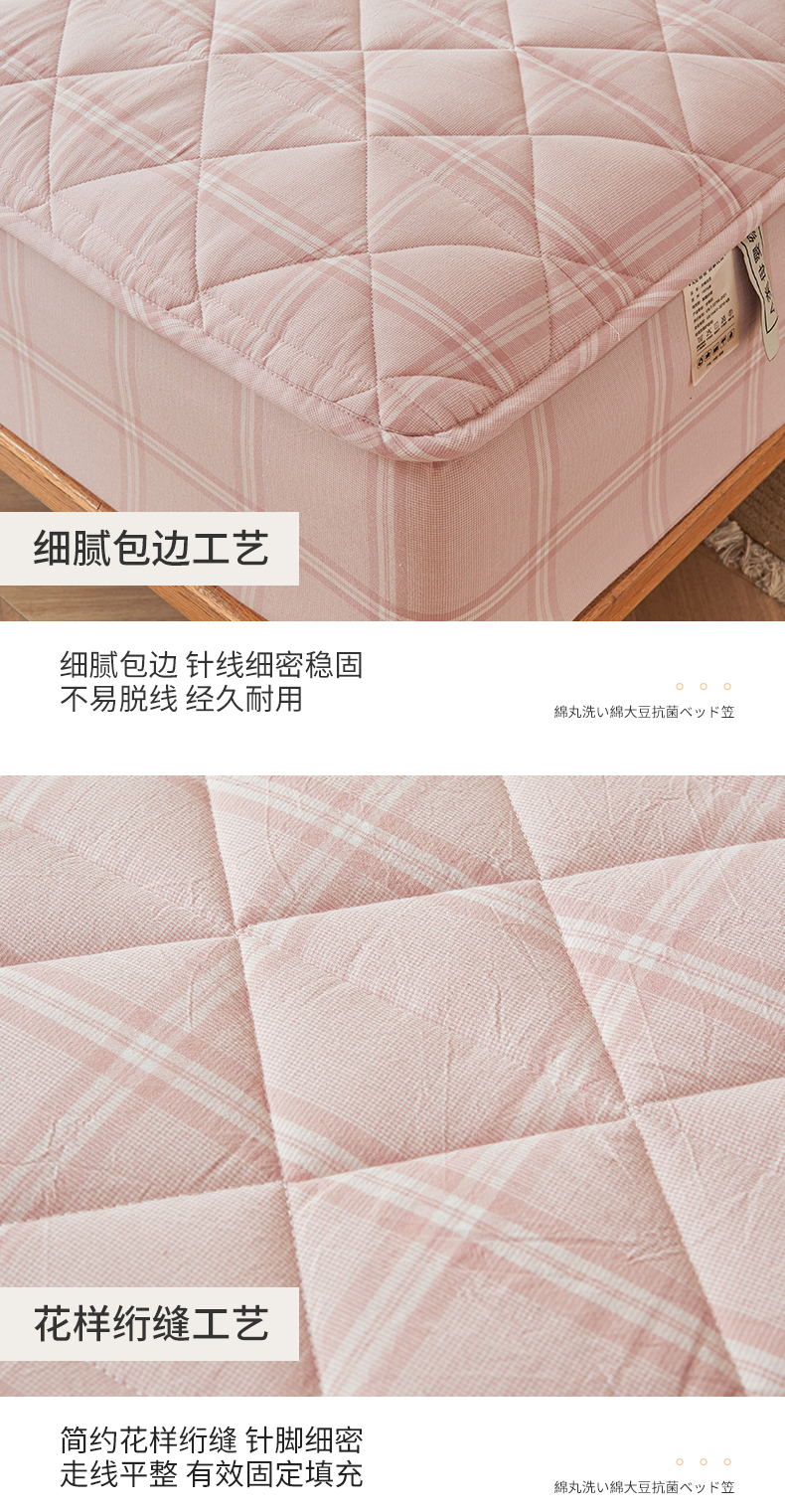 商品名称:3C 2024新款全棉水洗棉色织大豆夹棉抗菌床笠 半夏浅粉