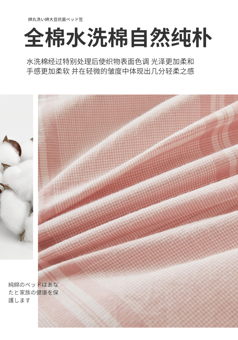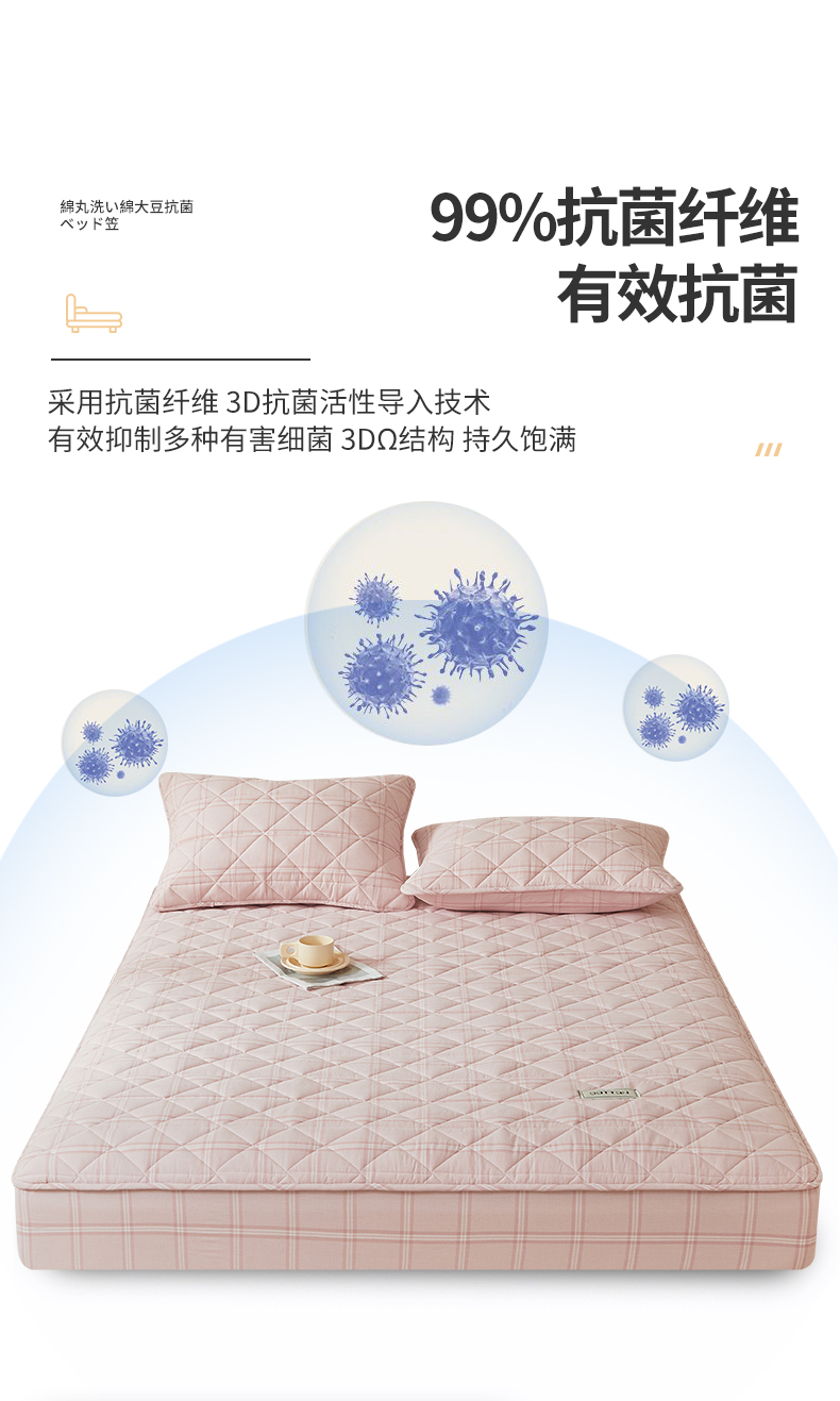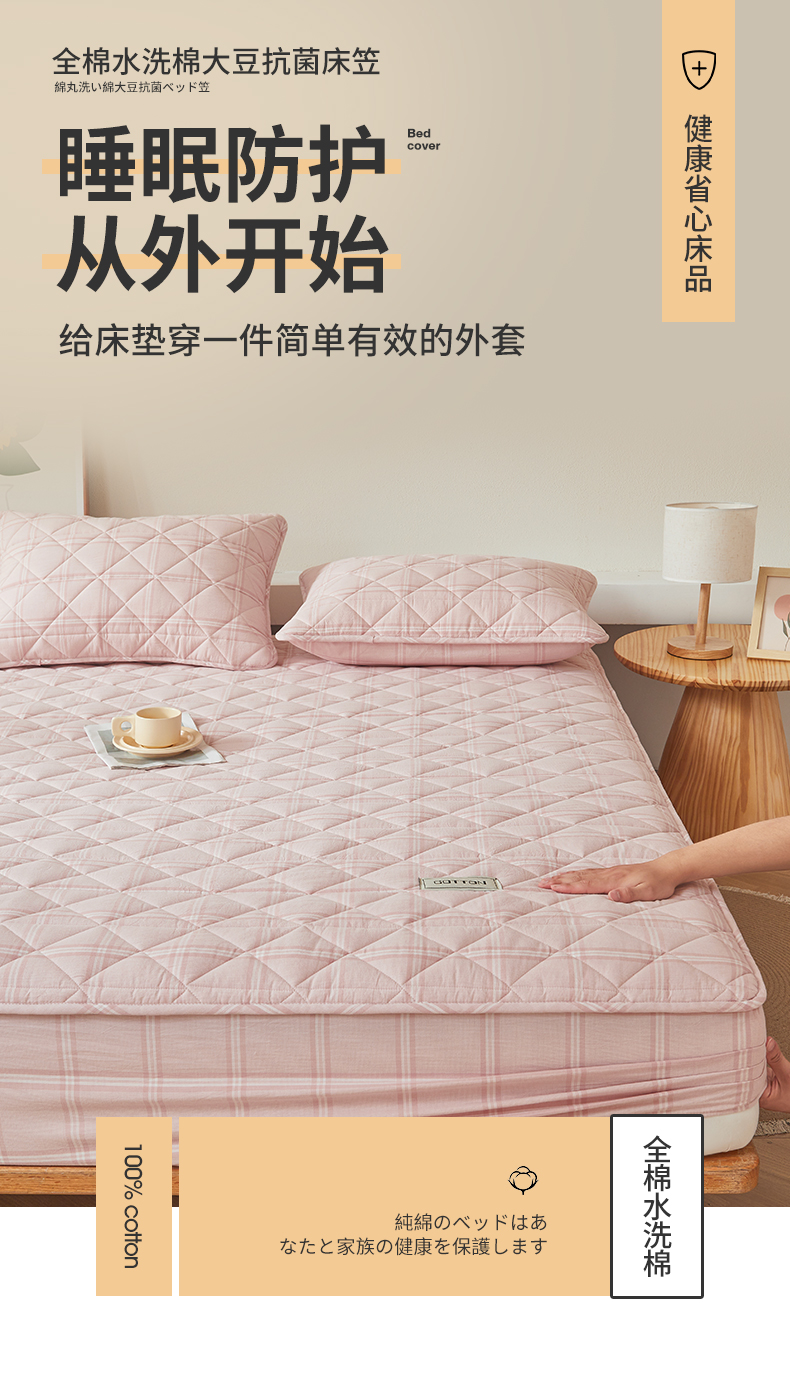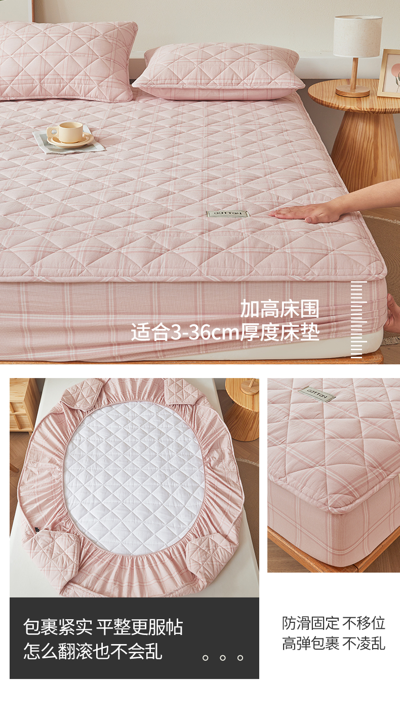商品名称:3C 2024新款全棉水洗棉色织大豆夹棉抗菌床笠 半夏浅粉