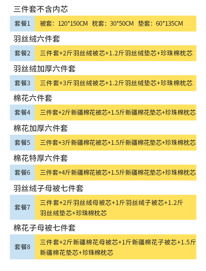 (不含芯三件套)被套+床垫套+枕套 | ¥75.00 |