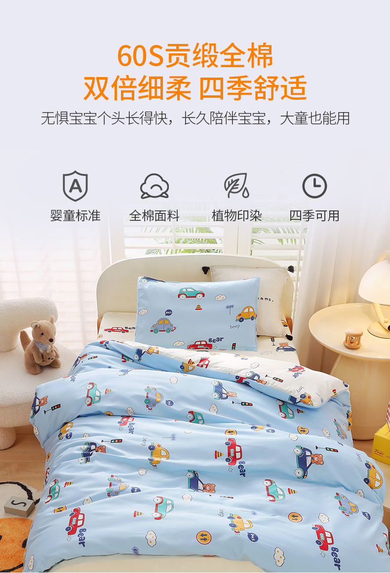 当前位置: 91家纺网 > 商品网购 > 床品套件 > 多件套 > 多件套 > 吉咪兔2024年新品A类60支幼儿园被子三件套宝宝被套纯棉儿童六件套滴滴车-蓝