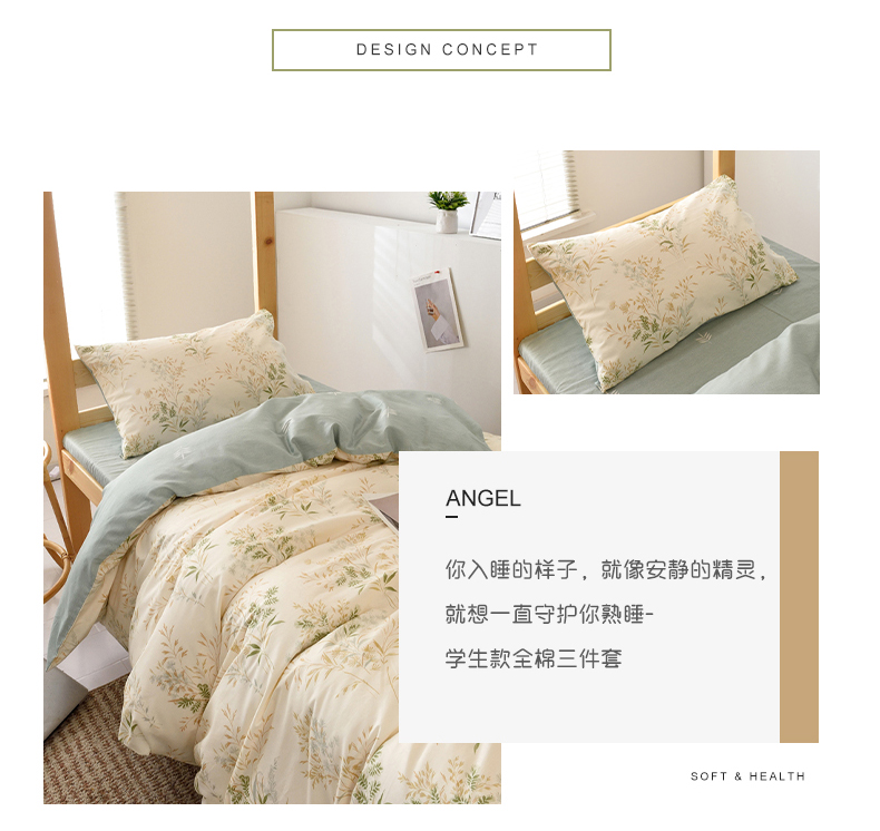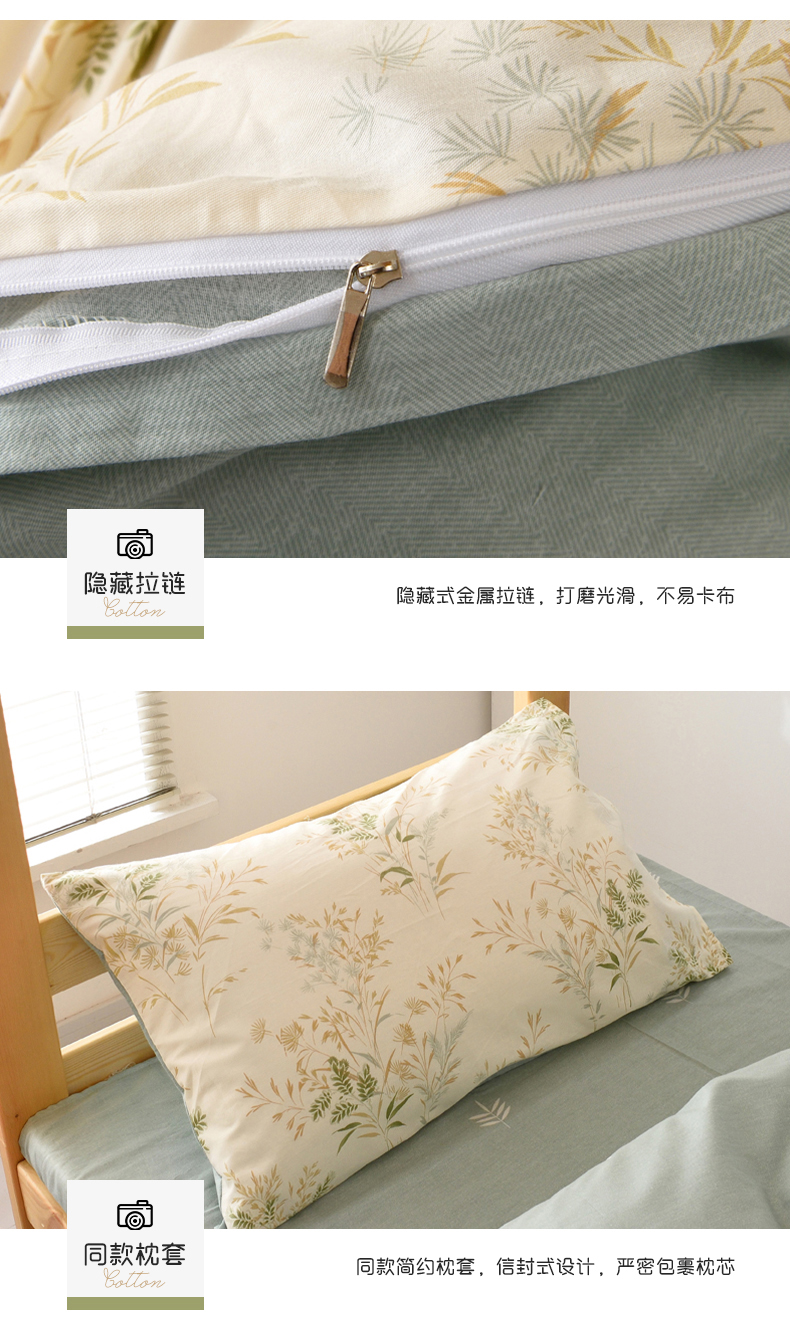 当前位置: 91家纺网 > 商品网购 > 床品套件 > 四件套 > 全棉普通四件套 > 麦伦家居 2024新款40支13372全棉斜纹学生上下铺床品系列 仙草